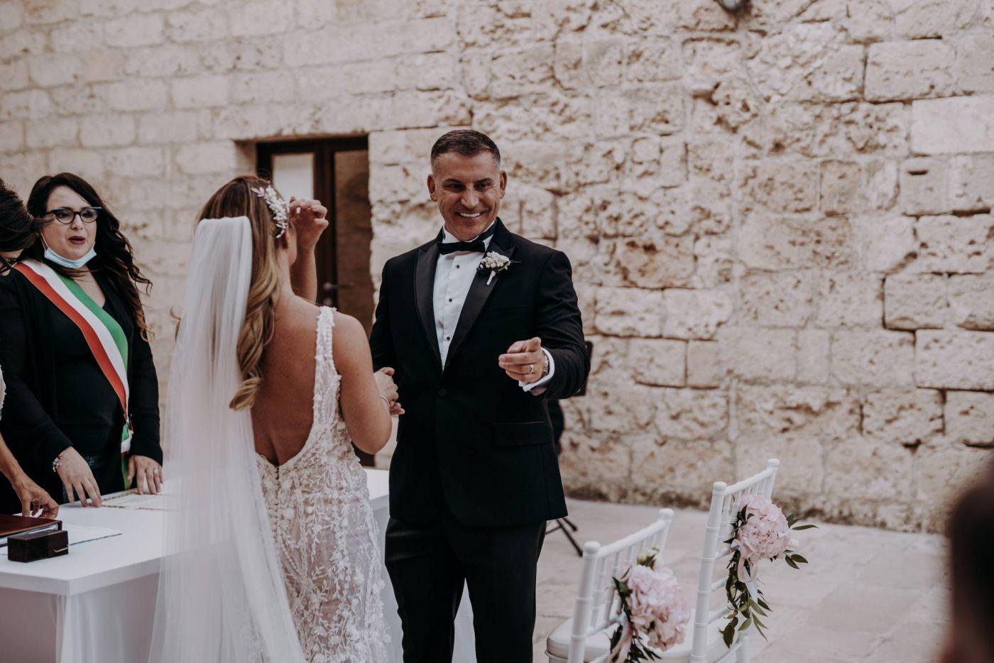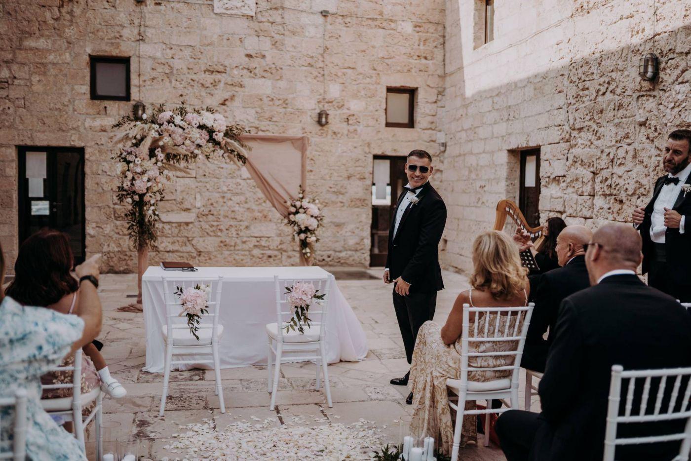 So I was expecting a spectacular place but I must say that as soon as I arrived at the location, I was literally speechless. But after all, you know, celebrating your wedding in Puglia always has its charm. The outdoor ceremony at the Castle of Monopoli was very exciting and fun, thanks also to the spontaneity of their very nice child.