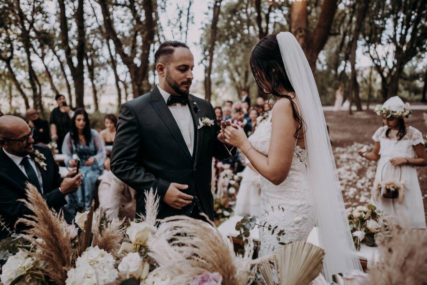 Tenuta Tresca, is one of the most popular locations for spouses, not just locals. One of those places where every detail is never left to chance and which, if necessary, is a suggestive background for couples who choose a civil ceremony rather than a religious one, as for Yeliz and Simon who pronounced the fateful yes in front of friends and relatives, excited, on a very hot day at the end of September.