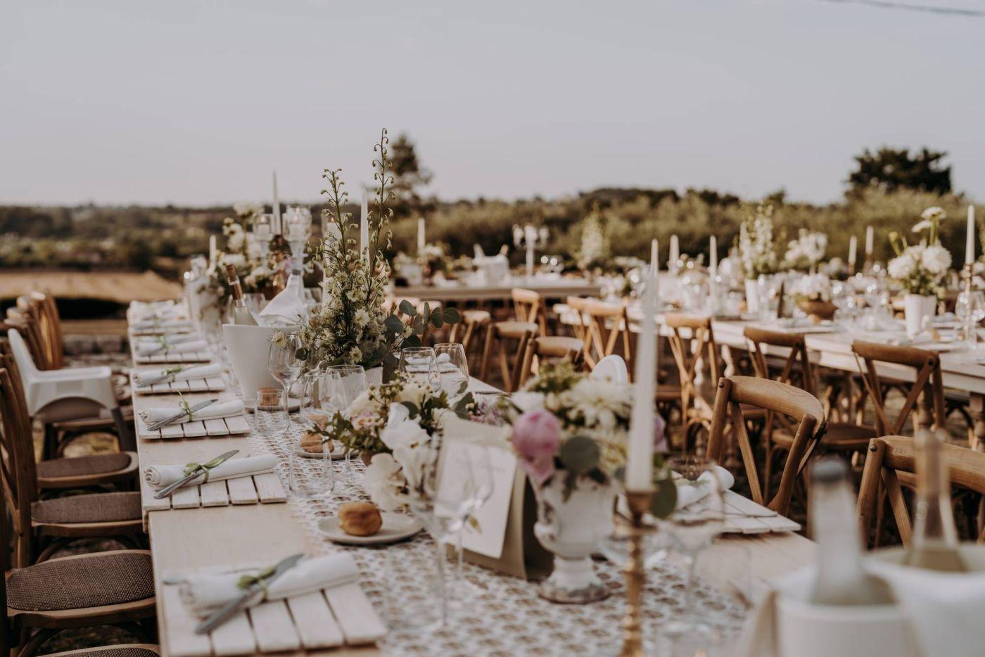 A civil ceremony with attention to every detail, in the setting of a dream location like Masseria Luco, among typically Mediterranean smells and colours, immersed in the quiet of the Apulian countryside, and surrounded by the Apulian trulli.
