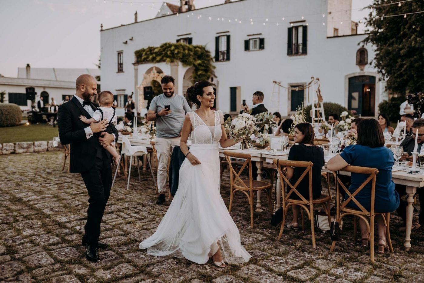 And speaking of emotions, we will tell you in detail the wedding of Vincenzo and Elide, celebrated with a civil ceremony at Masseria Luco in Martina Franca, a suggestive 19th-century residence in the heart of the Itria Valley, a few steps from Locorotondo, Alberobello , Noci, is the ideal location for a wedding on a farm.