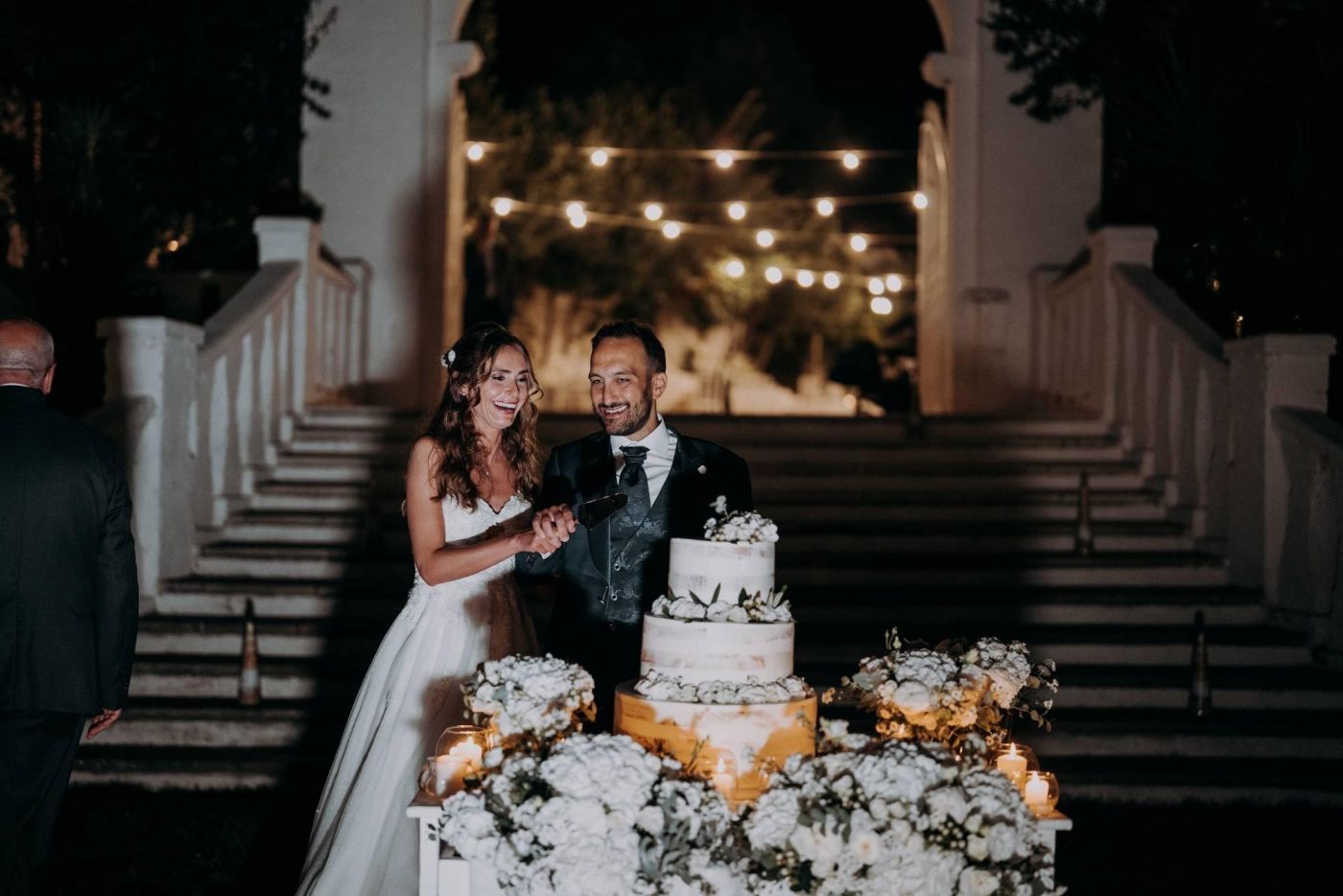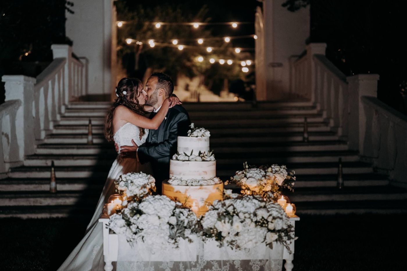 After the dance, the guests toasted to the happiness of the newly weds, with glasses of sparkling wine and happy smiles. The evening was enlivened by a delicious menu, prepared with care and with fresh and genuine ingredients, typical of the Apulian cuisine. The cutting of the cake was not missing, a moment of great emotion and joy.