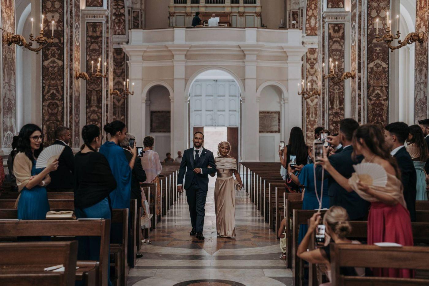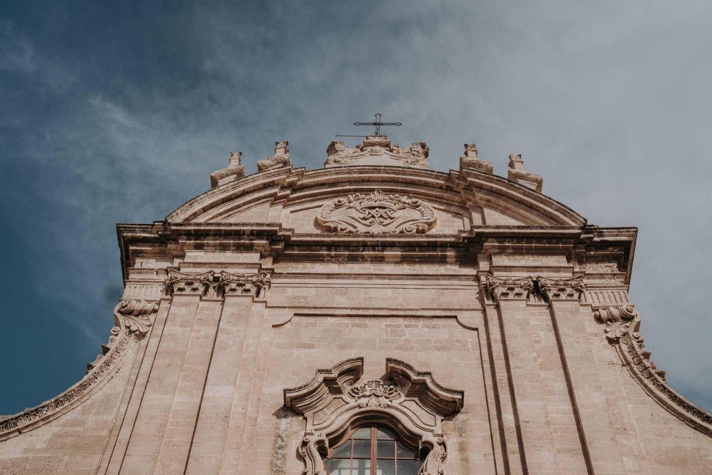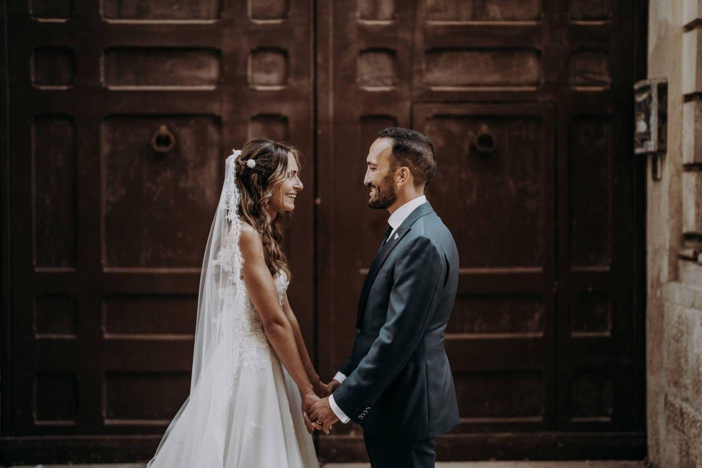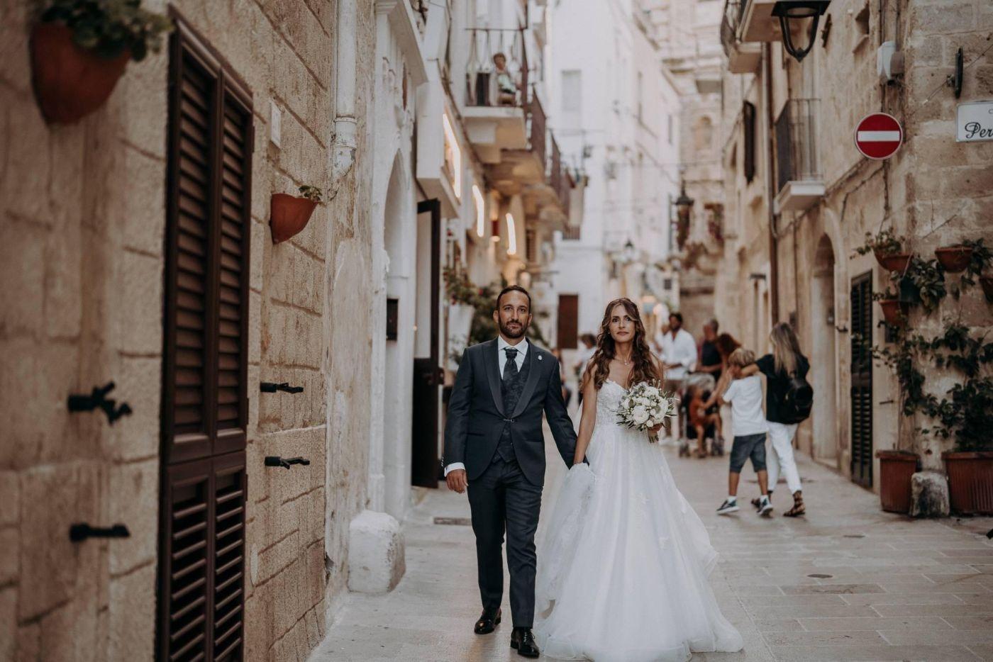 The wedding was one of the most important days in Martina and Massimo's life. After months of preparations, everything was finally ready for the celebration. Monopoli cathedral was a magnificent place, with its high vaults, frescoes and stained glass windows. Martina, dressed in white, was splendid: her lace dress fell softly on her hips, her hair was gathered in an elegant bun and her face illuminated by a radiant smile. Massimo, beside her, was excited but happy. He had been looking forward to this day and now that he had finally arrived, he knew he had made the right choice.