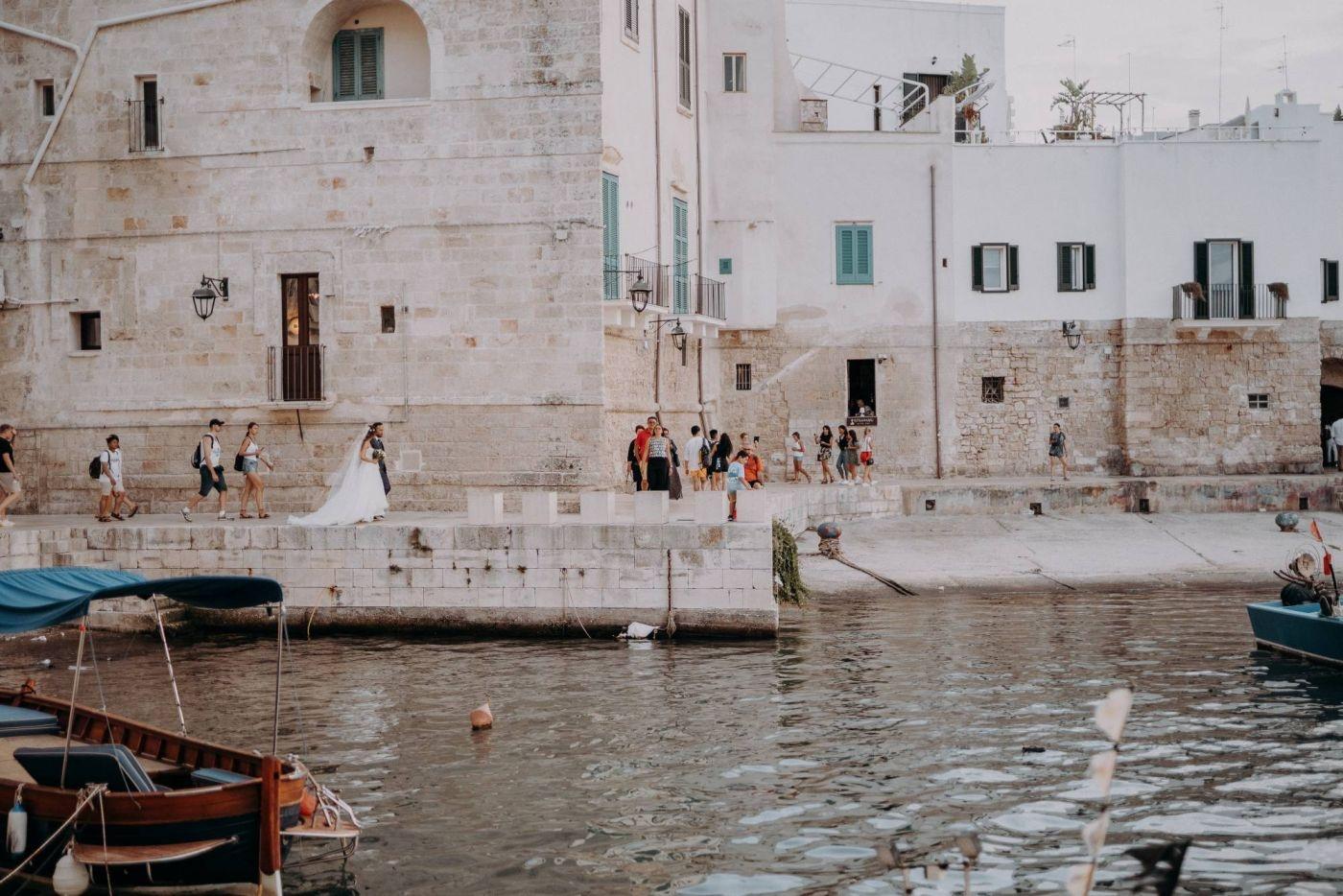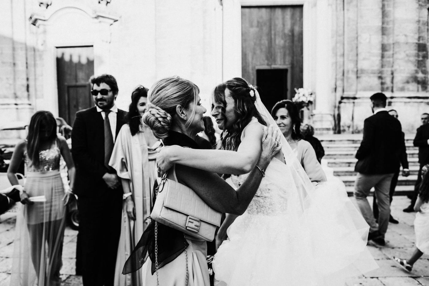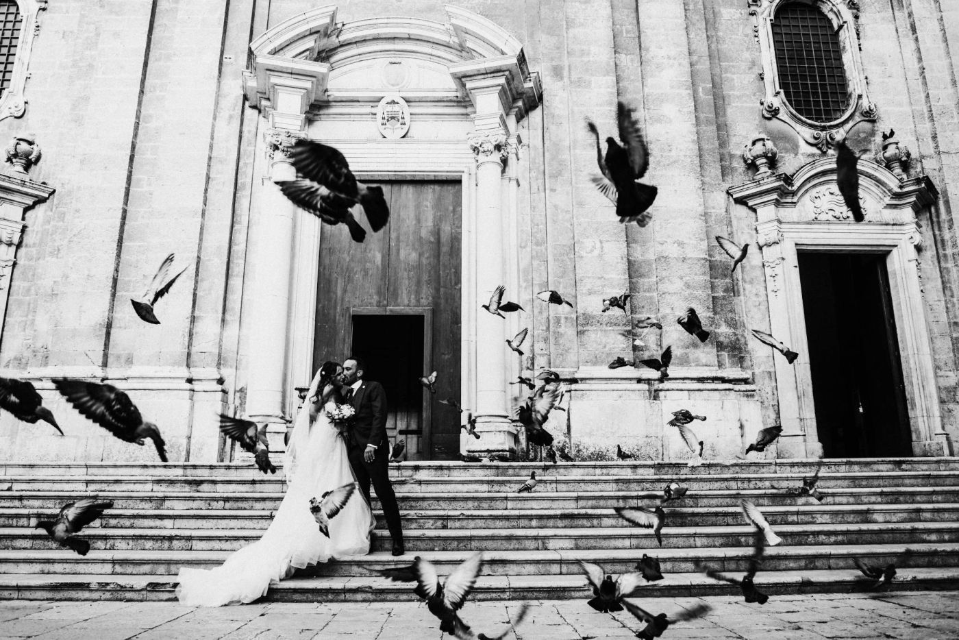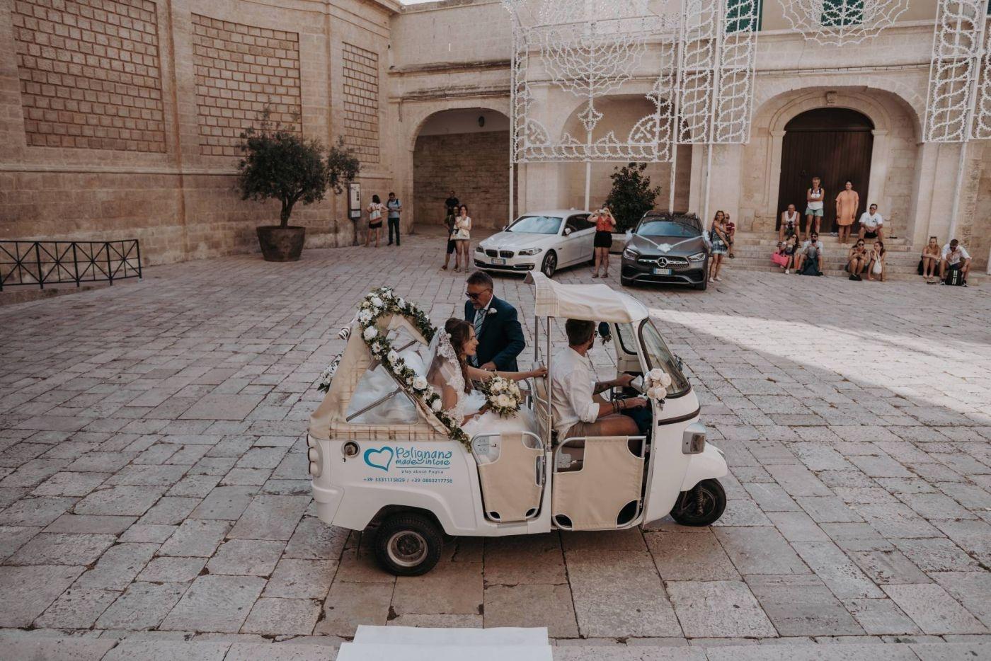 The wedding was one of the most important days in Martina and Massimo's life. After months of preparations, everything was finally ready for the celebration. Monopoli cathedral was a magnificent place, with its high vaults, frescoes and stained glass windows. Martina, dressed in white, was splendid: her lace dress fell softly on her hips, her hair was gathered in an elegant bun and her face illuminated by a radiant smile. Massimo, beside her, was excited but happy. He had been looking forward to this day and now that he had finally arrived, he knew he had made the right choice.