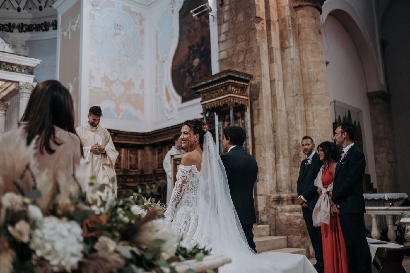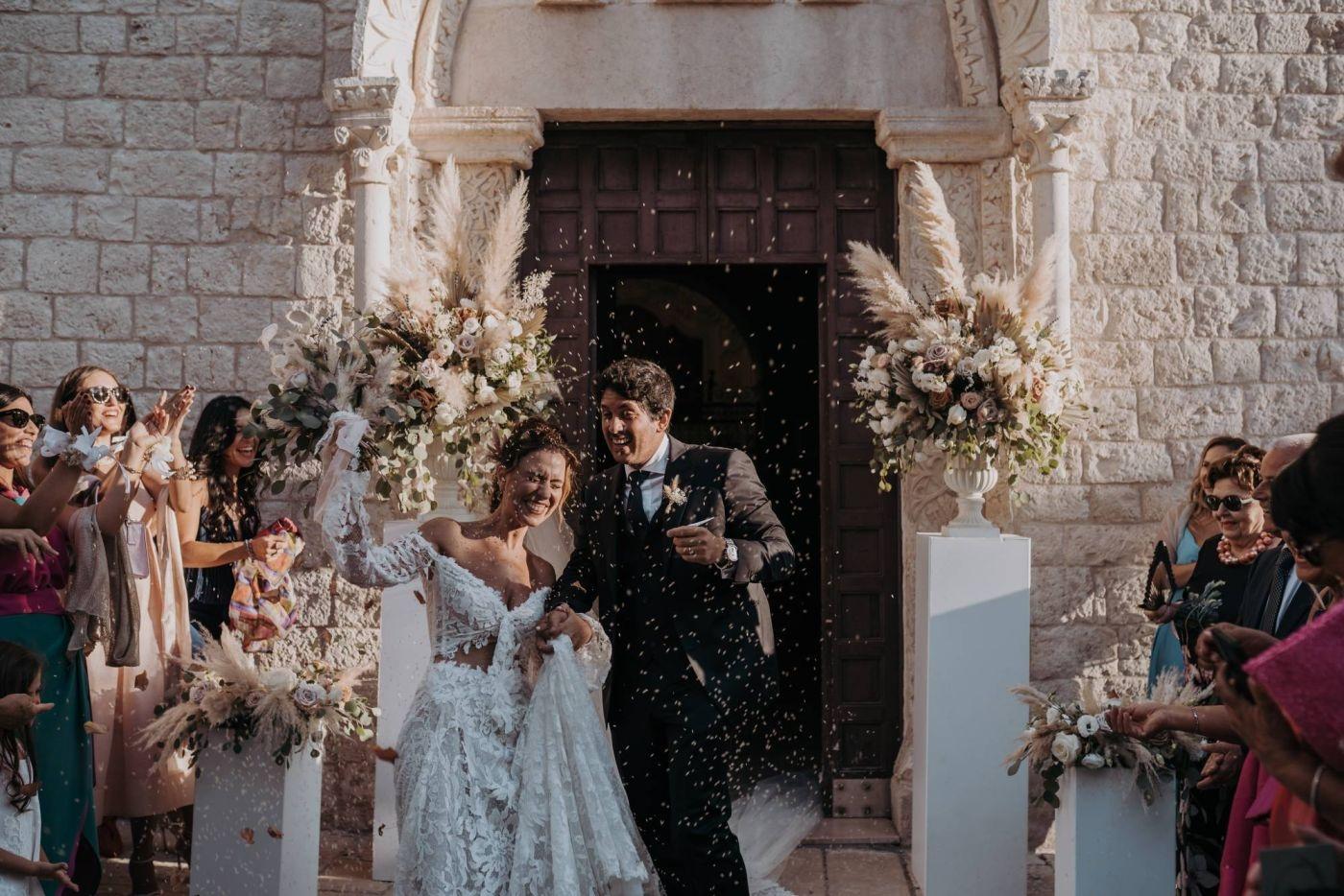 The celebration of the marriage of Claudio and Vanessa in the Mother Parish Church of Santa Maria della Colonna and San Nicola di Bari represented for them the crowning of a dream. Both had been fascinated by the beauty and history of Puglia during their first holiday together, and had decided to get married in that very place which had represented the beginning of their love story.