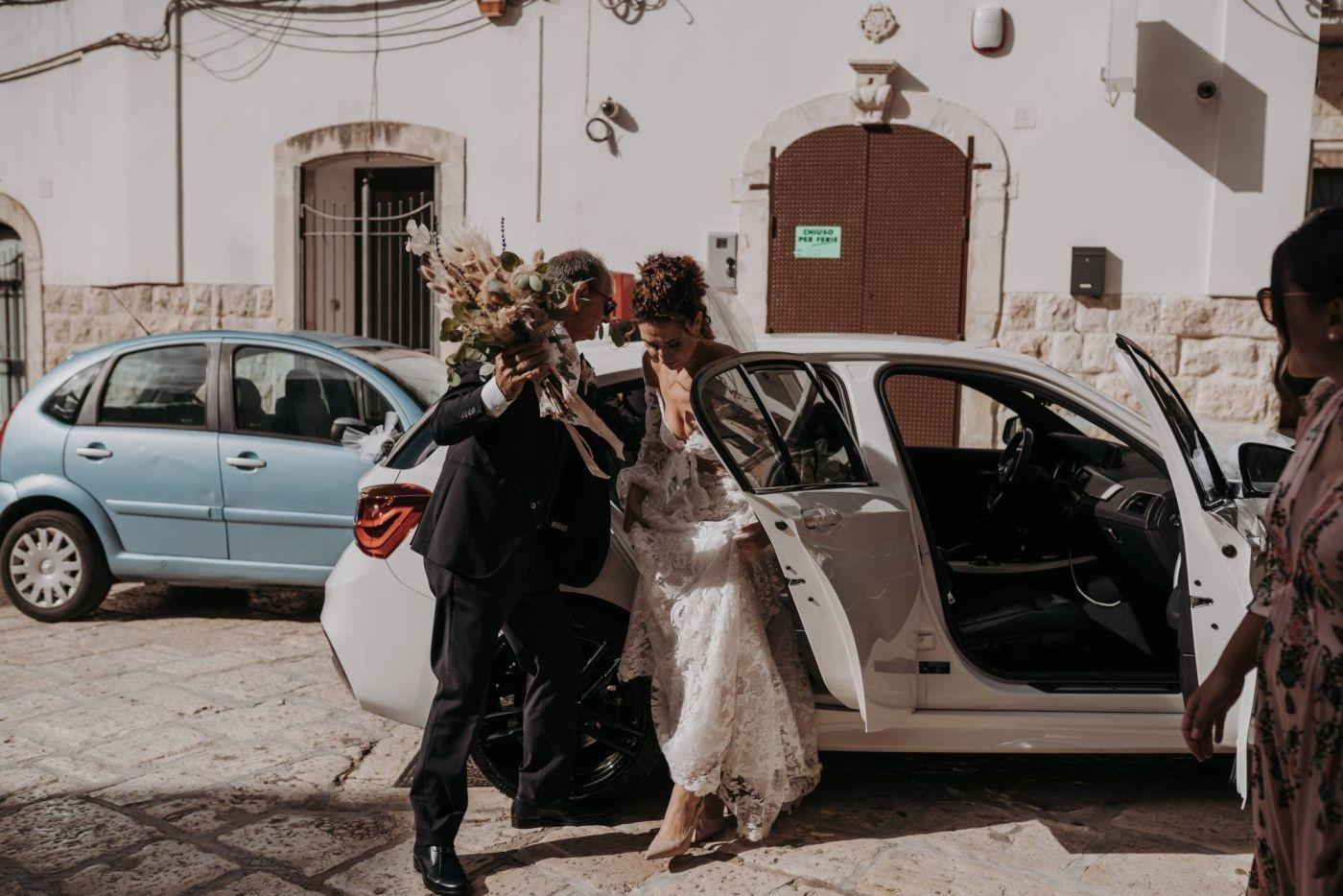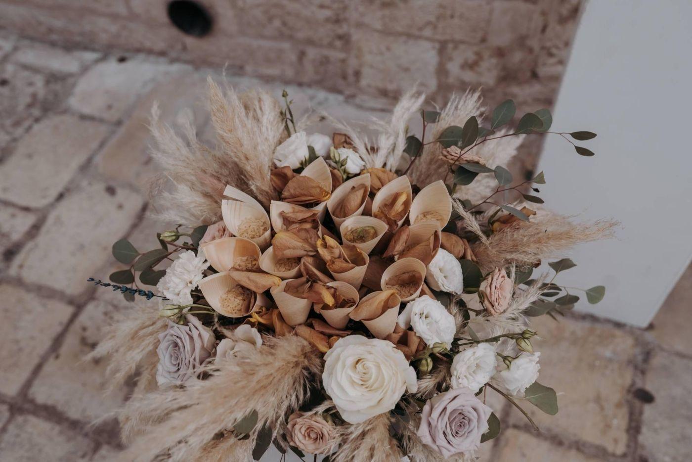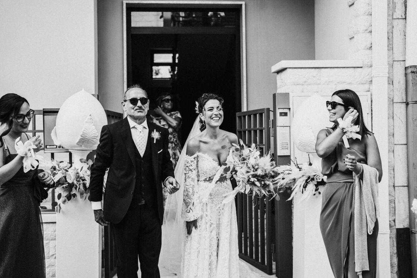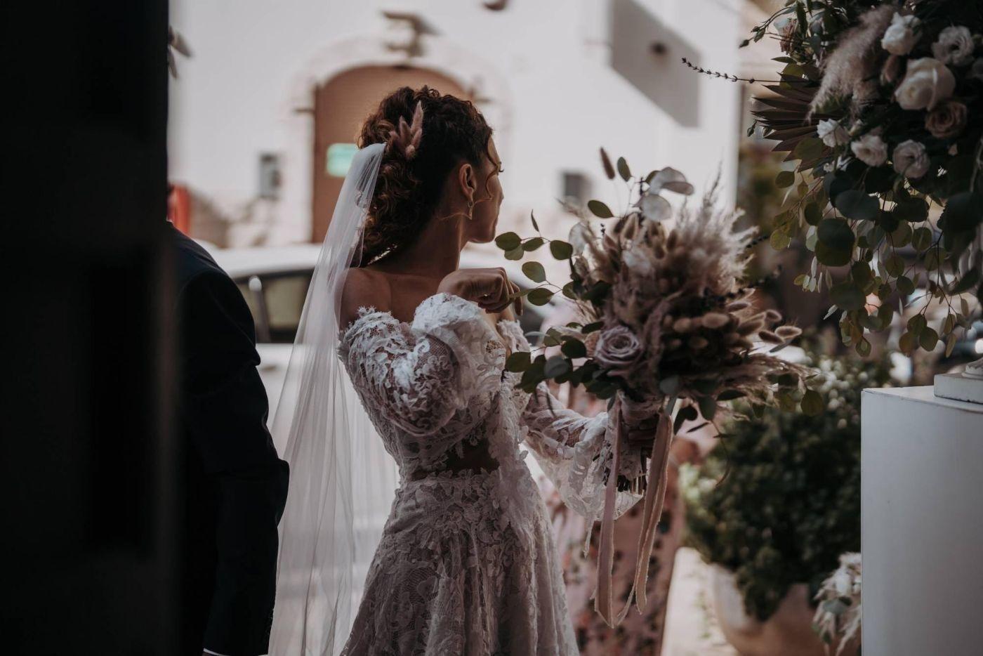 Vanessa had carefully chosen her dress, opting for a shabby chic style that made her look like a princess out of a fairy tale. Her dress, combined with a bouquet of white flowers and a light veil, had given the bride a romantic and timeless elegance, in perfect balance with the atmosphere of Puglia.