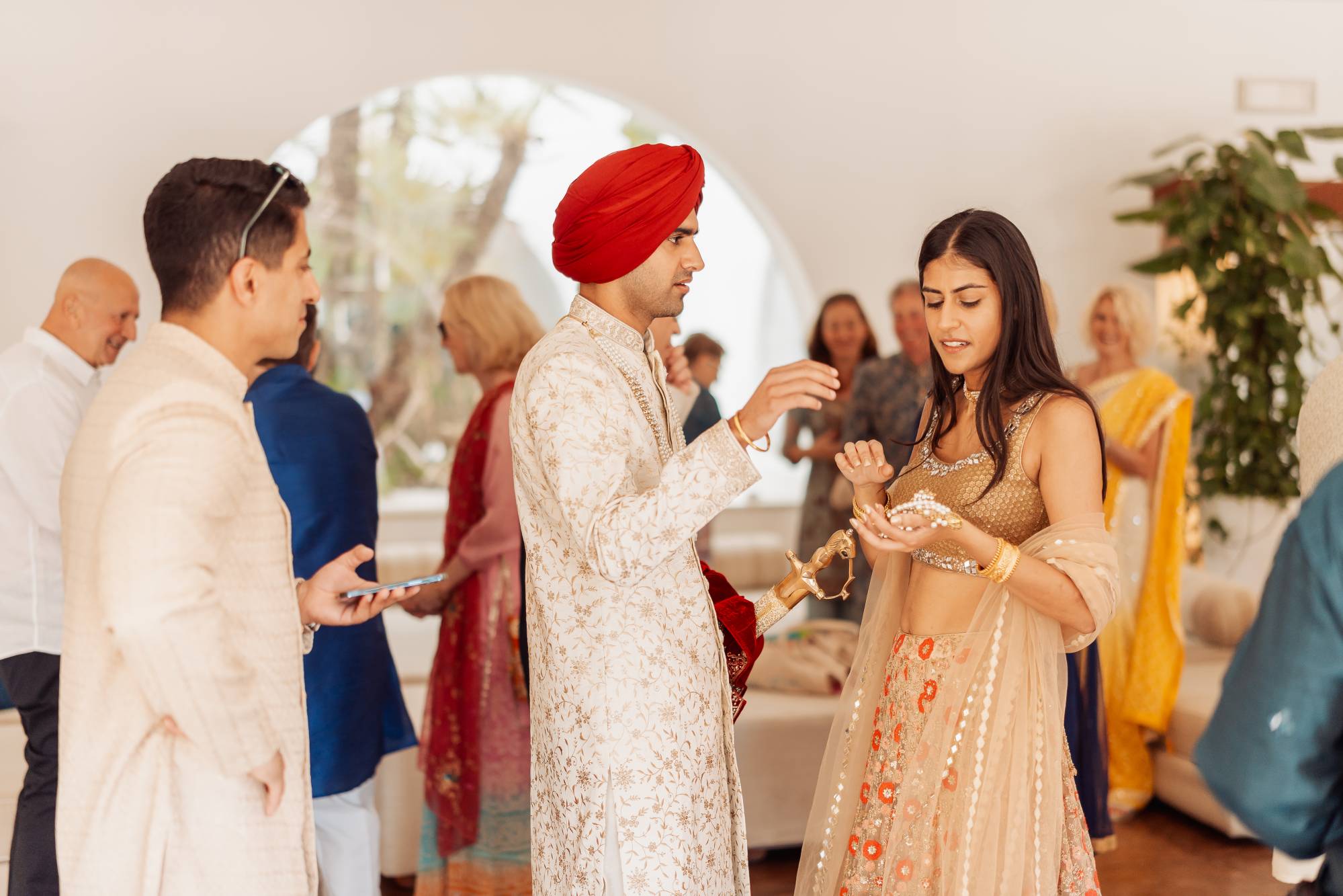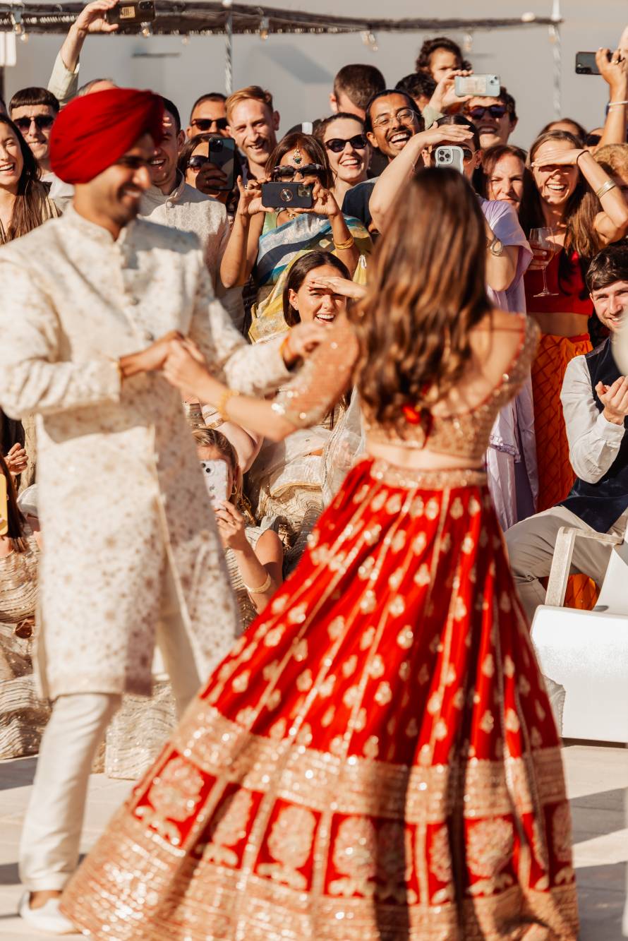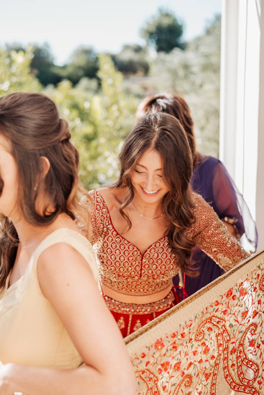 The night was a perfect blend of laughter, dance, and heartfelt connections as guests celebrated both Sameer and Lucy’s love and the richness of their shared cultural heritage. Tables were adorned with vibrant flowers, and traditional Indian music intertwined with Italian melodies, creating a beautiful soundtrack to the night. From the colorful mehendi ceremony to the fragrant, authentic Indian dishes, every detail was crafted to honor their traditions while embracing the beauty of Italy.