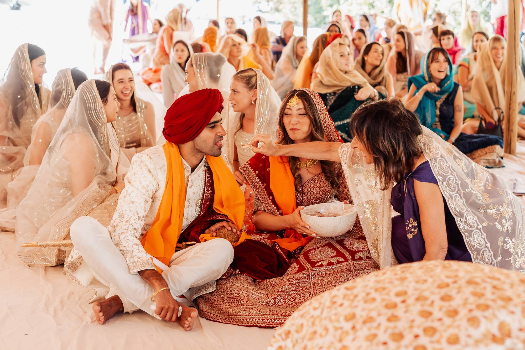 For their wedding, Sameer and Lucy embraced the colors and traditions of India in a symbolic Indian ceremony that reflected the richness of Sameer’s heritage.