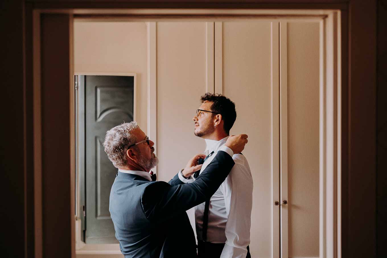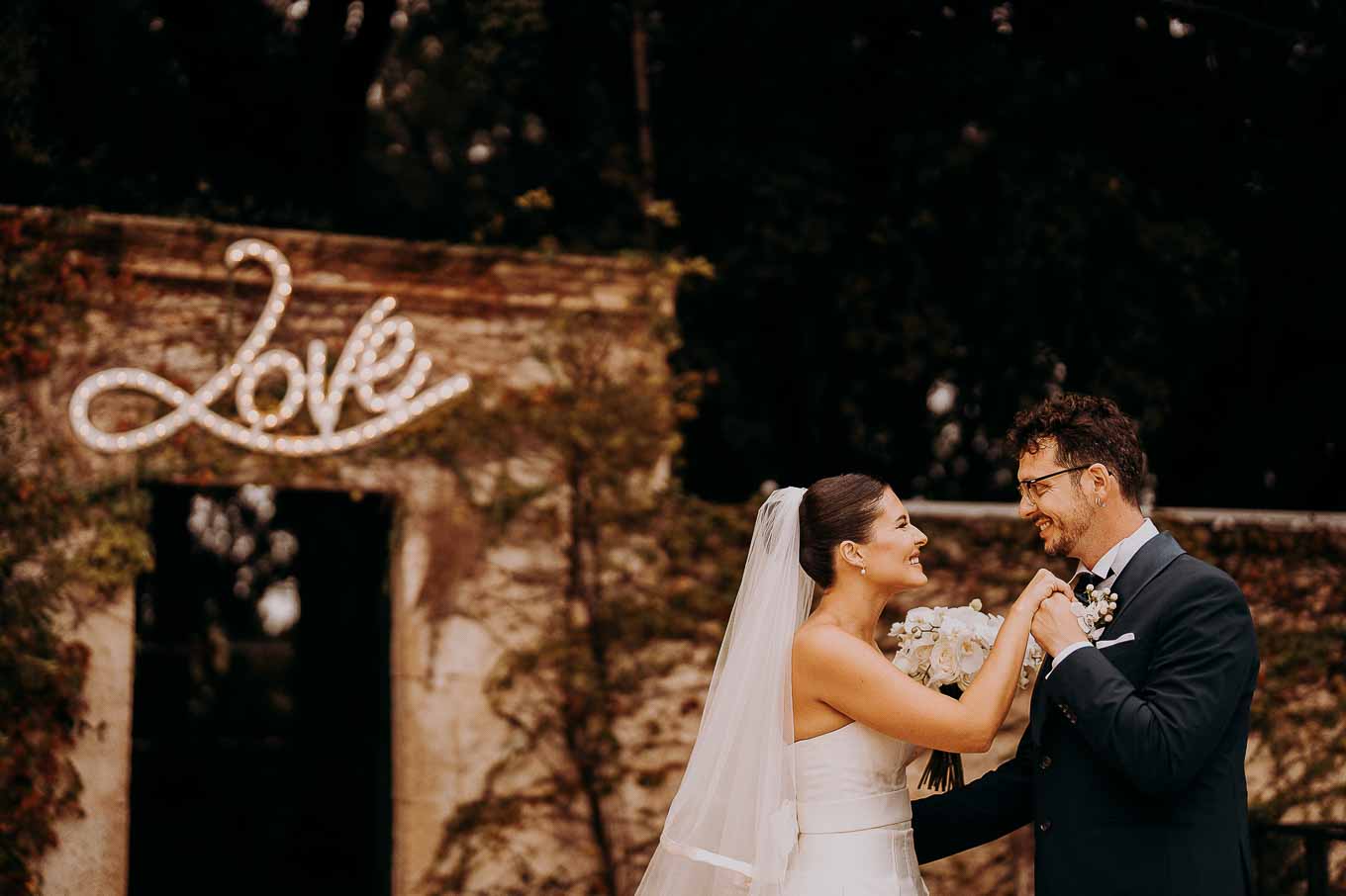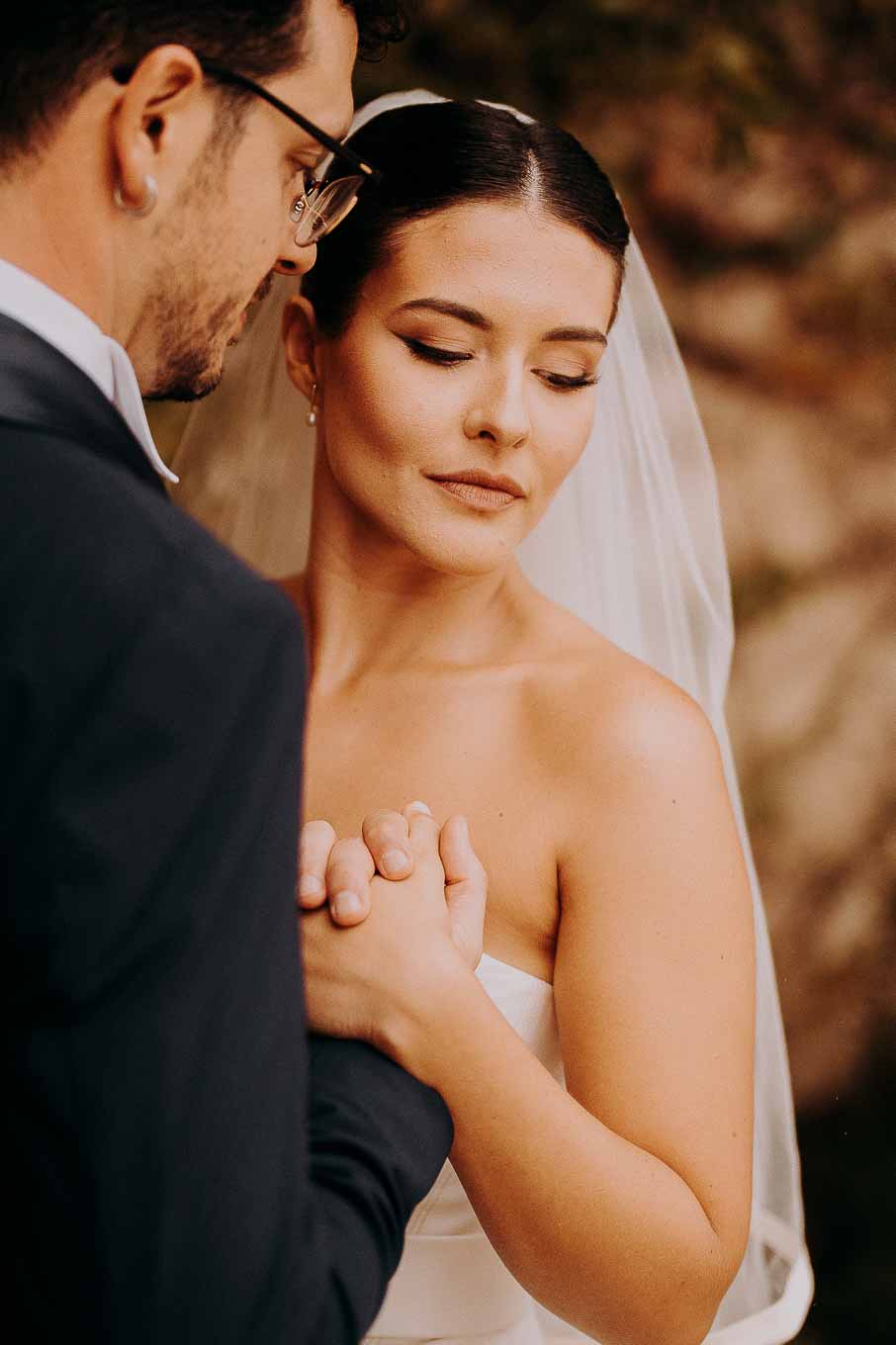 After the ceremony, as the rain eased into a soft drizzle, Isabela and Salvatore stepped into the forest that surrounds the estate a lush, centuries-old oak woodland that Tenuta Tresca lovingly preserves. Here, in the quiet green of nature, they enjoyed a private photo session. The sound of leaves, the earthy scent of wet soil, and the soft light filtering through the trees created a dreamlike backdrop for capturing the first peaceful moments as newlyweds.