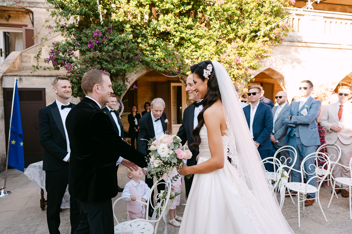 Adam and Catherine, a lovely British couple long in love with Italy — and especially Puglia — chose to celebrate their wedding at Masseria Salamina, surrounded by the breathtaking beauty of the Itria Valley.