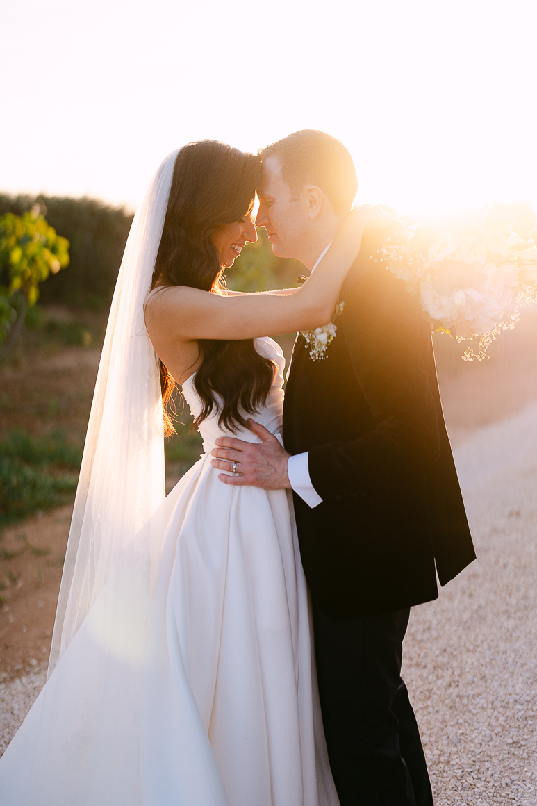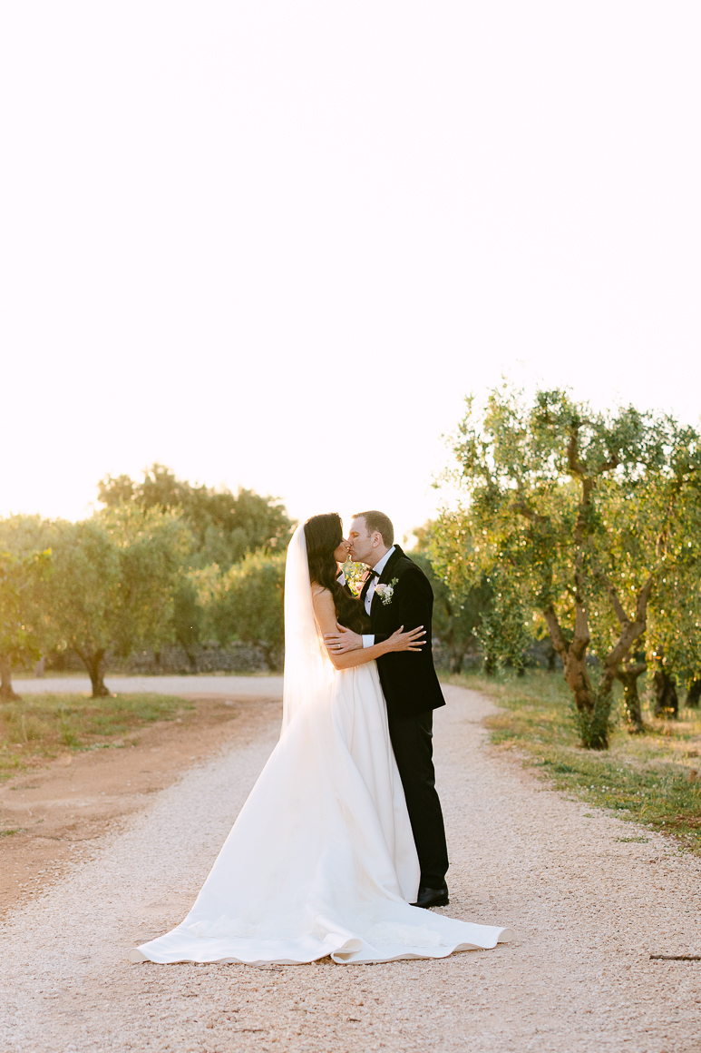 Wandering through the olive groves and stone paths of the Masseria, Adam and Catherine moved naturally, lost in their own bubble of joy. The warm sunset light bathed everything in golden tones — their glances, gentle gestures, and laughter became timeless memories captured in soft, natural frames.