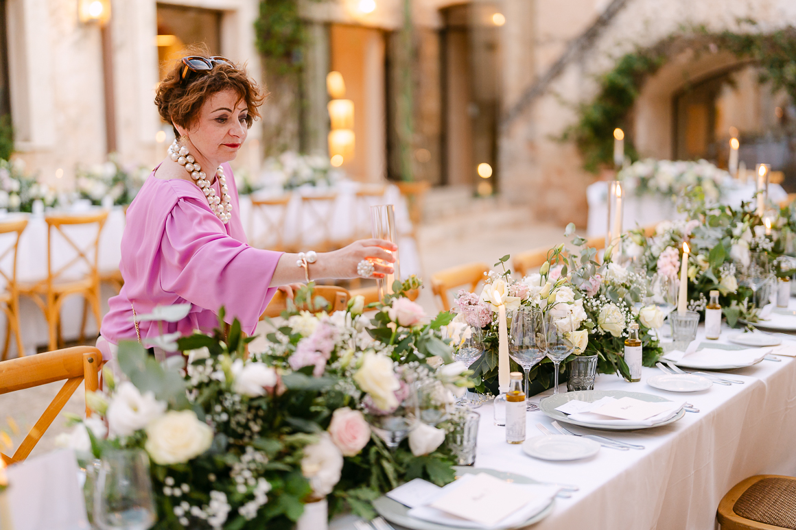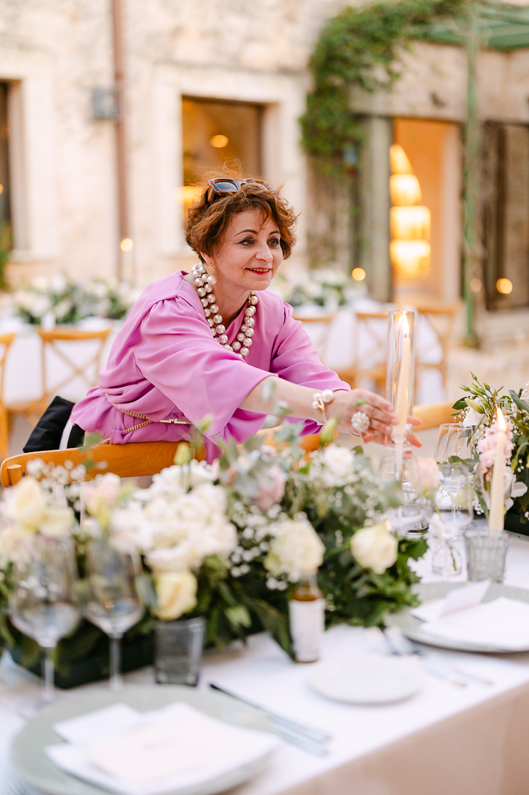After dinner, the celebration continued under the stars: music, dancing, and spontaneous joy. Some guests sang karaoke, others danced barefoot on the old stone, while couples sat quietly in corners, gazing at the night sky. The mood was intimate yet lively — a perfect ending to a perfect day.
