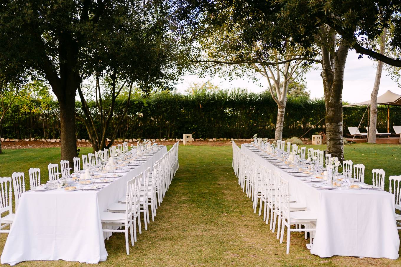Yes. Couples have complete freedom to design the ceremony, tables, décor, and lighting. Many choose rustic elegance, minimalistic designs, or traditional Italian touches to complement the masseria’s historic charm.
