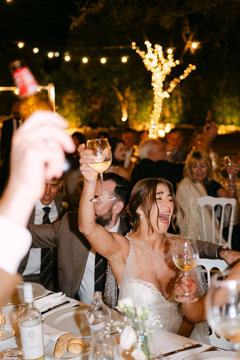As the sun set, the celebration continued with an outdoor wedding dinner on the lawn. This is one of the most searched and desired experiences for couples planning a destination wedding in Italy: “al fresco wedding dinner under the stars”.