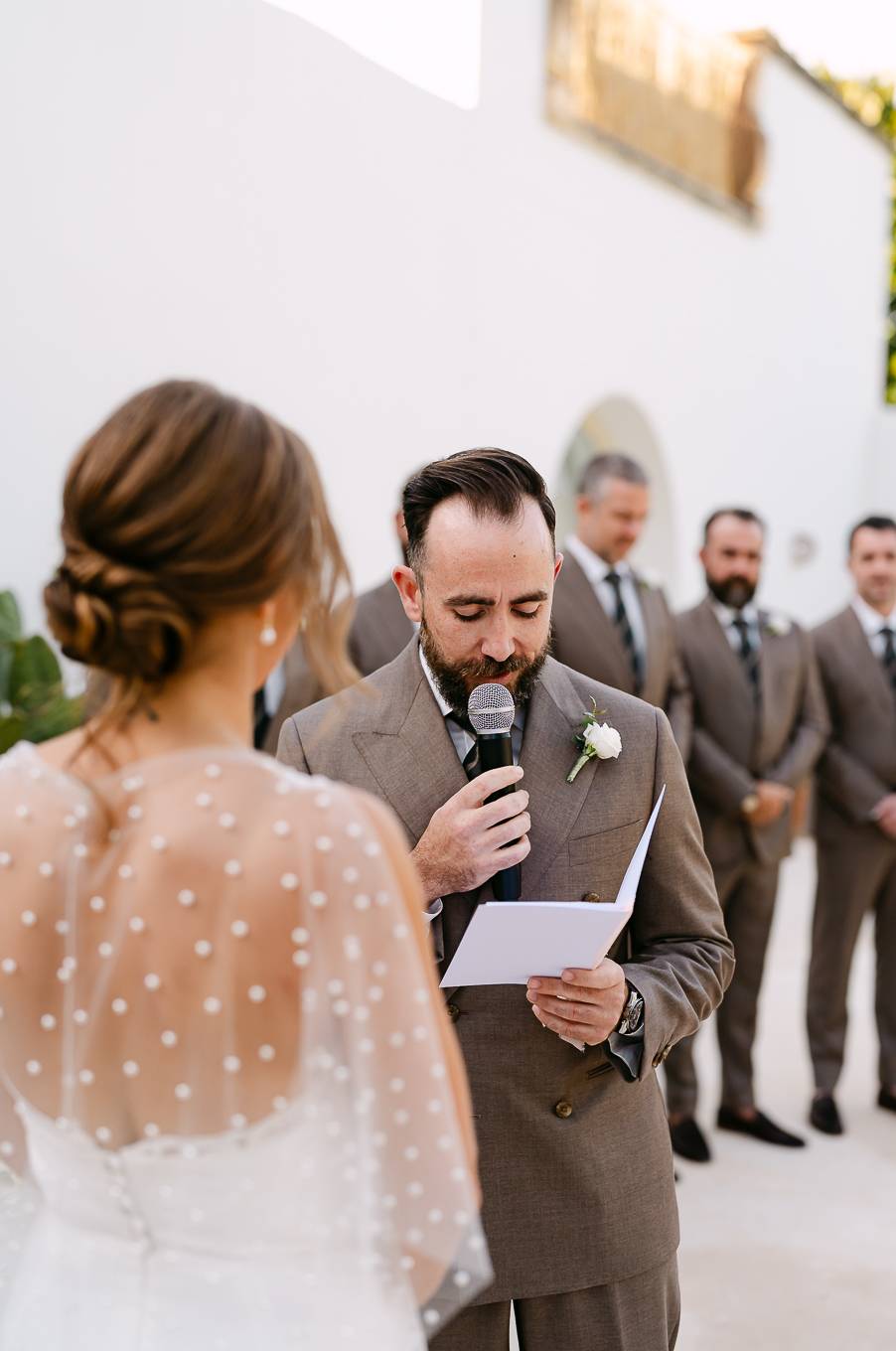 Smiles, tears, and heartfelt vows filled the air. The simplicity of the setting—combined with the beauty of the Italian countryside—created a truly magical atmosphere. The soft natural light enhanced every moment, making the ceremony feel timeless and deeply personal.