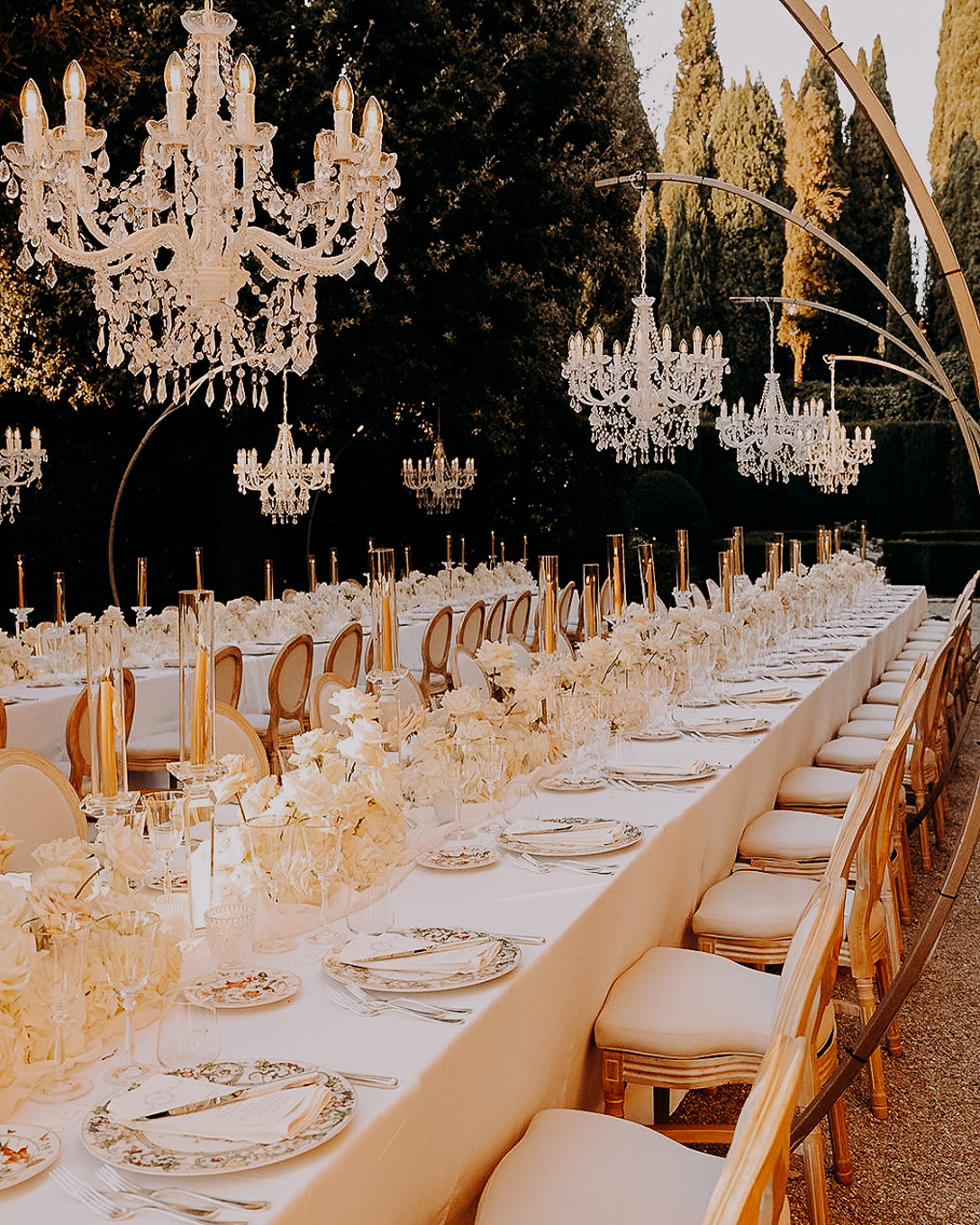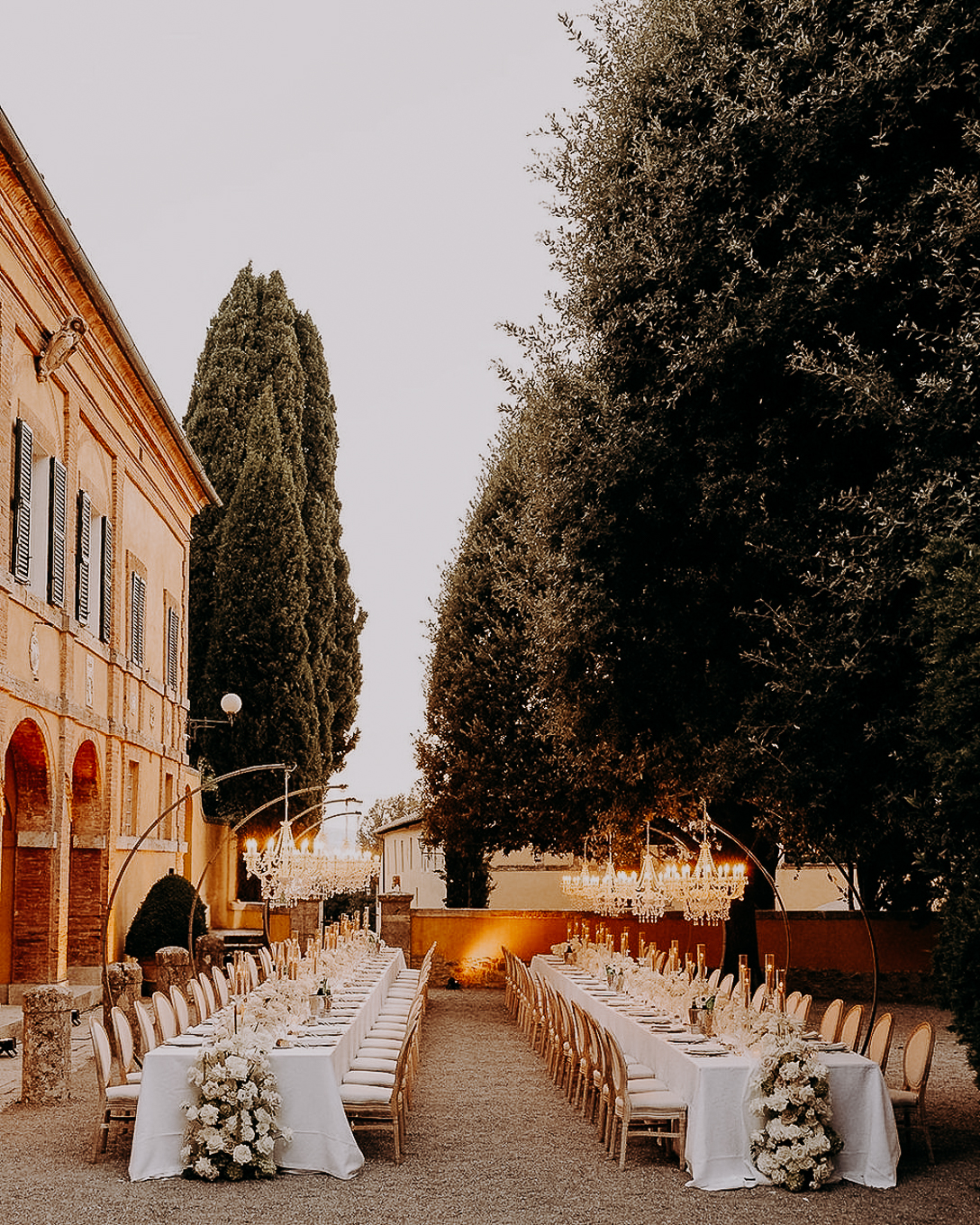 At La Foce, the perfect option is the Limonaia, a rustic yet elegant hall where music and dancing can continue late into the night. Some guests also choose to end the evening with a wine-tasting experience or a magical stargazing session in the peaceful Tuscan countryside.