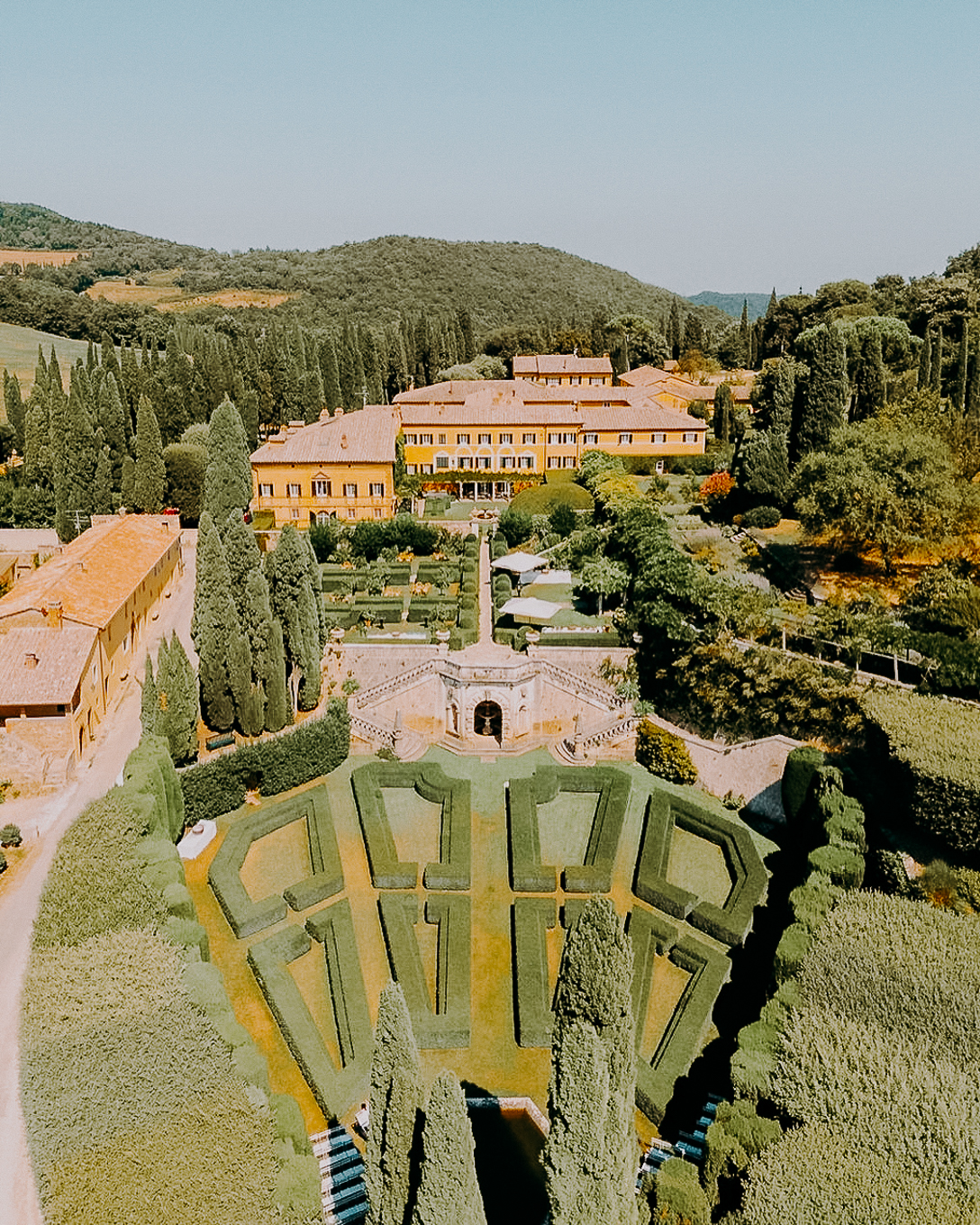 Its origins date back to the late 15th century when it served as a hostel for travelers along the Via Francigena. In 1924, Antonio and Iris Origo transformed it into a model of modern agriculture and a landscape jewel, thanks to the English architect Cecil Pinsent, who designed its renowned Italian gardens. Today, La Foce represents a perfect fusion of Renaissance architecture and Tuscany's unspoiled nature, making it one of the most sought-after locations for exclusive weddings.