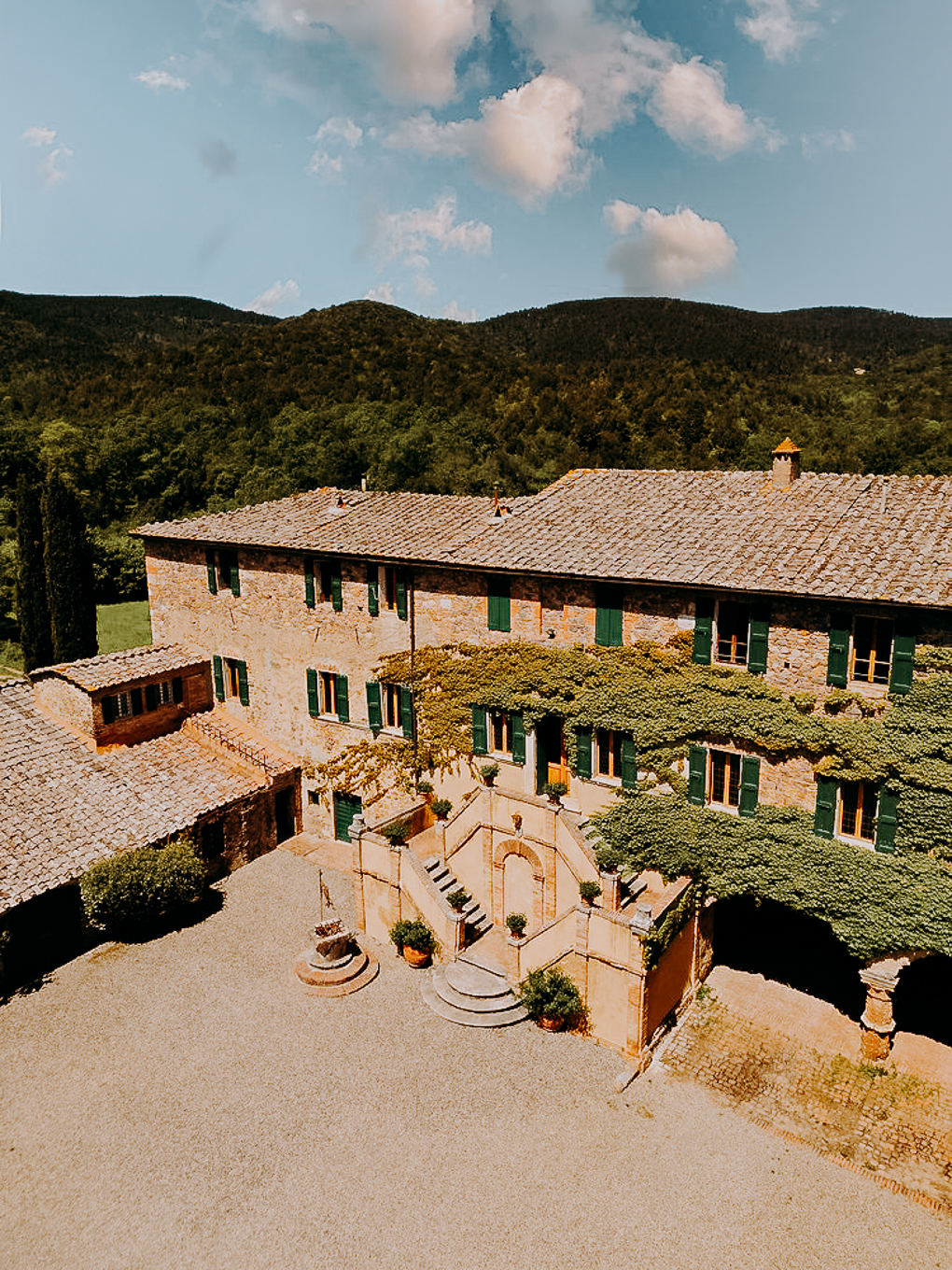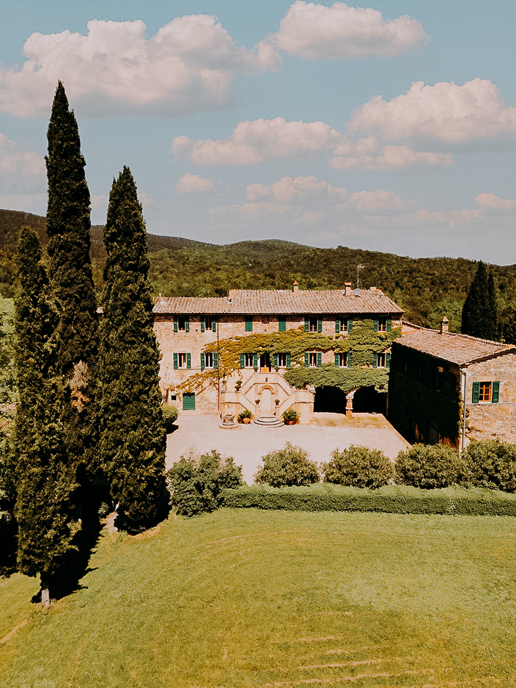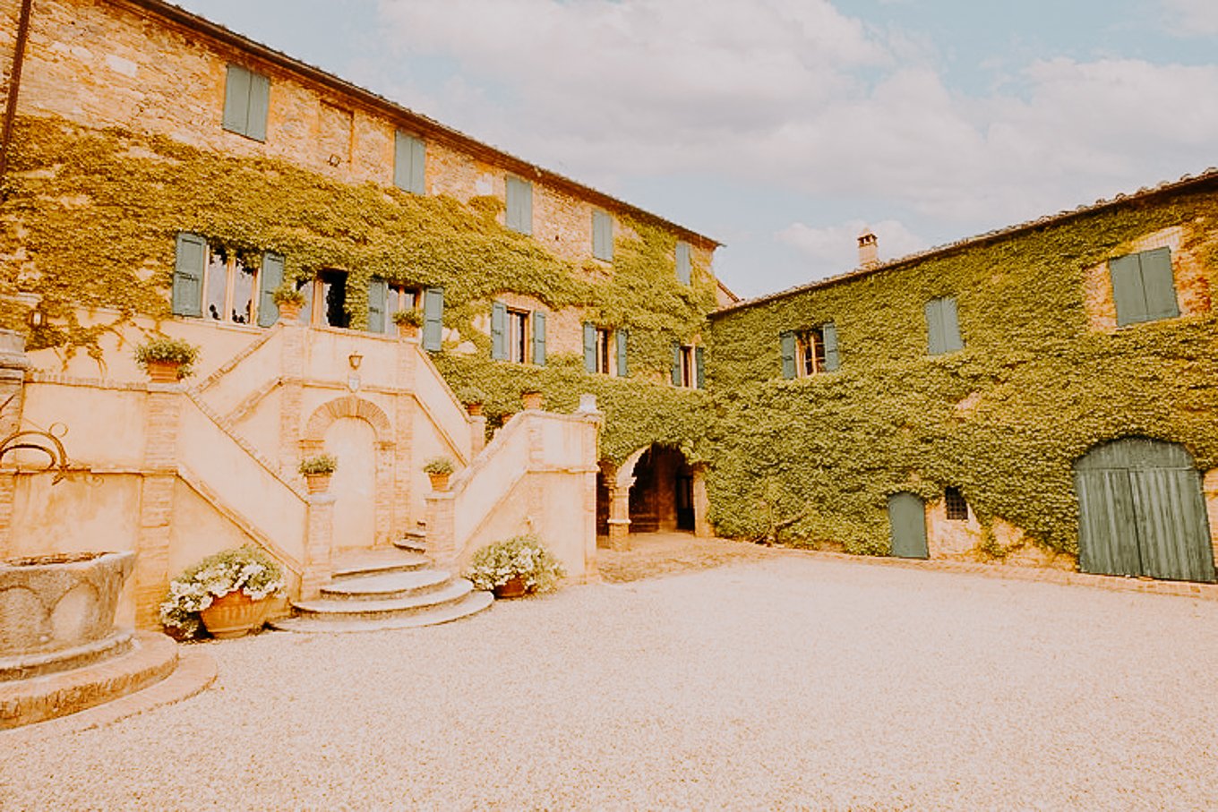 Borgo di Recenza is nestled in the heart of Tuscany, surrounded by rolling hills and picturesque vineyards, making it a perfect spot for a wedding. This charming location is just a short drive away from Florence, so you can easily access the region’s rich cultural heritage and stunning landscapes. The setting is peaceful and serene, with the beauty of Tuscany’s countryside providing the perfect canvas for a romantic celebration.