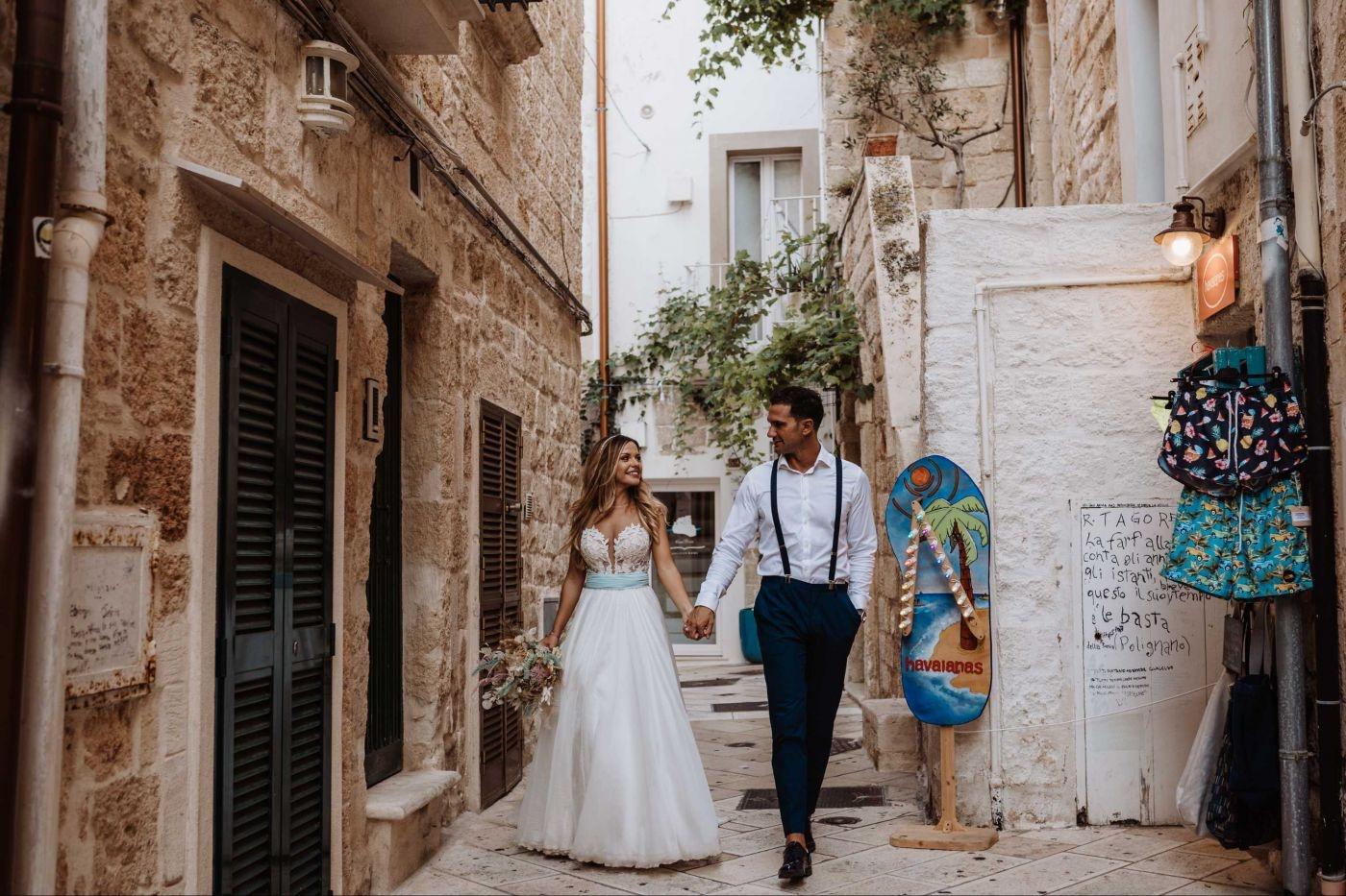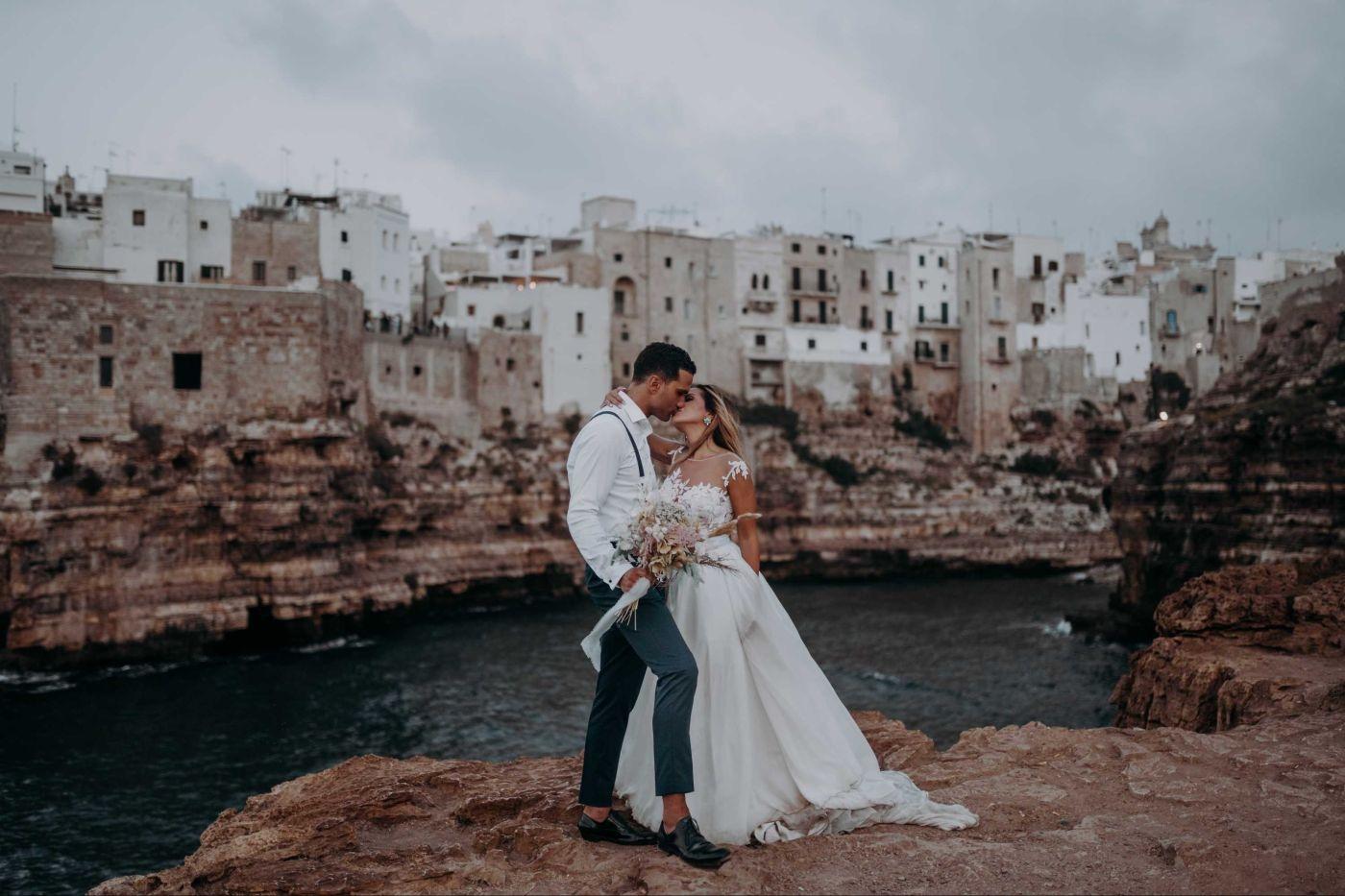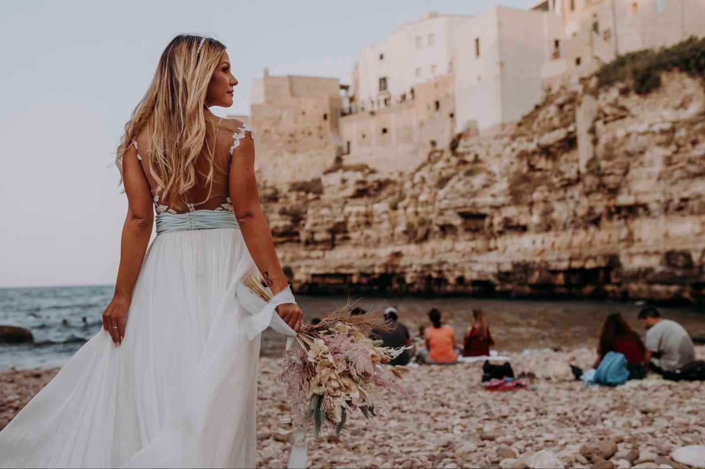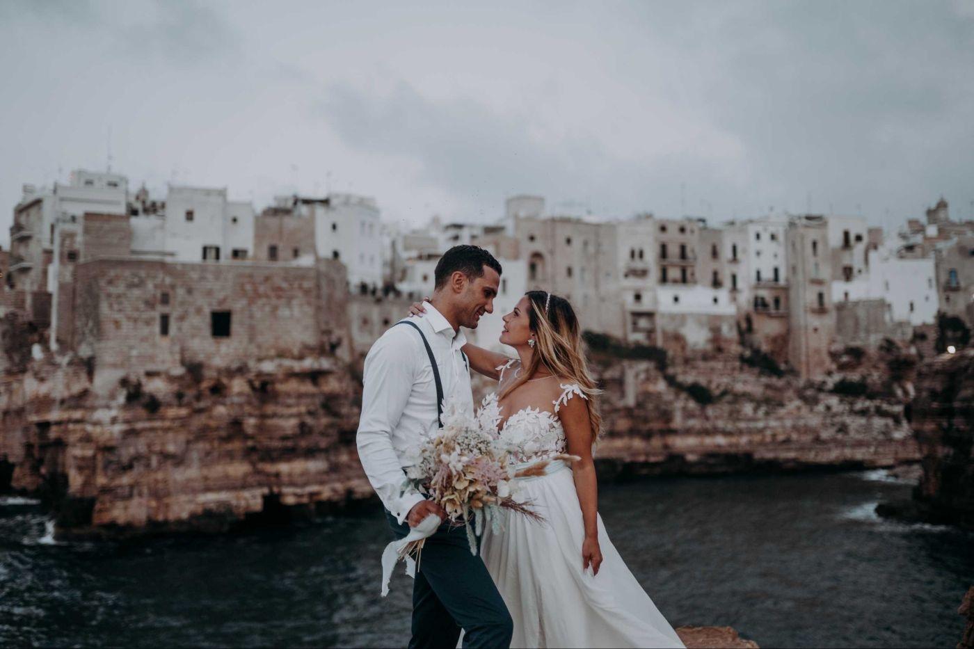 Polignano sorge su uno sperone roccioso a strapiombo sul mare Adriatico, a 33 chilometri a sud del capoluogo, che regala tantissime emozioni sia in termini di location che in termini fotografici. Il tutto organizzato con la grande partecipazione di Giulia Molinari, una wedding planner pugliese , con anni di esperienza, nella gestione dei matrimoni, elopement ed eventi, con la massima dedizione per la cura dei dettagli e l’organizzazione stessa di tutta la giornata.