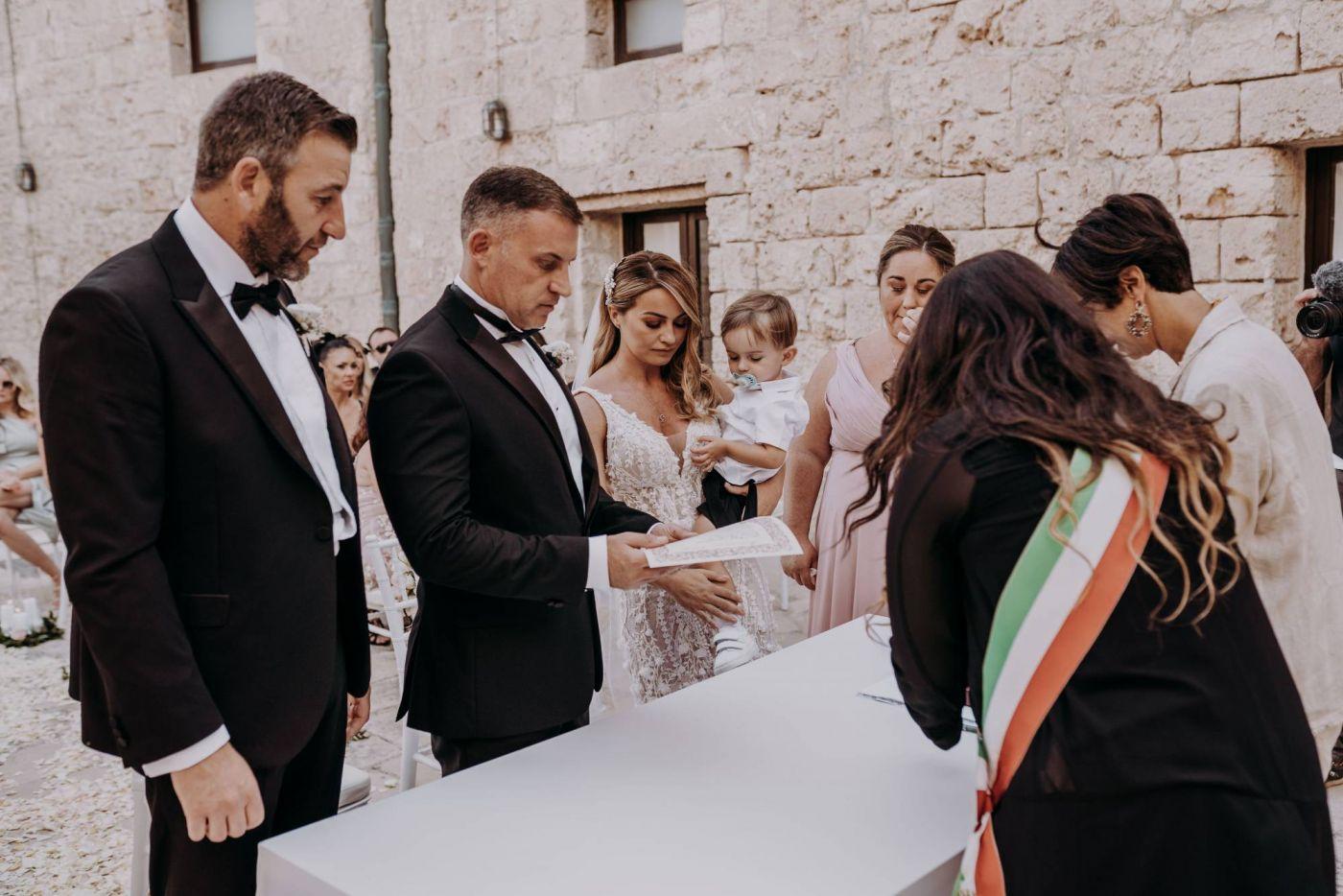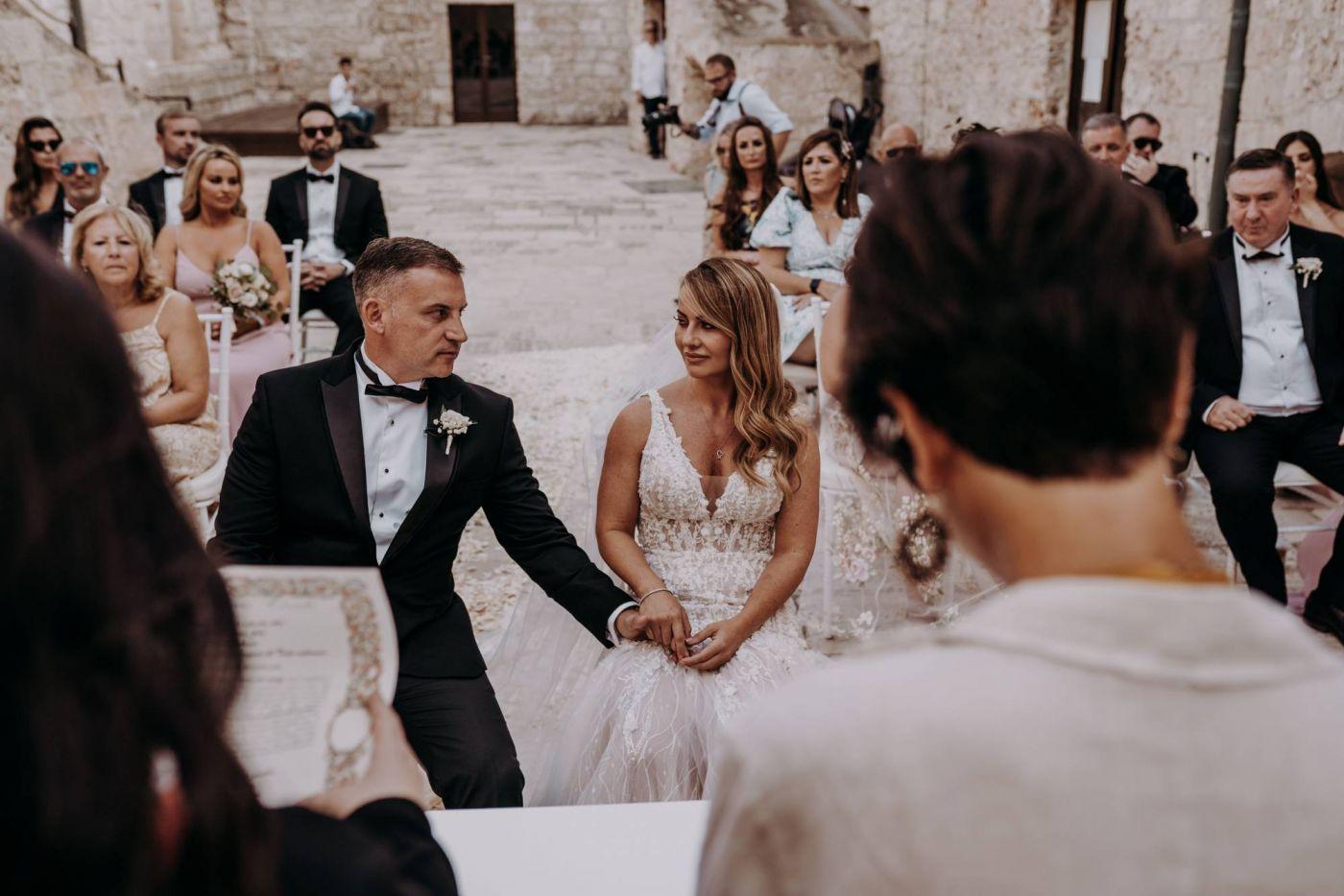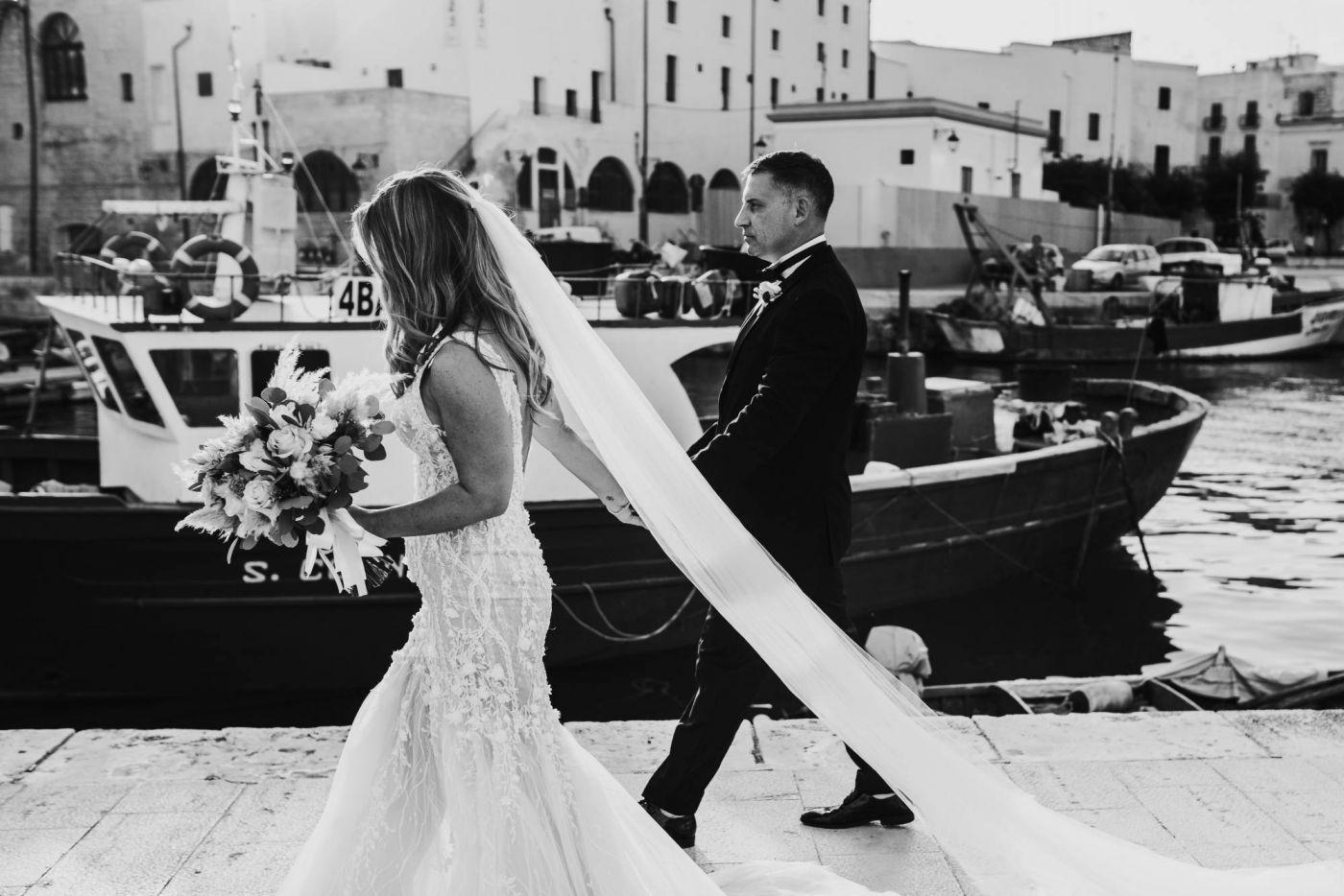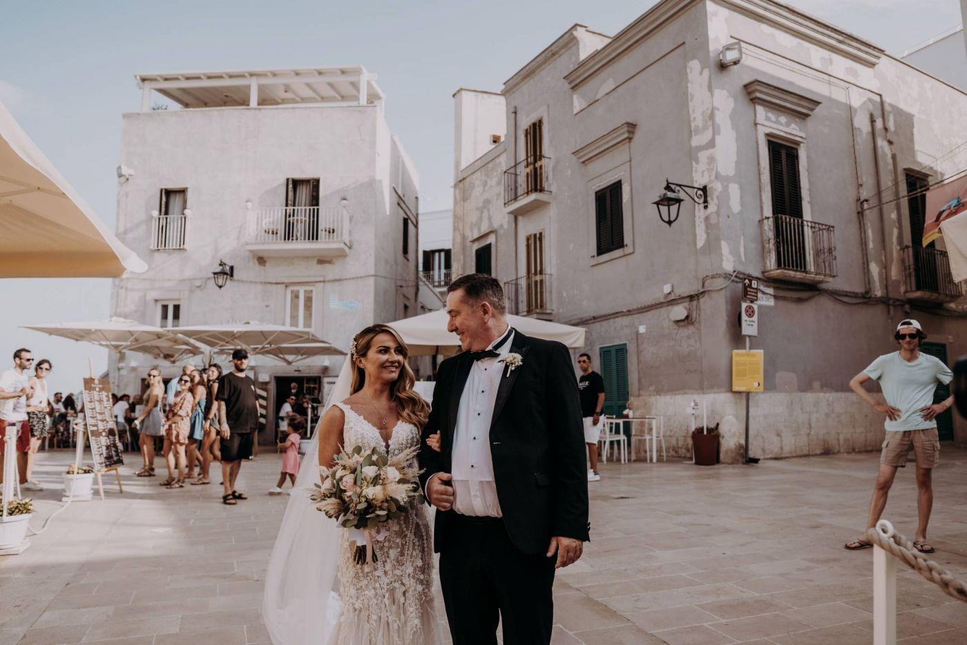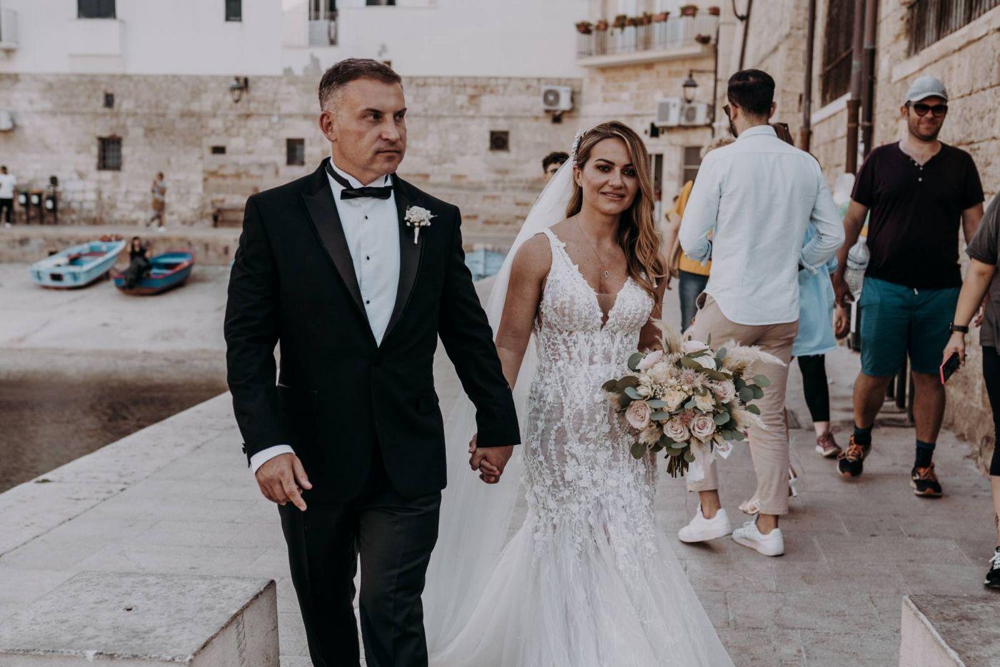 Ma del resto si sa, celebrare il proprio matrimonio in Puglia ha sempre il suo fascino. Mi aspettavo quindi un posto spettacolare ma devo dire che appena arrivato in location, sono rimasto letteralmente a bocca aperta. La cerimonia all’aperto preso il Castello di Monopoli è stata molto emozionante e divertente, grazie anche alla spontaneità del loro simpaticissimo bimbo.