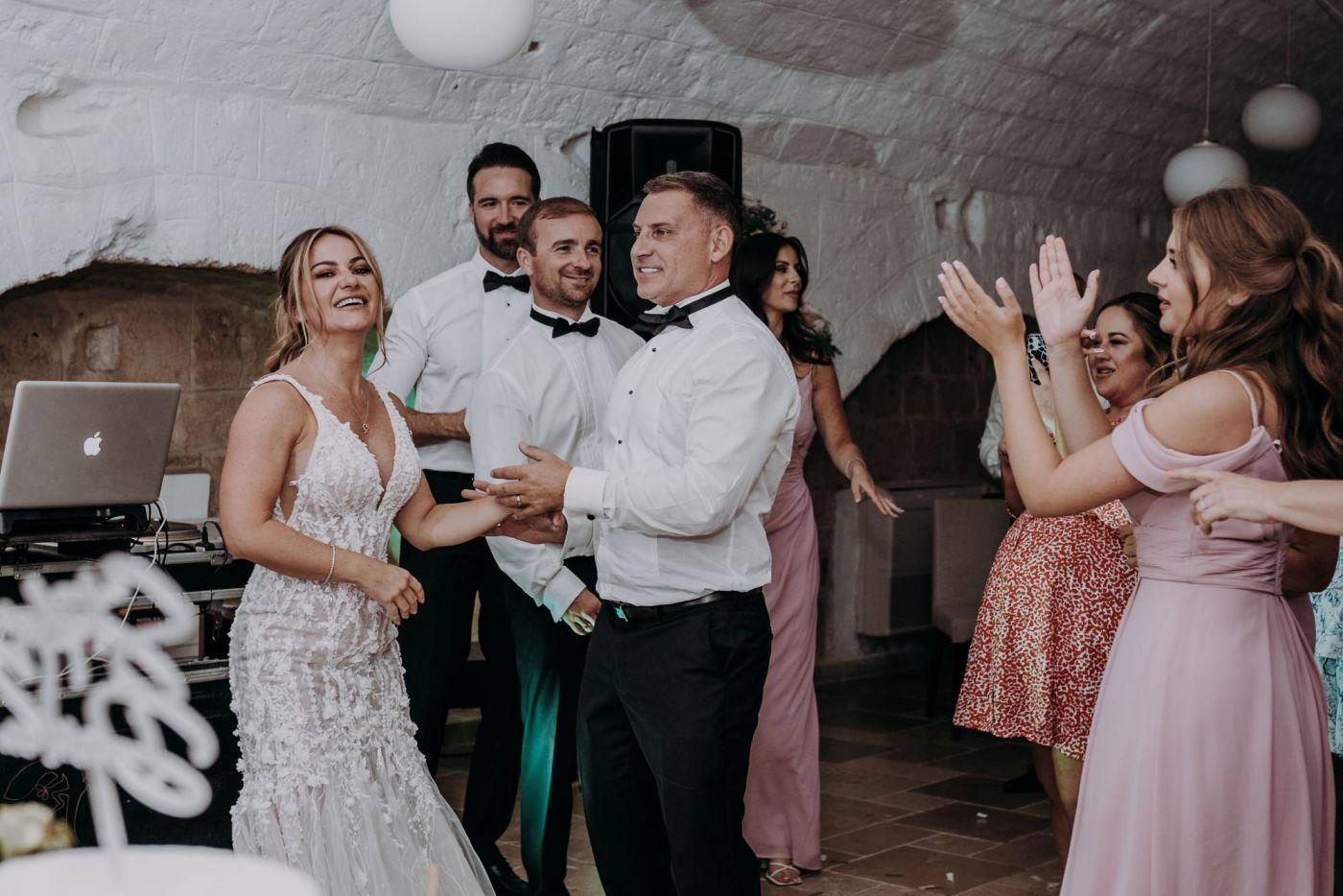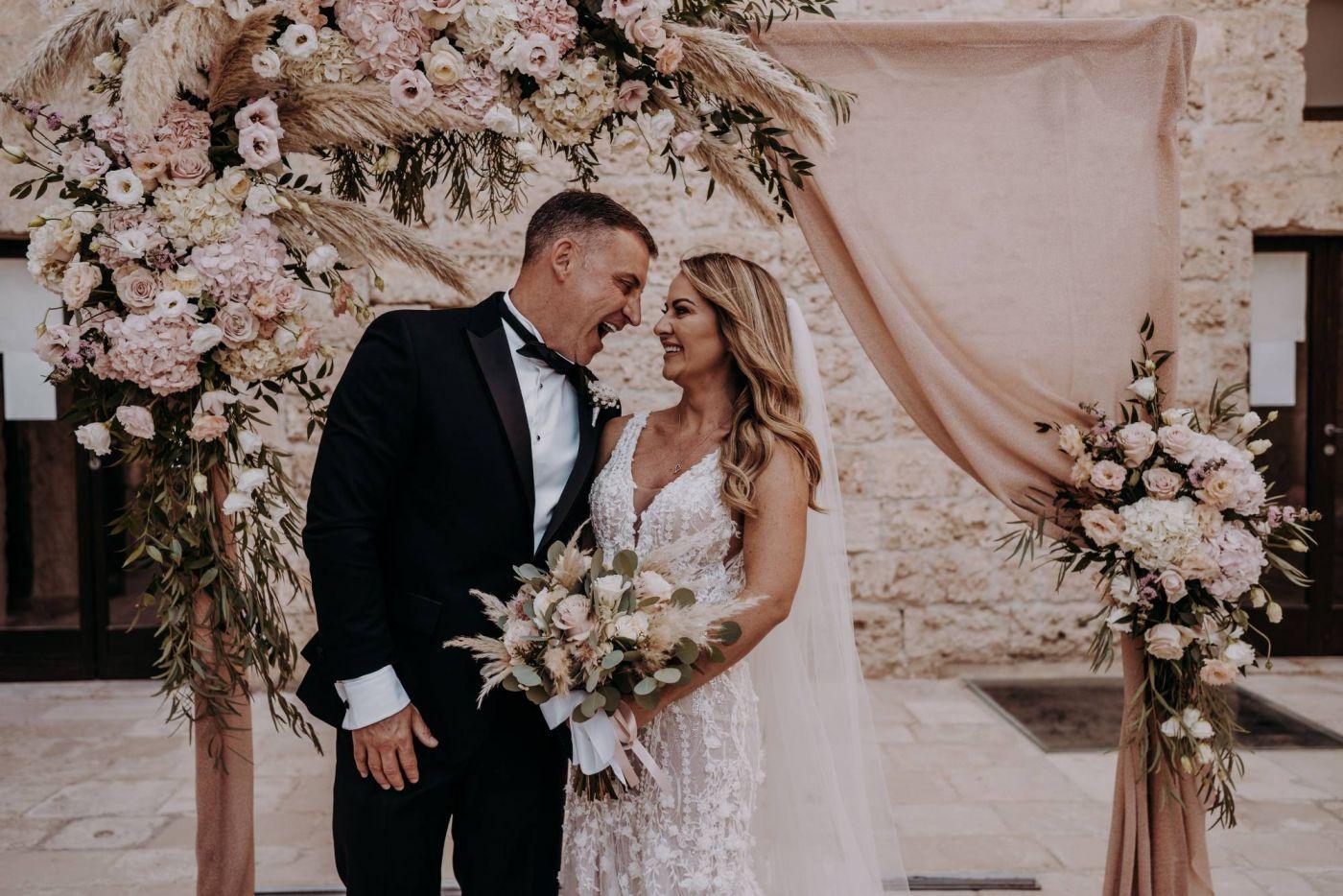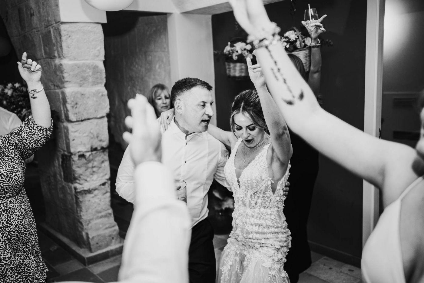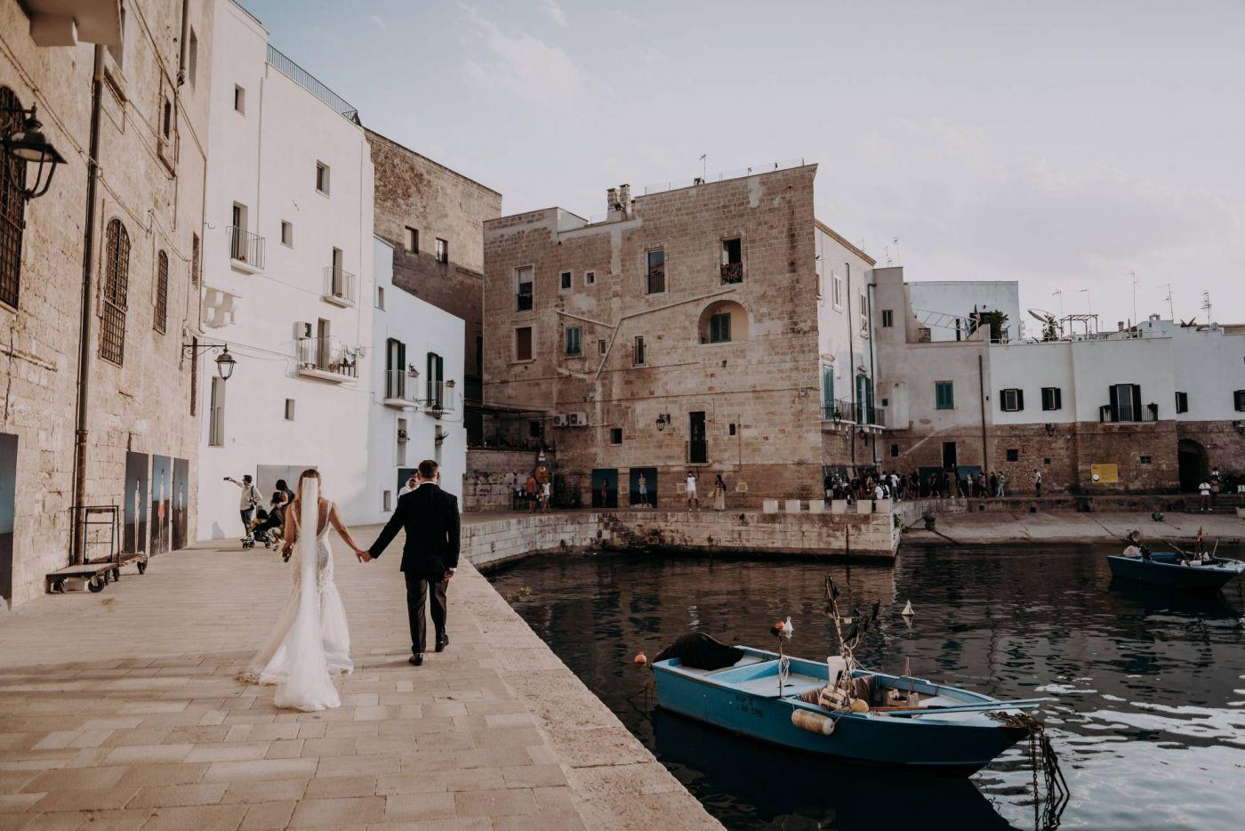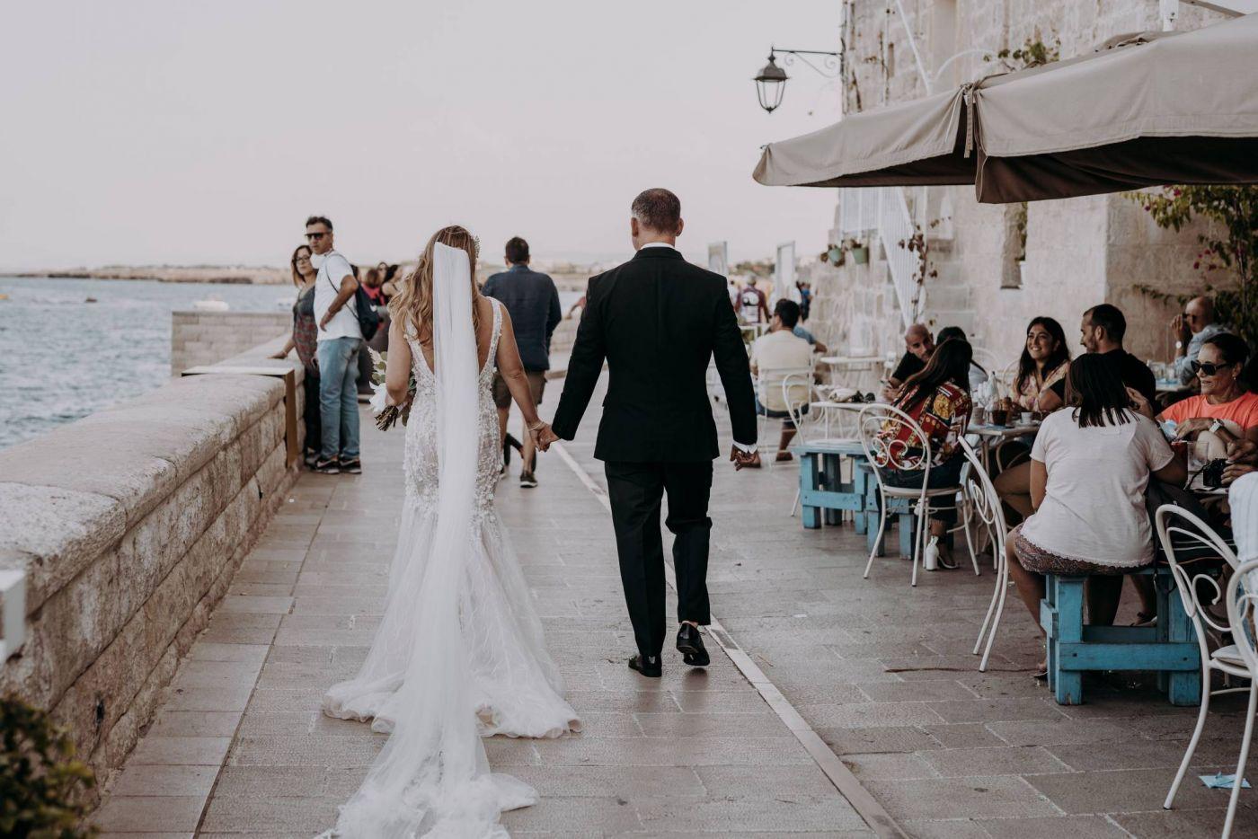 Dopo alcuni ritratti di coppia con un tramonto spettacolare, i festeggiamenti sono proseguiti con una cena all’interno del centro storico di Monopoli, intervallata da diversi discorsi davvero toccanti. Finita la cena, Stephanie e Darren e i loro amici, si sono scatenati in pista fino a tarda notte.