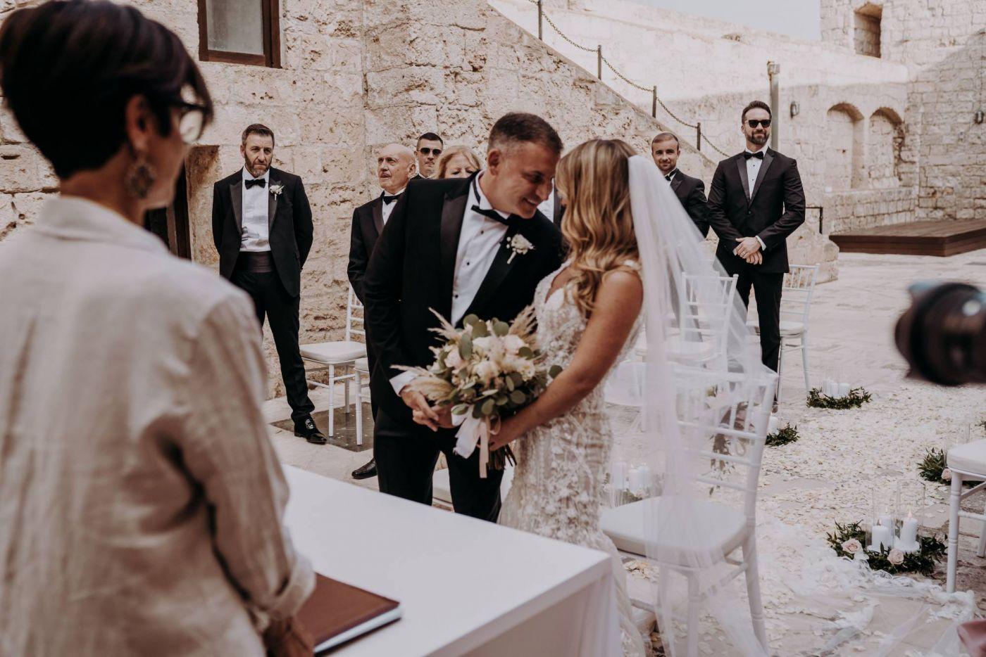 Un matrimonio unico nel suo genere e molto intimo organizzato con il rito simbolico nel bellissimo Castello di Monopoli -Bari-