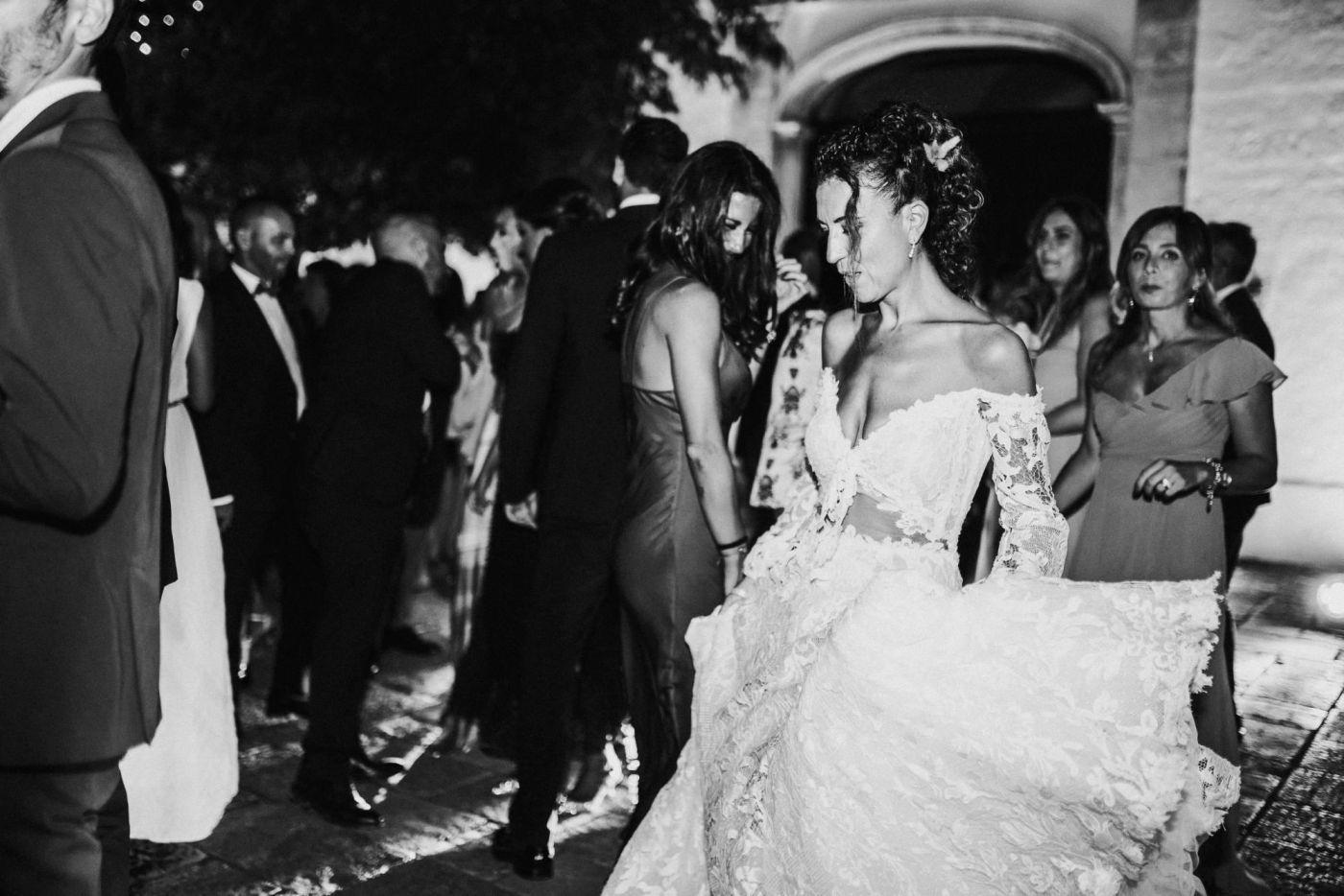 Vanessa aveva scelto con cura il suo abito, optando per uno stile shabby chic che la faceva sembrare una principessa uscita da una fiaba. Il vestito, abbinato ad un bouquet di fiori bianchi e un velo leggero, aveva conferito alla sposa un'eleganza romantica e senza tempo, in perfetto equilibrio con l'atmosfera della Puglia.