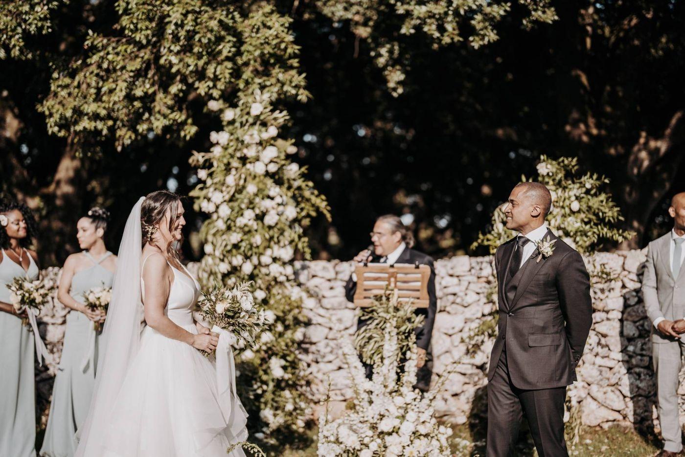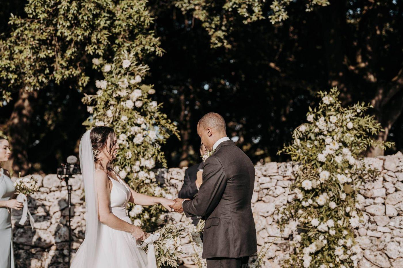 Stephanie e Trevor si sono innamorati della Puglia durante una vacanza e hanno deciso che questo sarebbe stato il luogo perfetto per il loro matrimonio. Il paesaggio mozzafiato, le tradizioni autentiche e la cucina deliziosa hanno conquistato i loro cuori.