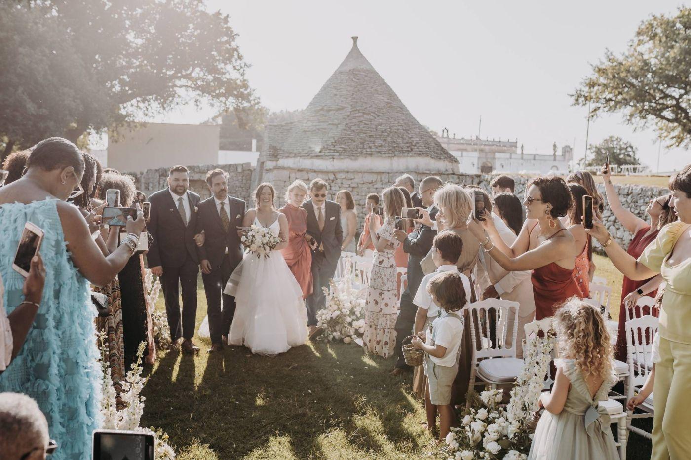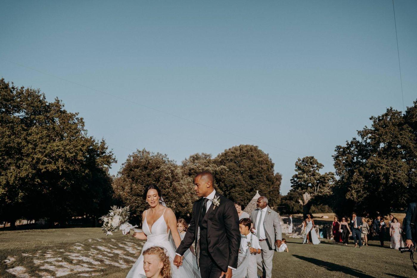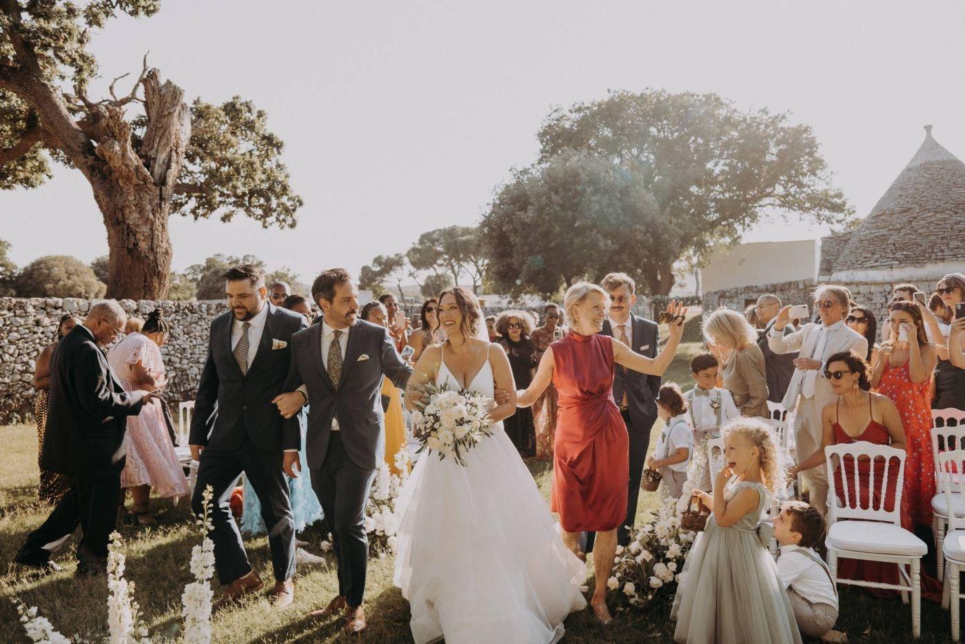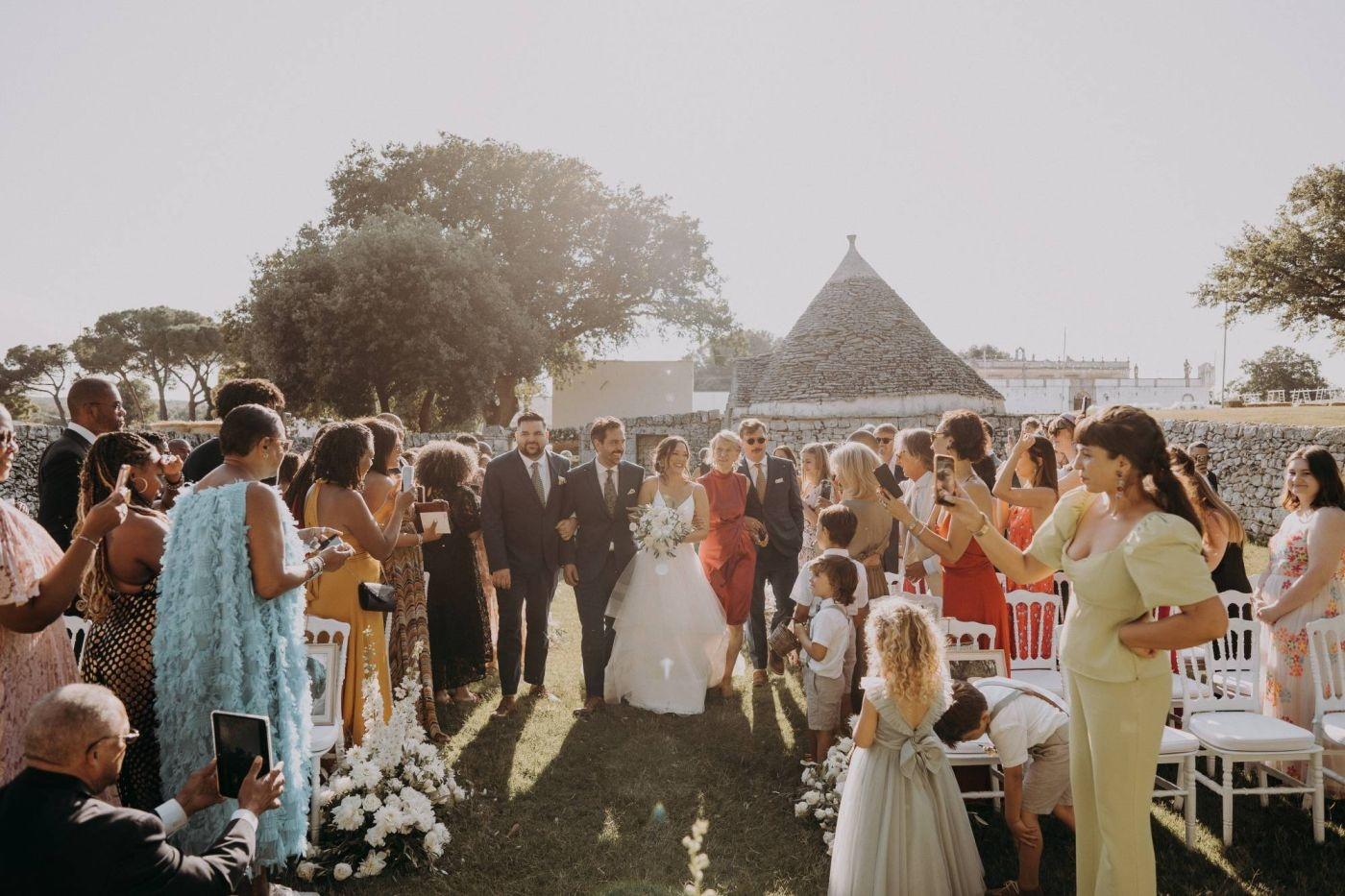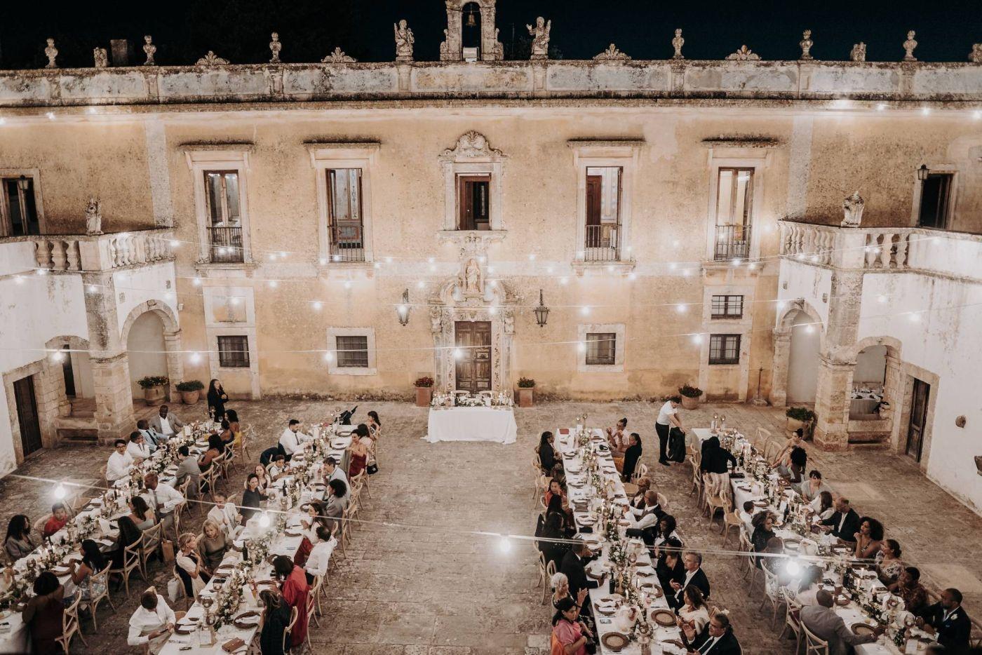 Dopo le foto, Stephanie, Trevor e i loro ospiti si sono concessi una cena pugliese tradizionale con piatti deliziosi come orecchiette al sugo di pomodoro fresco e braciole. La festa è continuata fino a tarda notte con balli scatenati e risate sotto il cielo stellato. Gli invitati da tutto il mondo hanno reso questa giornata ancora più speciale.