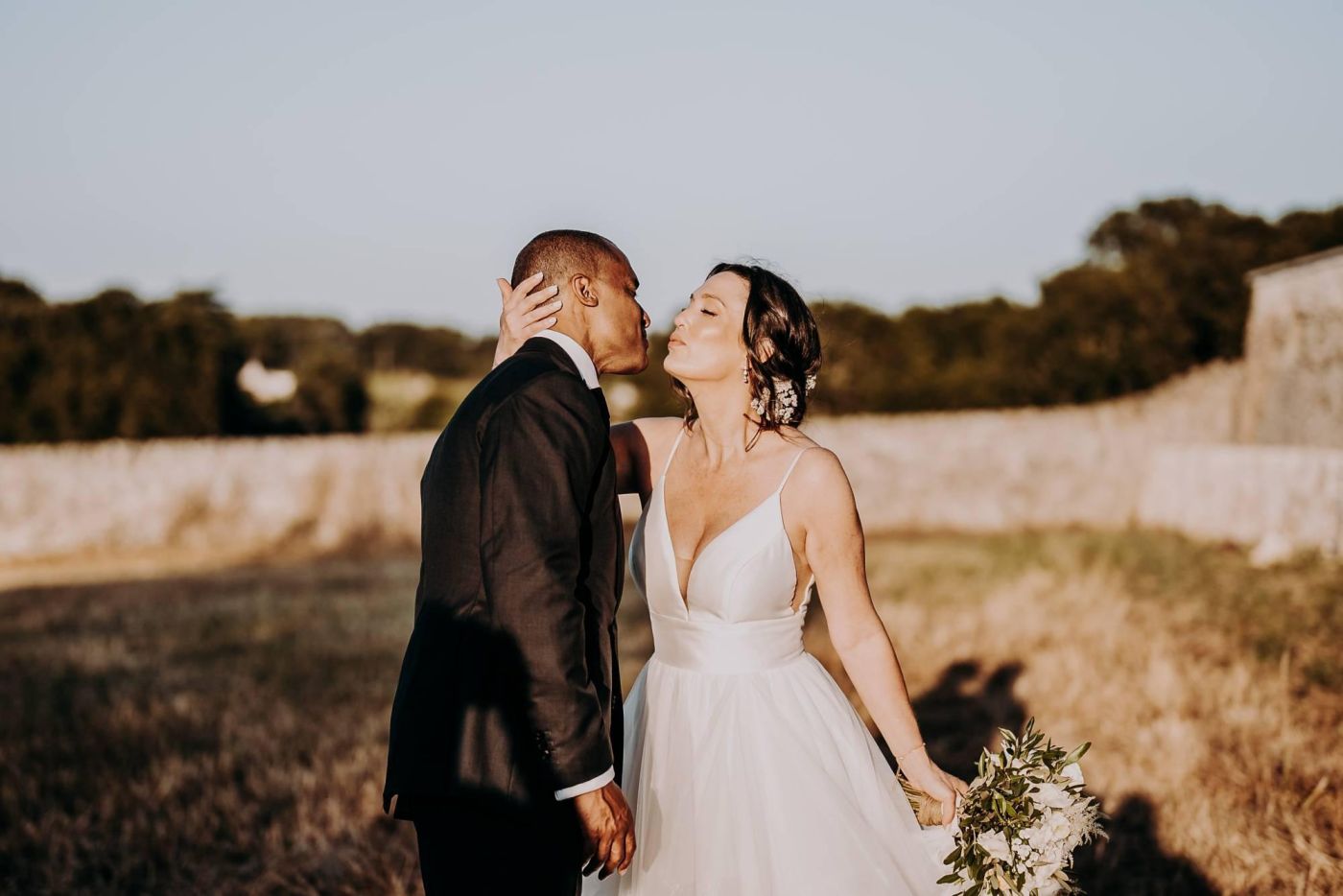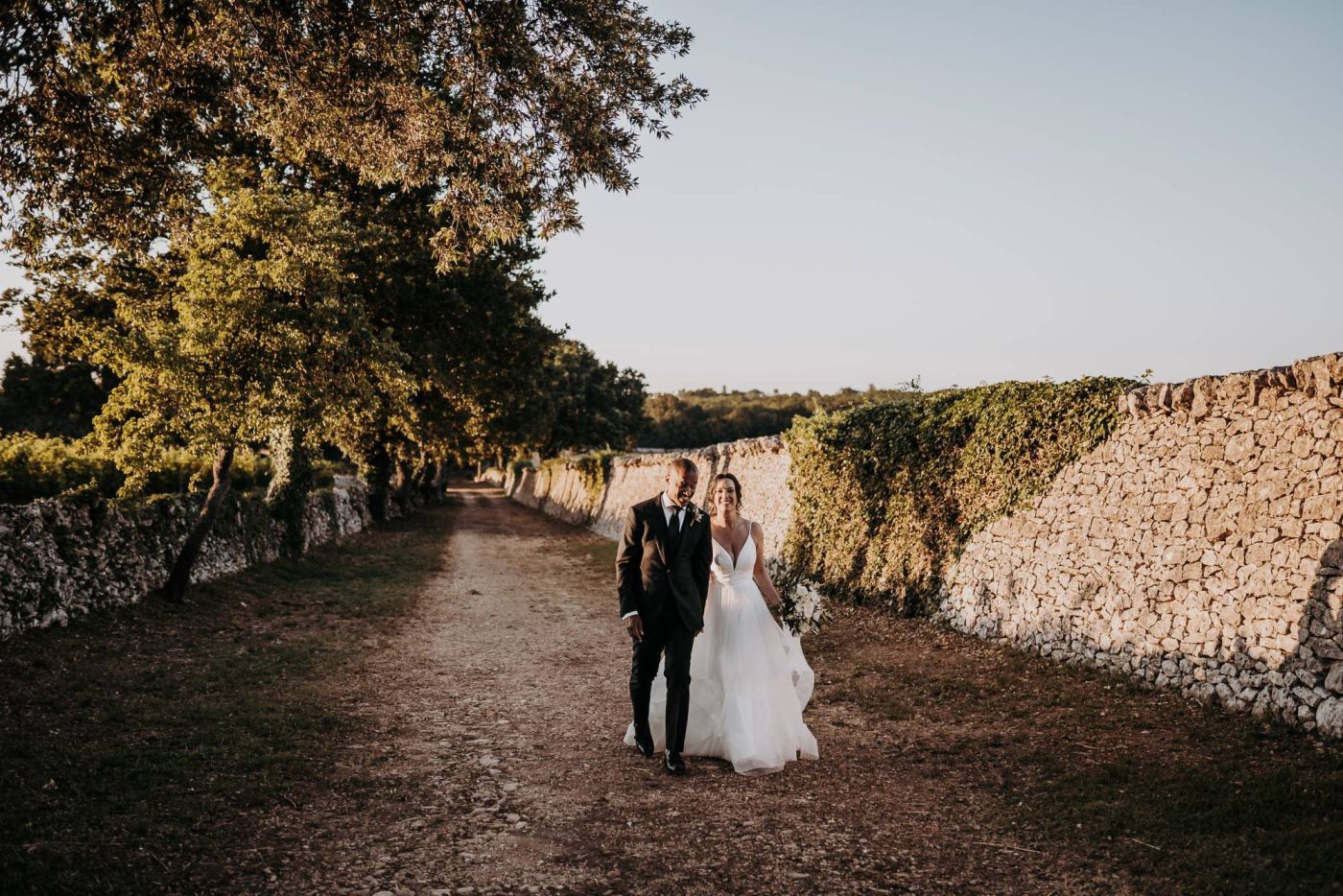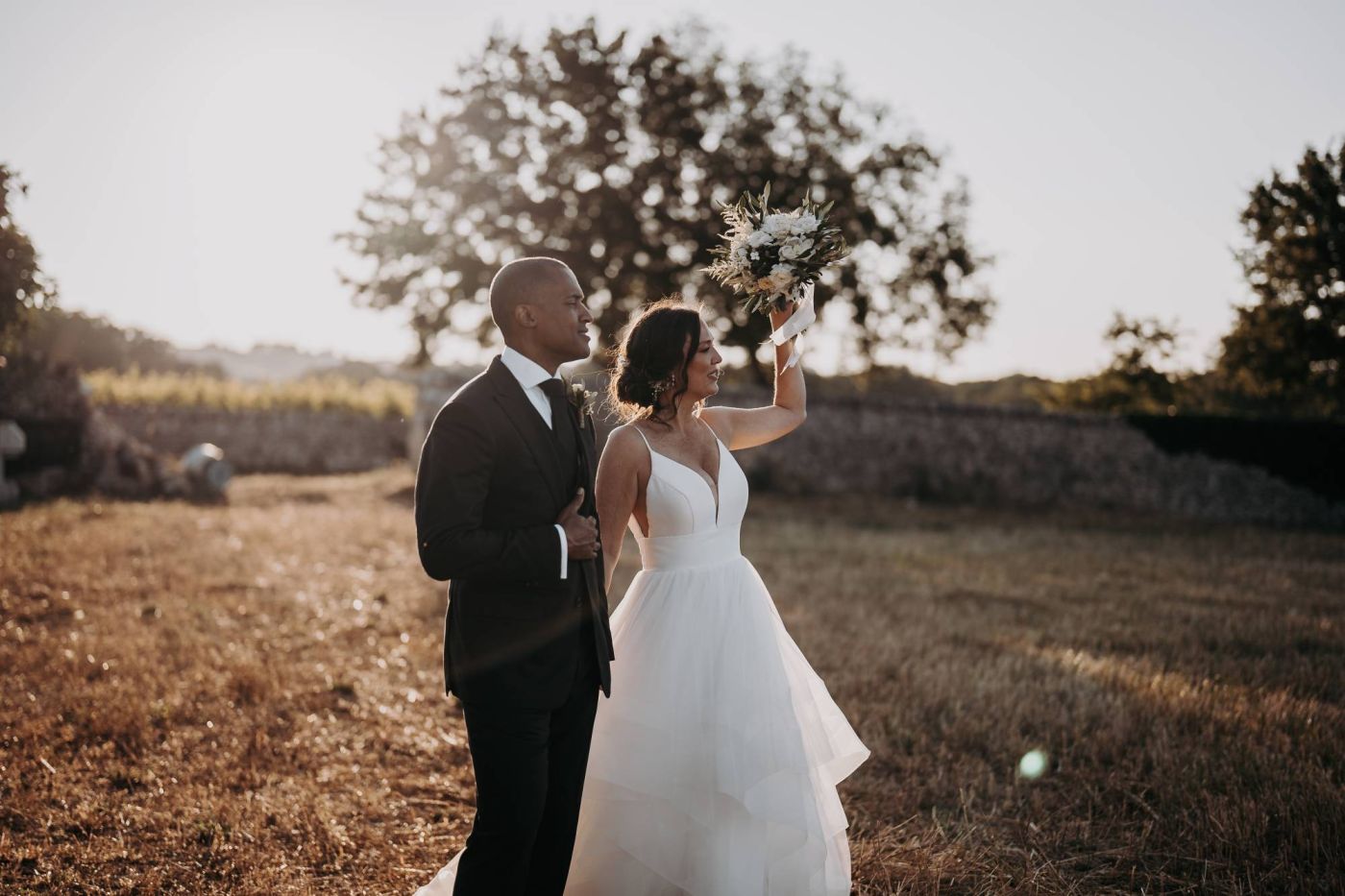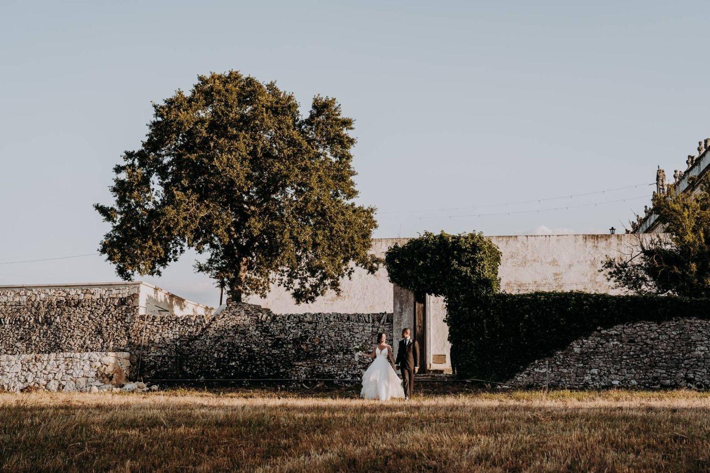 Dopo la cerimonia, è iniziata la sessione fotografica. Abbiamo catturato ogni momento speciale, dalla coppia che si baciava sotto un ulivo secolare alla loro passeggiata romantica tra le mura della Masseria Palesi. Le foto erano semplicemente spettacolari, e ogni scatto raccontava la loro storia d'amore.