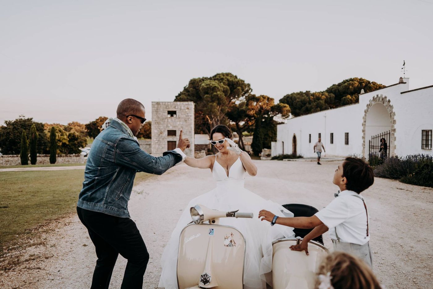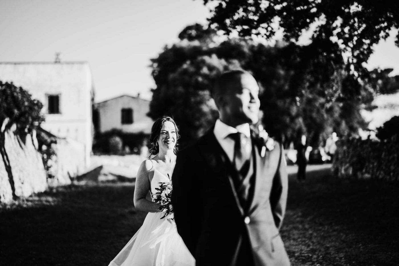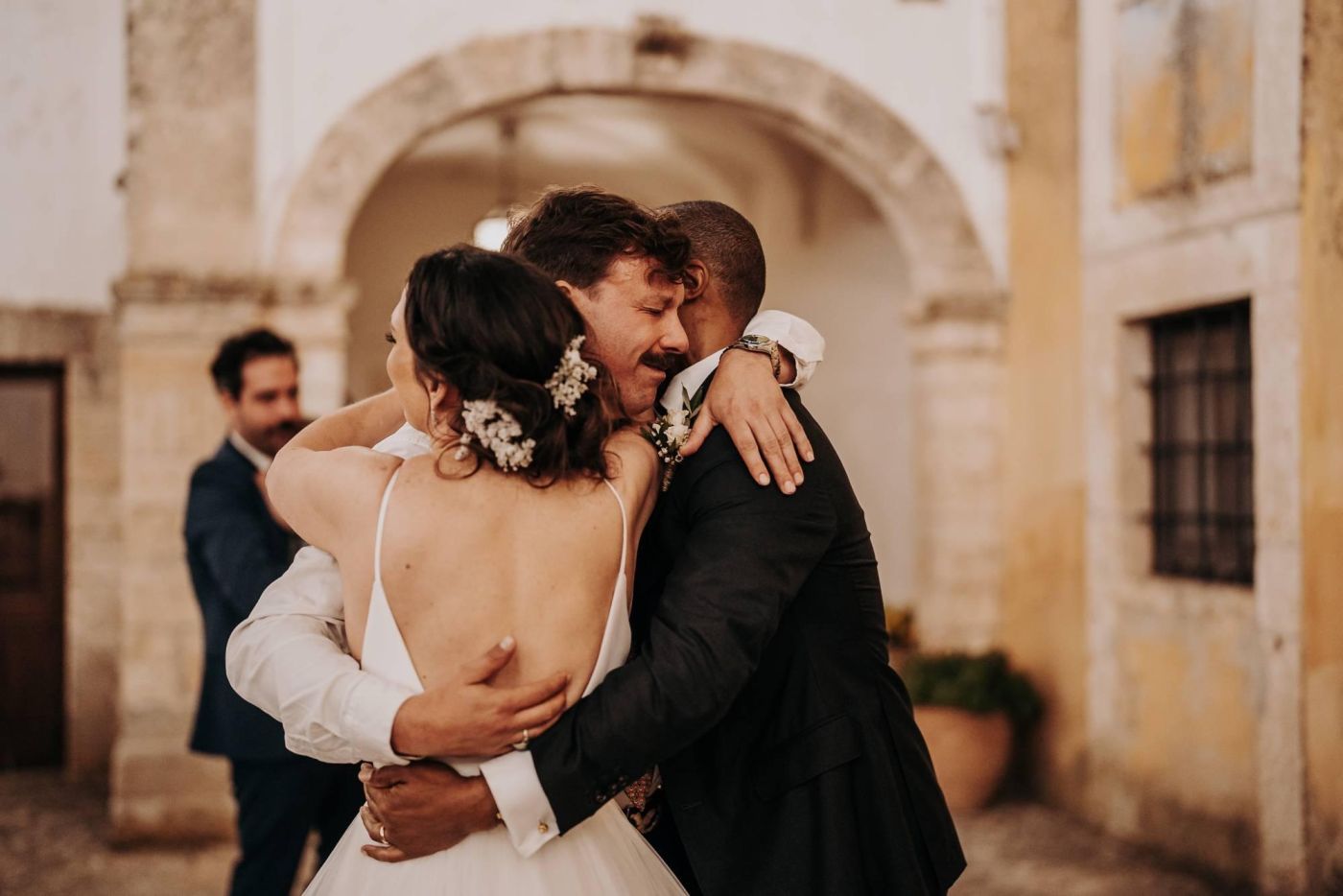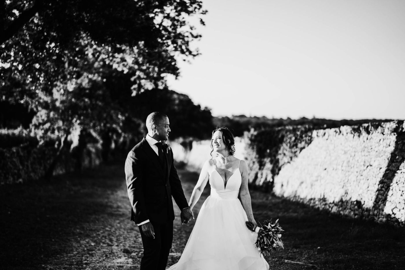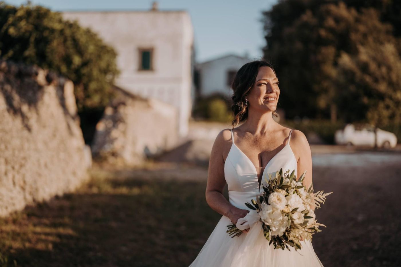 Dopo la cerimonia, è iniziata la sessione fotografica. Abbiamo catturato ogni momento speciale, dalla coppia che si baciava sotto un ulivo secolare alla loro passeggiata romantica tra le mura della Masseria Palesi. Le foto erano semplicemente spettacolari, e ogni scatto raccontava la loro storia d'amore.