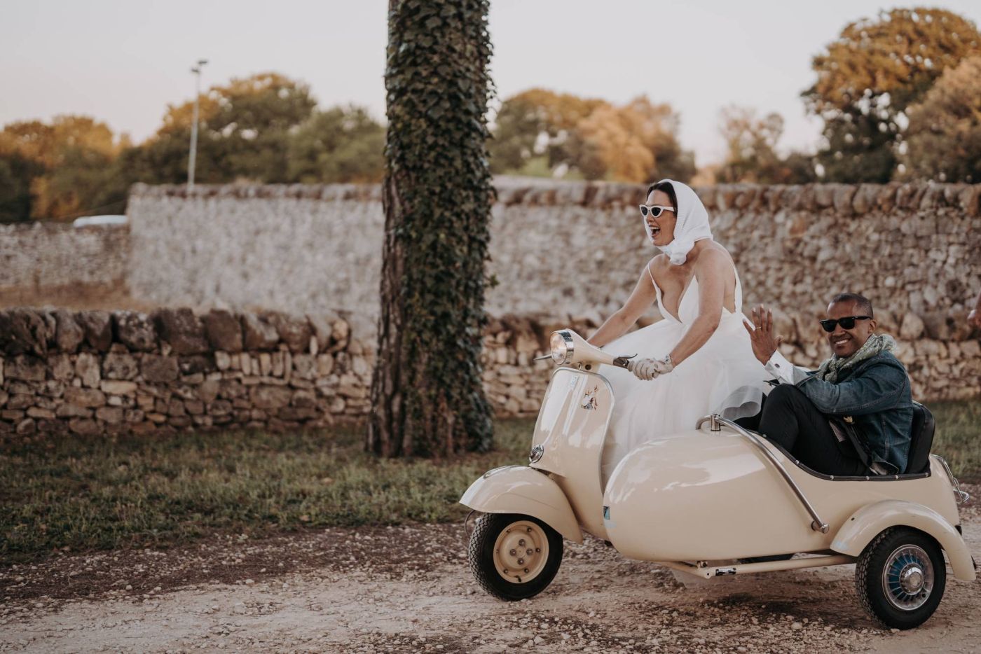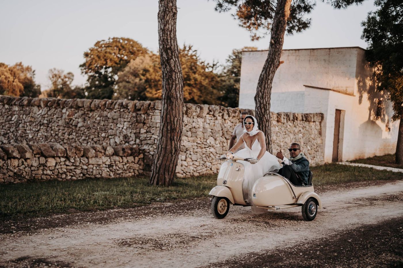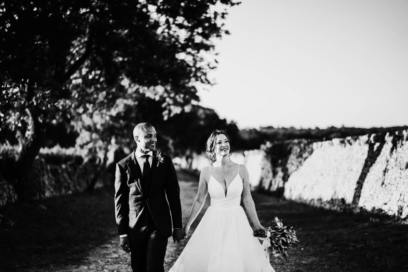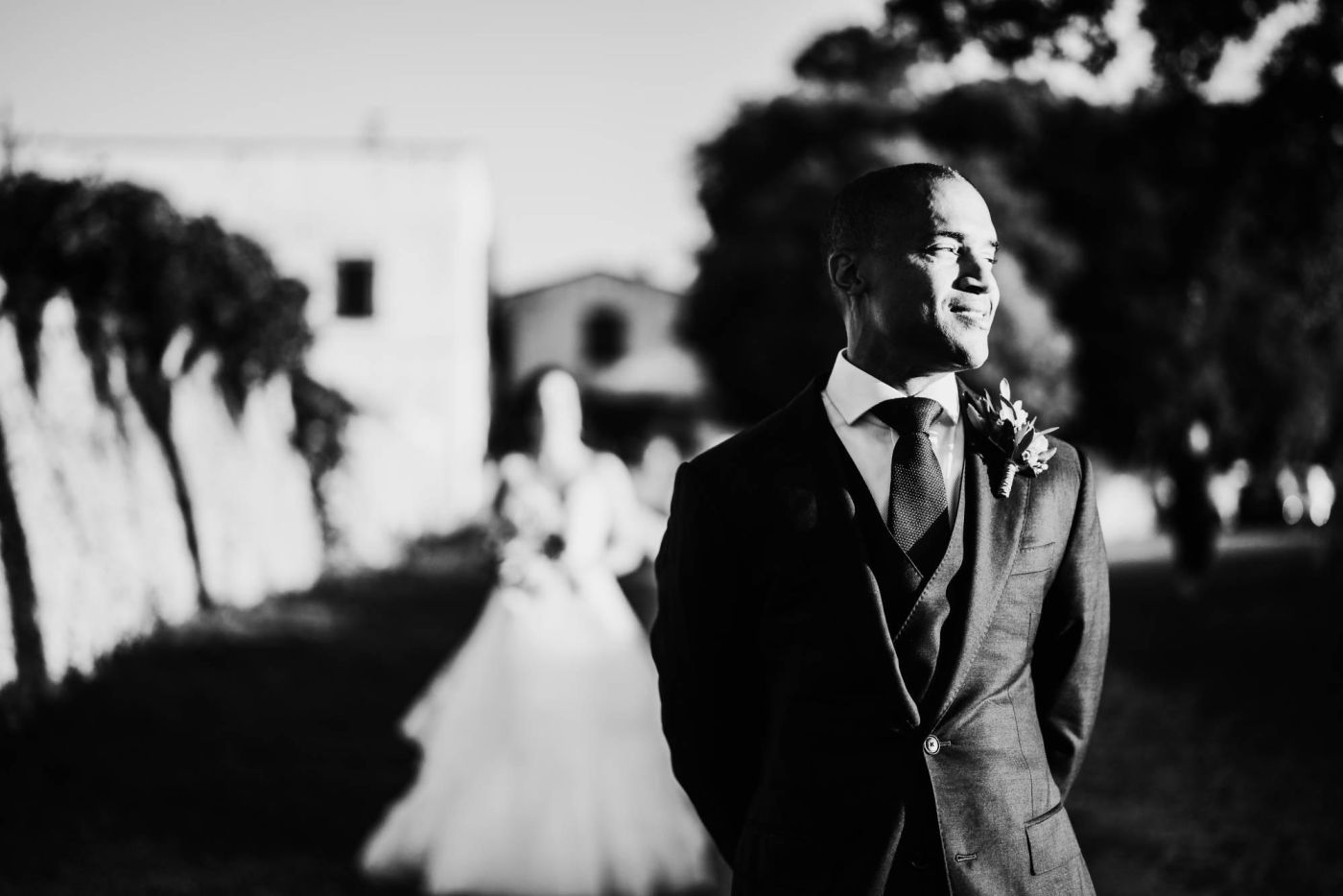 Dopo la cerimonia, è iniziata la sessione fotografica. Abbiamo catturato ogni momento speciale, dalla coppia che si baciava sotto un ulivo secolare alla loro passeggiata romantica tra le mura della Masseria Palesi. Le foto erano semplicemente spettacolari, e ogni scatto raccontava la loro storia d'amore.
