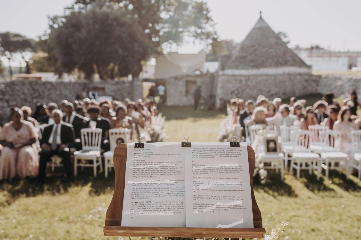 Oggi vi racconto la favolosa storia di Stephanie e Trevor, una coppia americana che ha scelto la bellissima Masseria Palesi a Martina Franca, in Puglia, come cornice per il loro indimenticabile matrimonio civile.