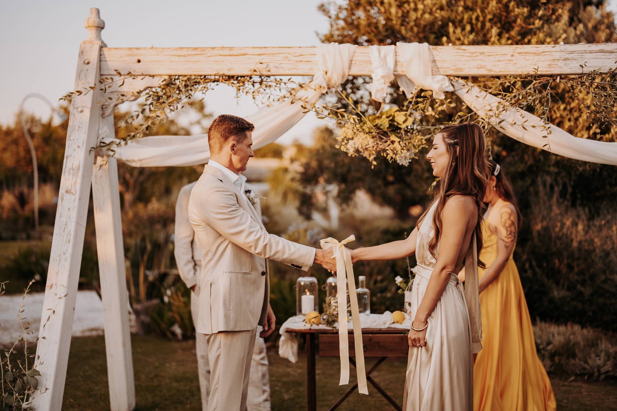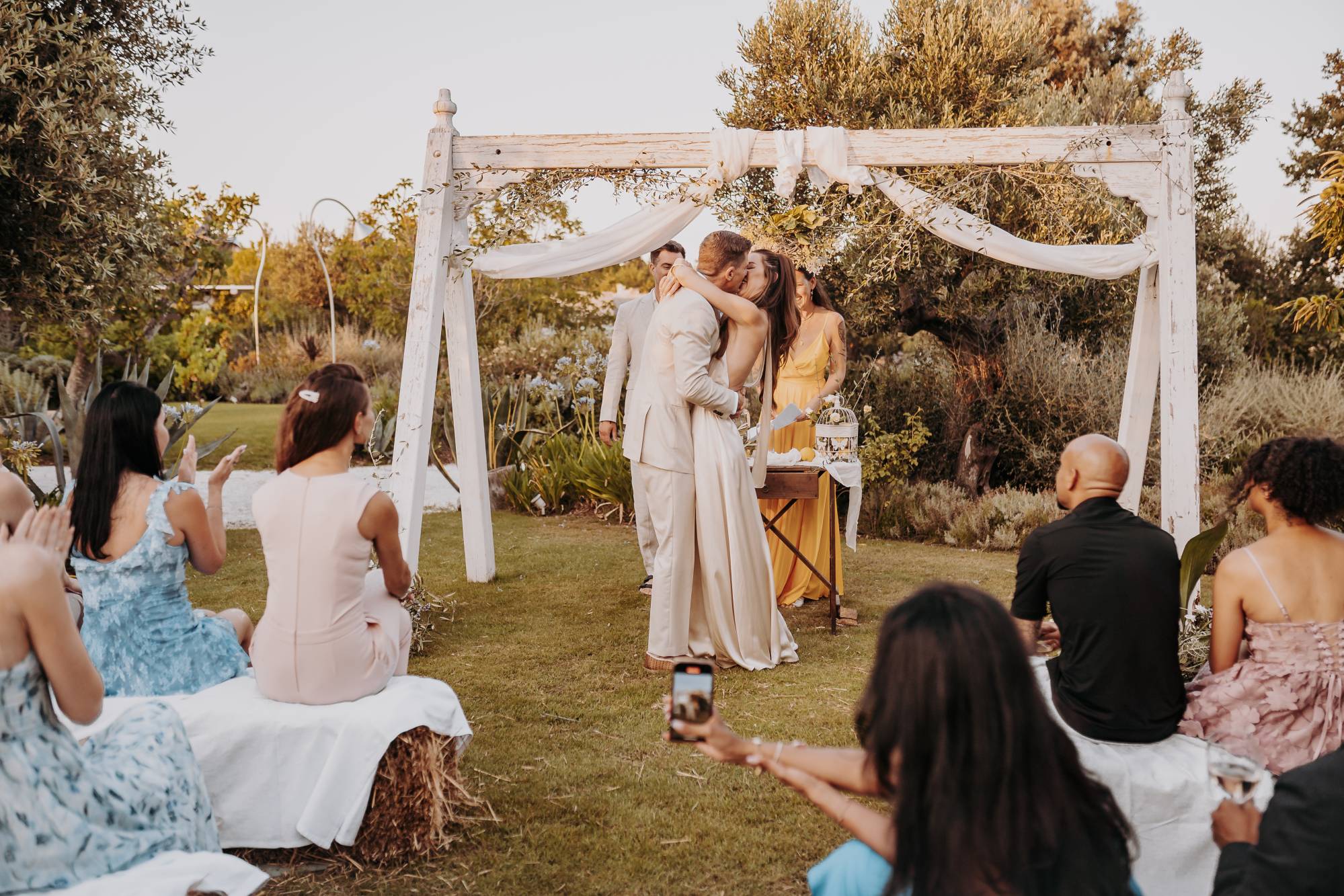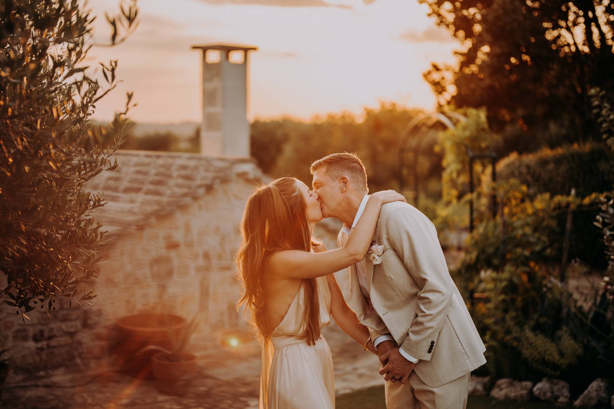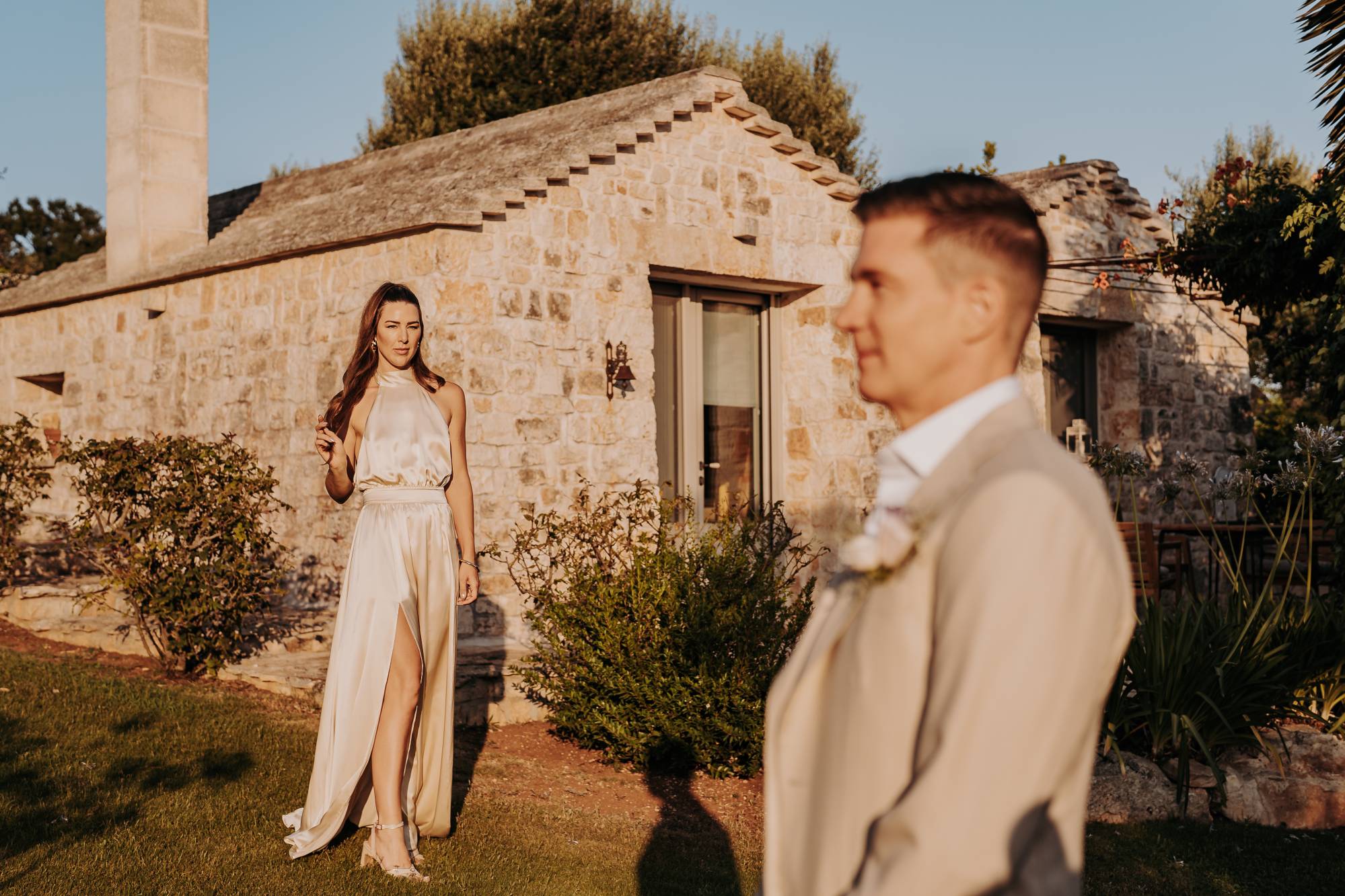 Dave e Kate, una coppia inglese con un gusto per l'eleganza e l'autenticità, hanno deciso di pronunciare i loro voti in Puglia, in particolare nella splendida Villa La Rona a Cisternino, incastonata nel cuore della Valle D'Itria. Hanno optato per un matrimonio intimo con solo 30 dei loro familiari e amici più cari, qualcosa che è diventato una tendenza popolare, soprattutto tra le coppie straniere che cercano una piccola location per le nozze in Italia che offra sia fascino che esclusività.