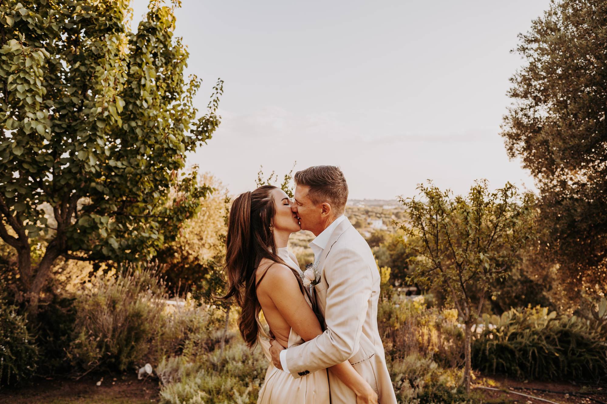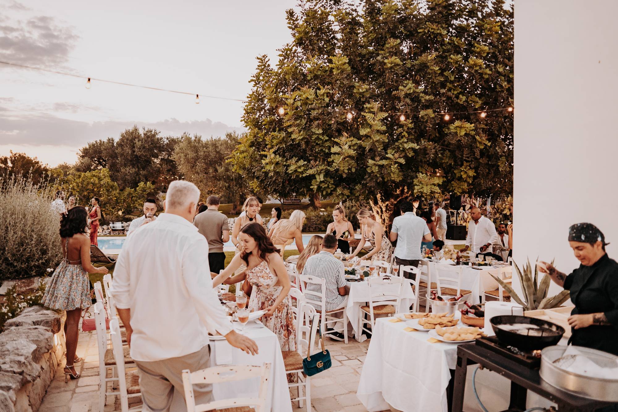 Dopo la cerimonia, Dave e Kate si sono presi del tempo per una sessione fotografica di coppia a Villa La Rona. L'eleganza senza tempo della villa è stata lo sfondo perfetto per catturare la gioia e l'eccitazione degli sposi. Poi, i festeggiamenti sono proseguiti con un autentico banchetto pugliese. Naturalmente, i panzerotti hanno fatto la loro comparsa e non hanno deluso le aspettative! La coppia e i loro ospiti si sono goduti una serata rilassata di risate, cibo locale e brindisi sentiti.