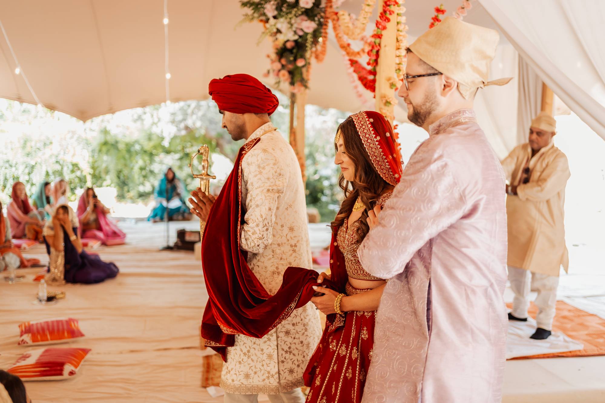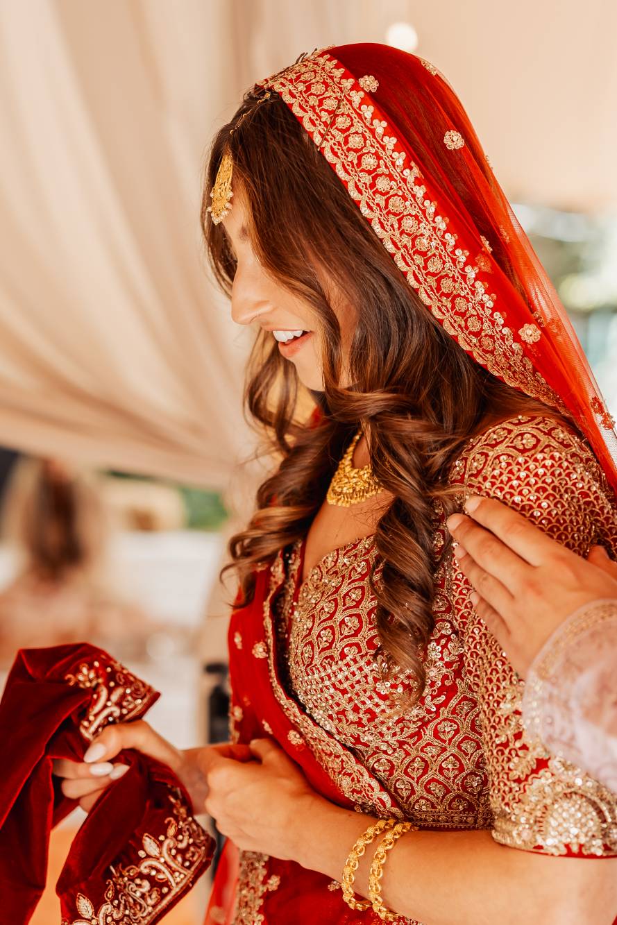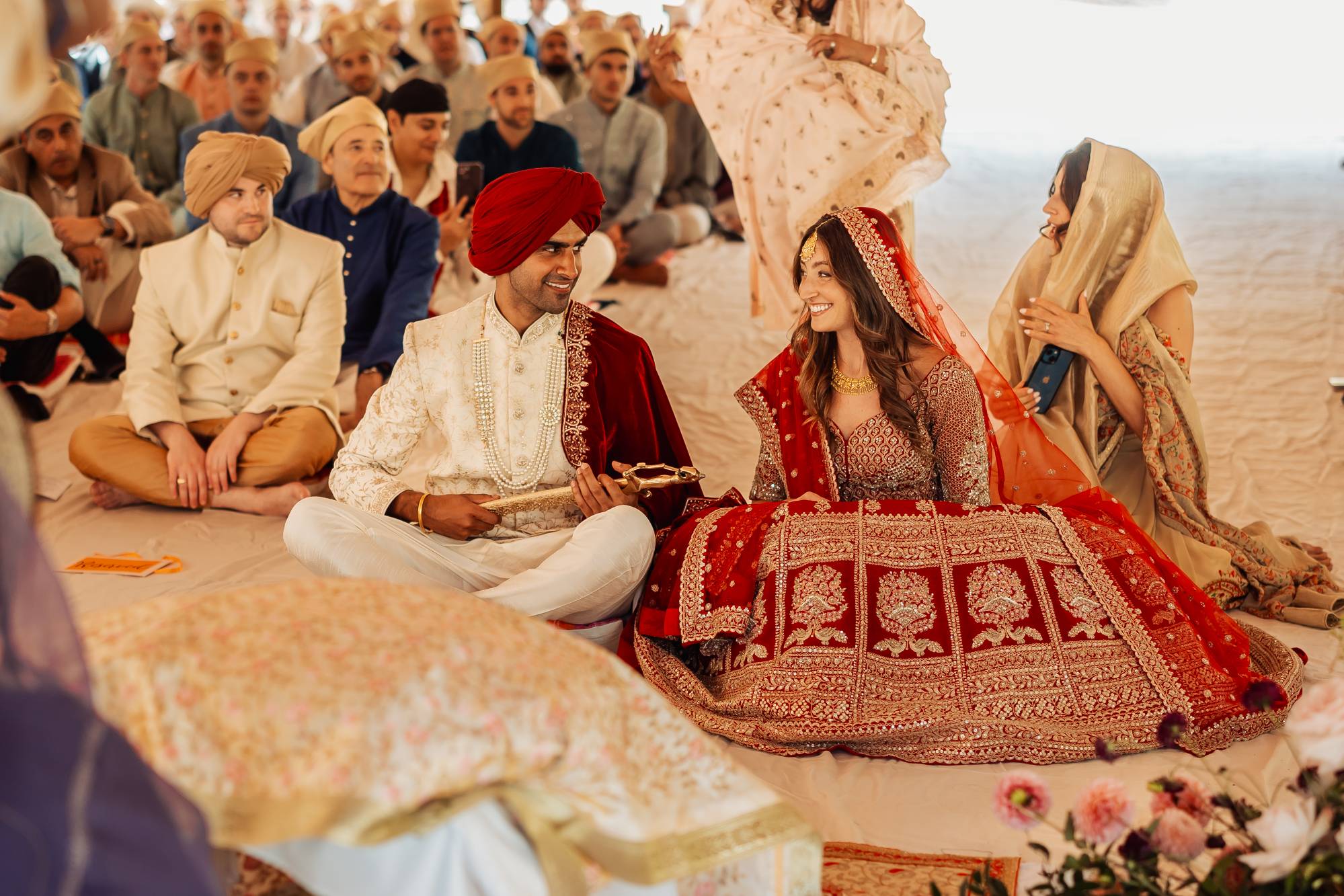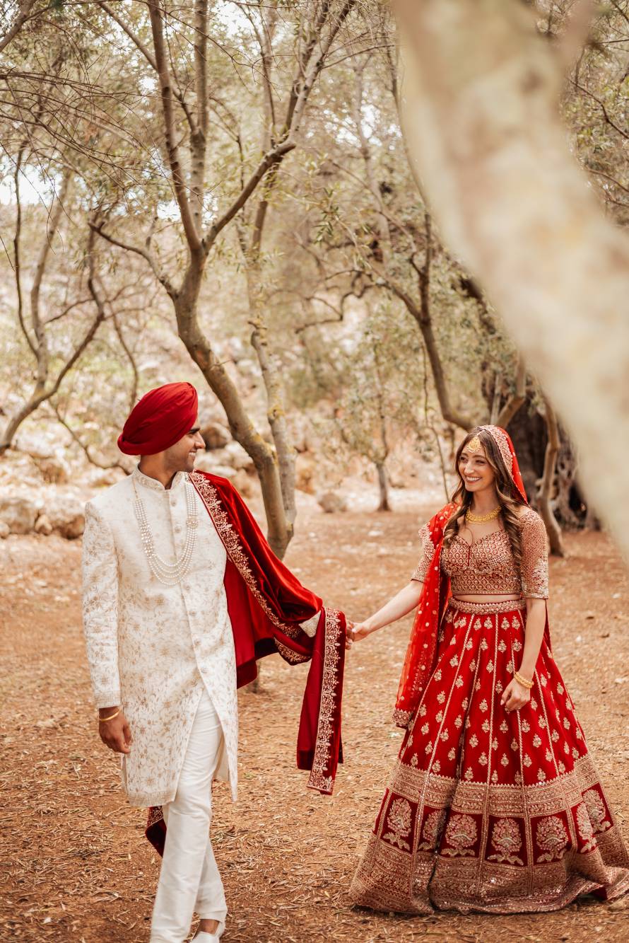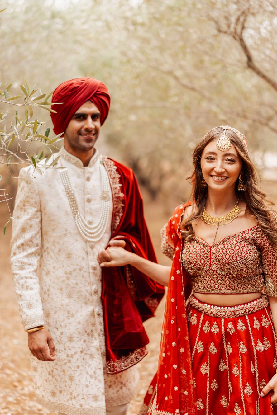 Per il loro matrimonio, Sameer e Lucy hanno abbracciato i colori e le tradizioni dell'India in una cerimonia indiana simbolica che rifletteva la ricchezza del patrimonio di Sameer.