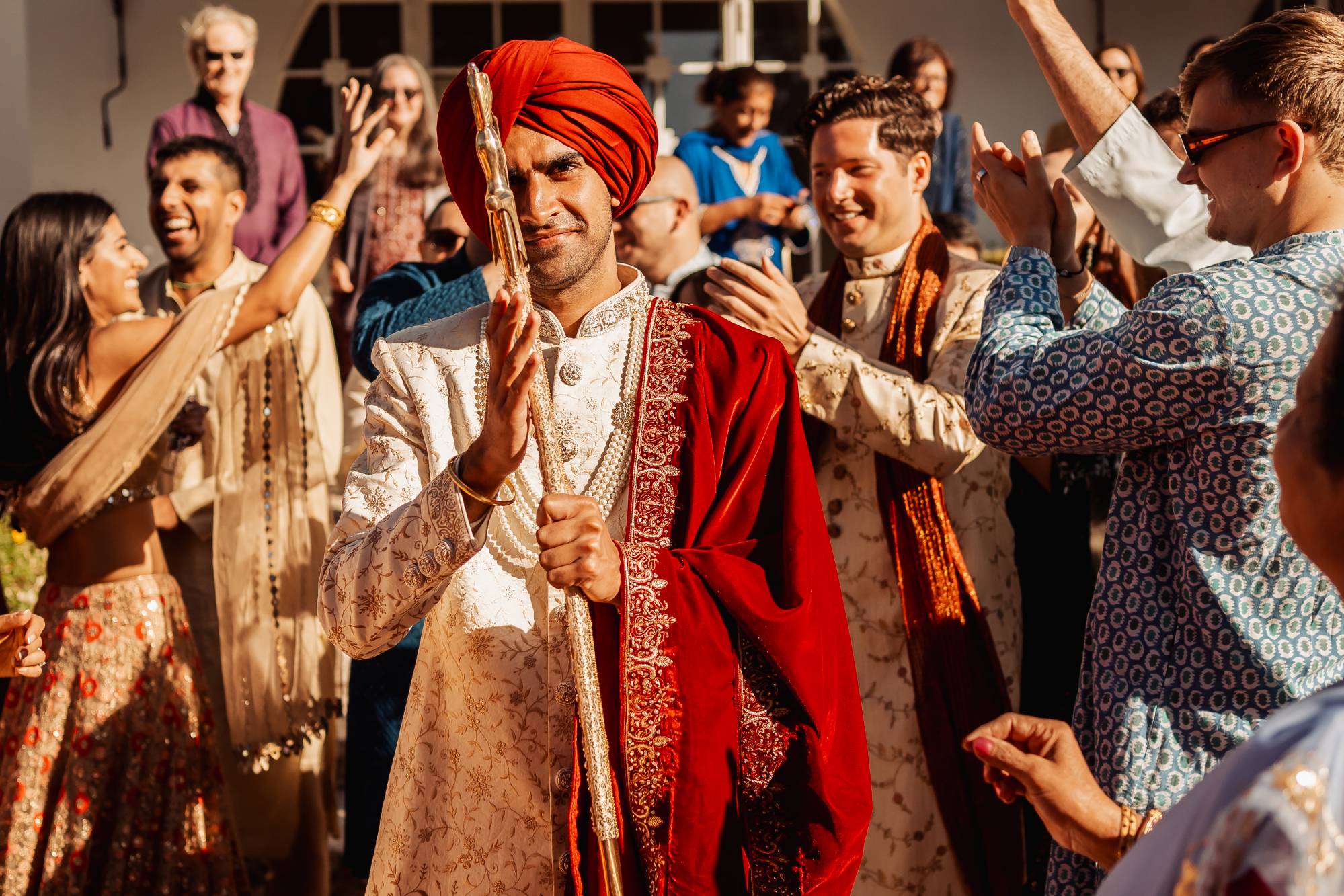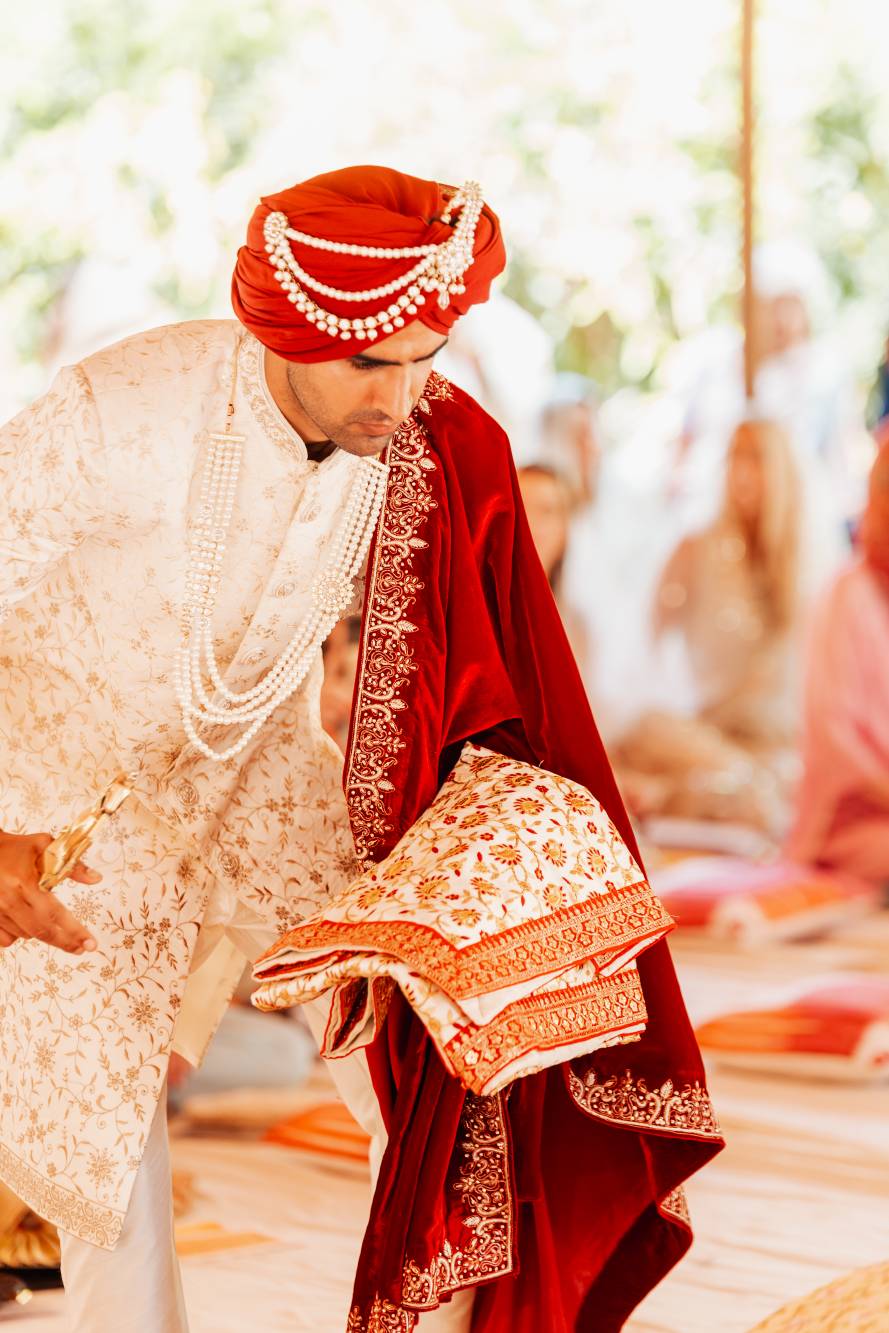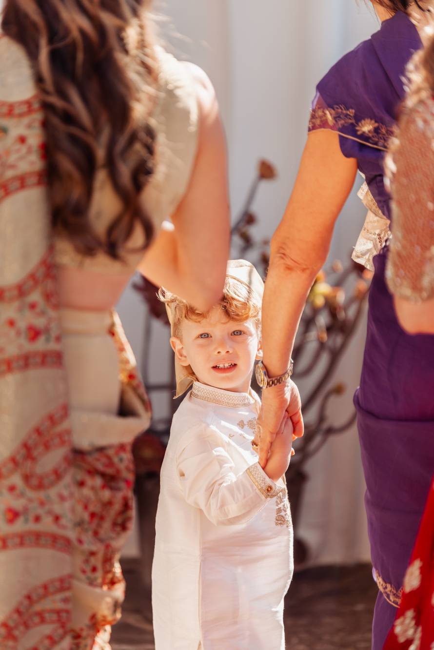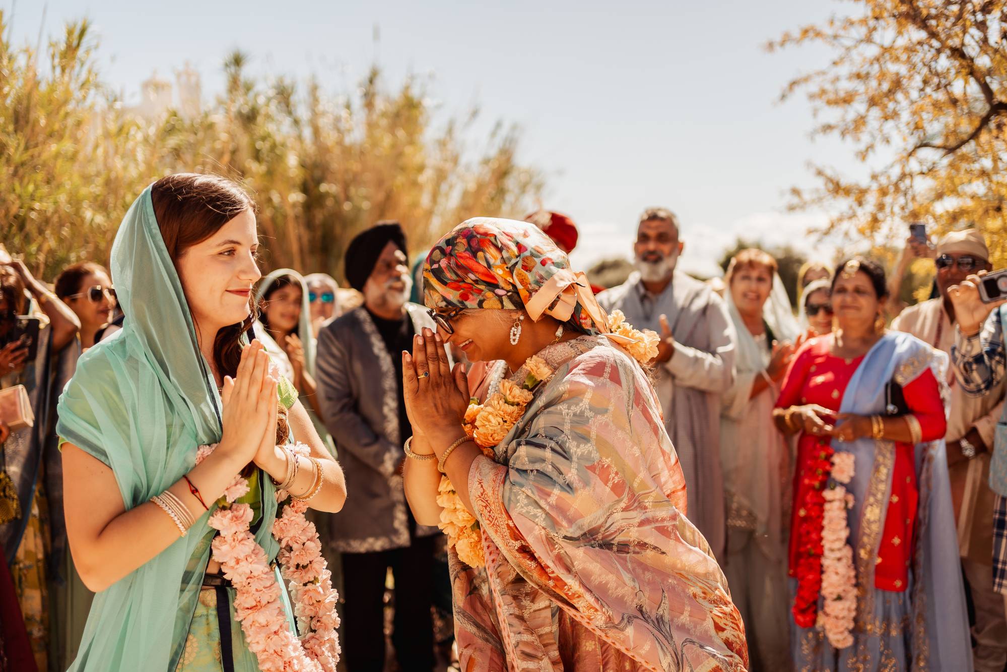 Per il loro matrimonio, Sameer e Lucy hanno abbracciato i colori e le tradizioni dell'India in una cerimonia indiana simbolica che rifletteva la ricchezza del patrimonio di Sameer.
