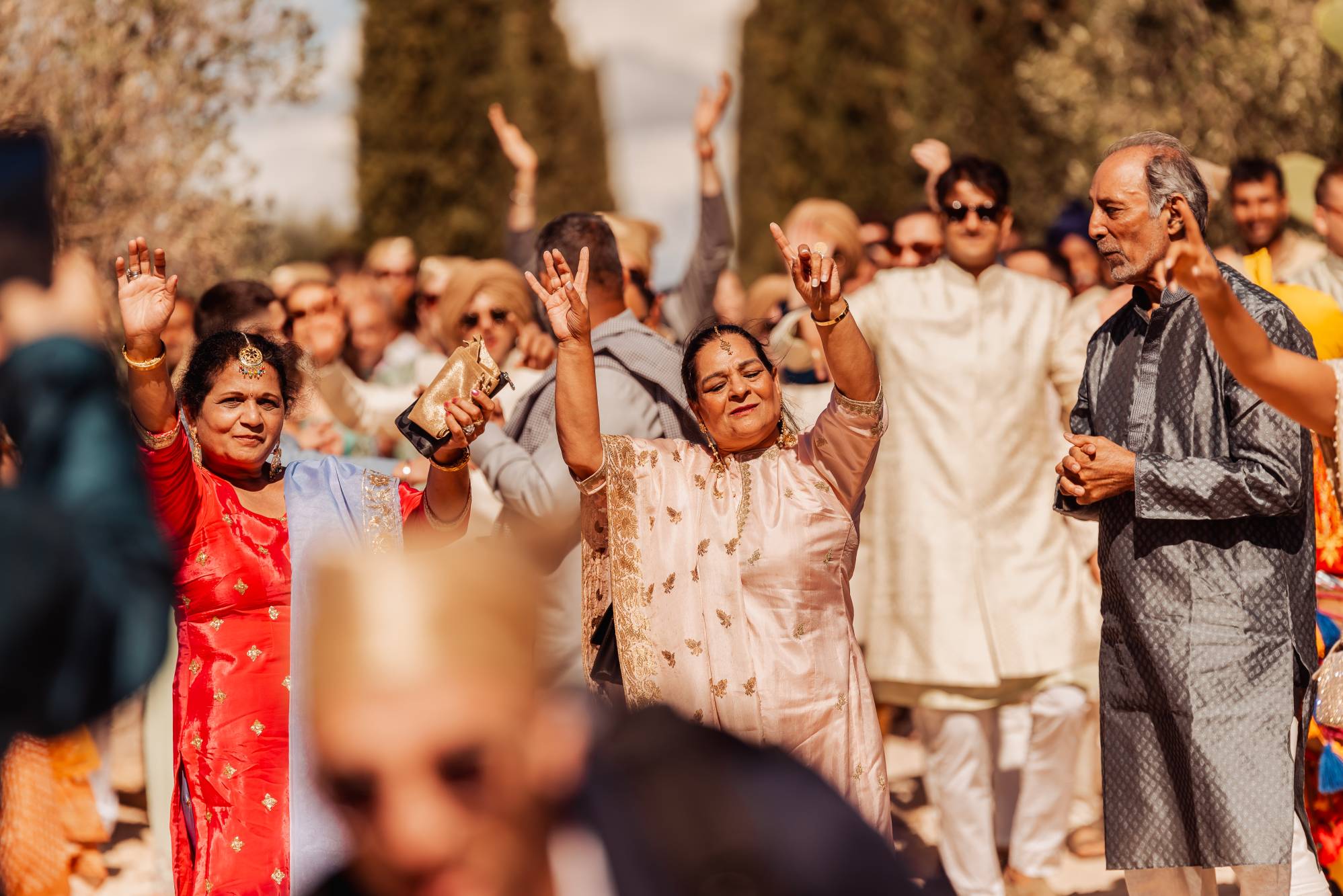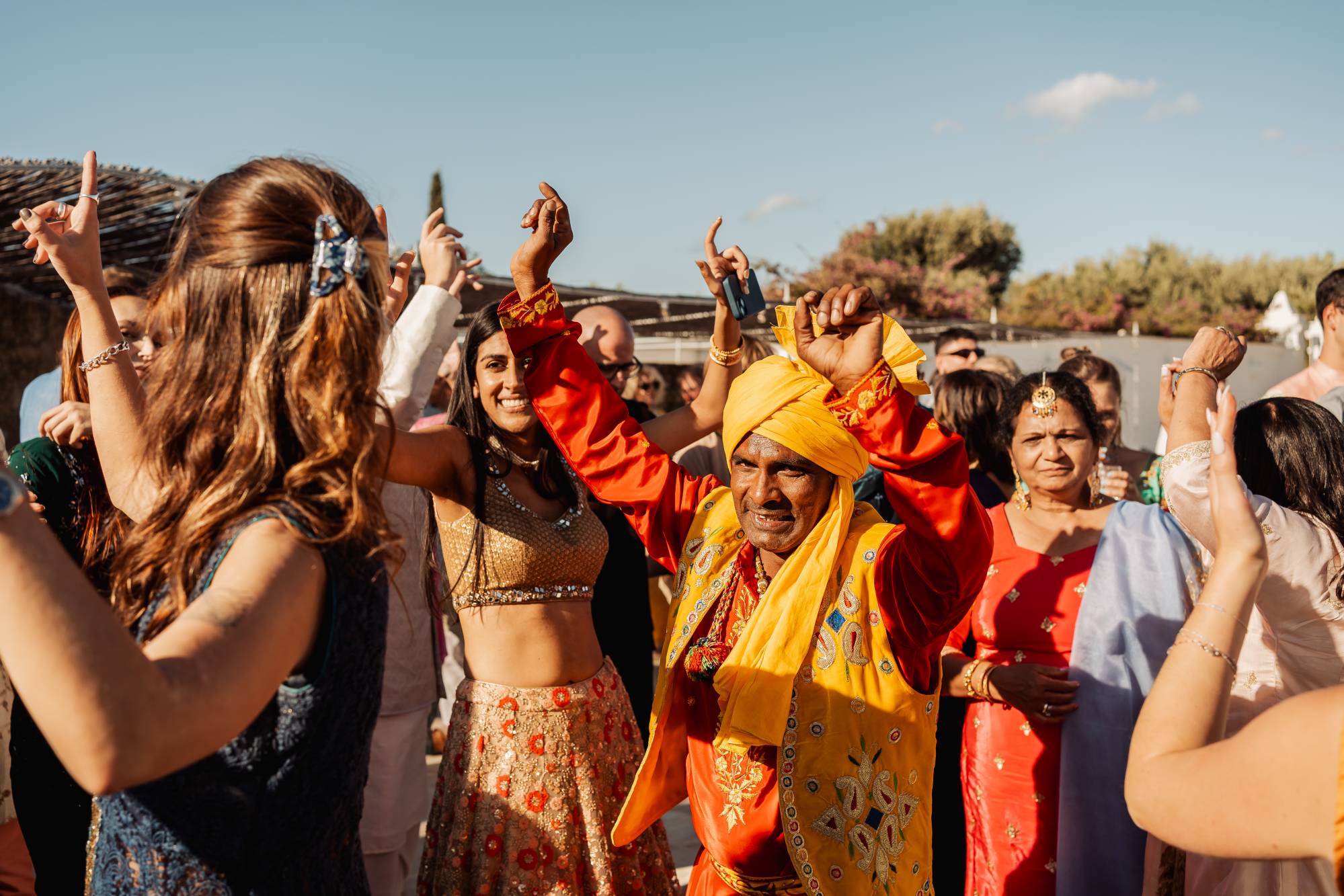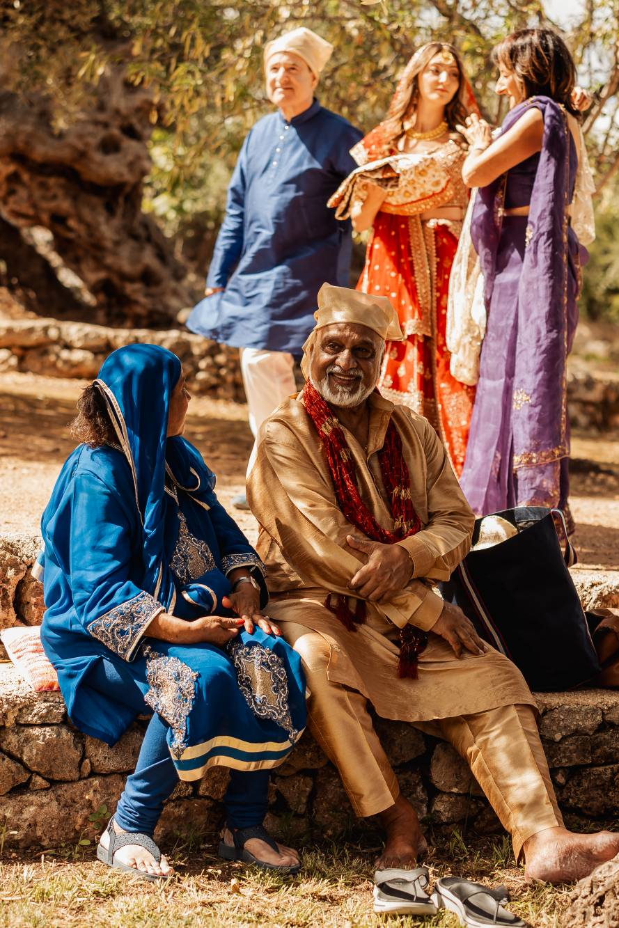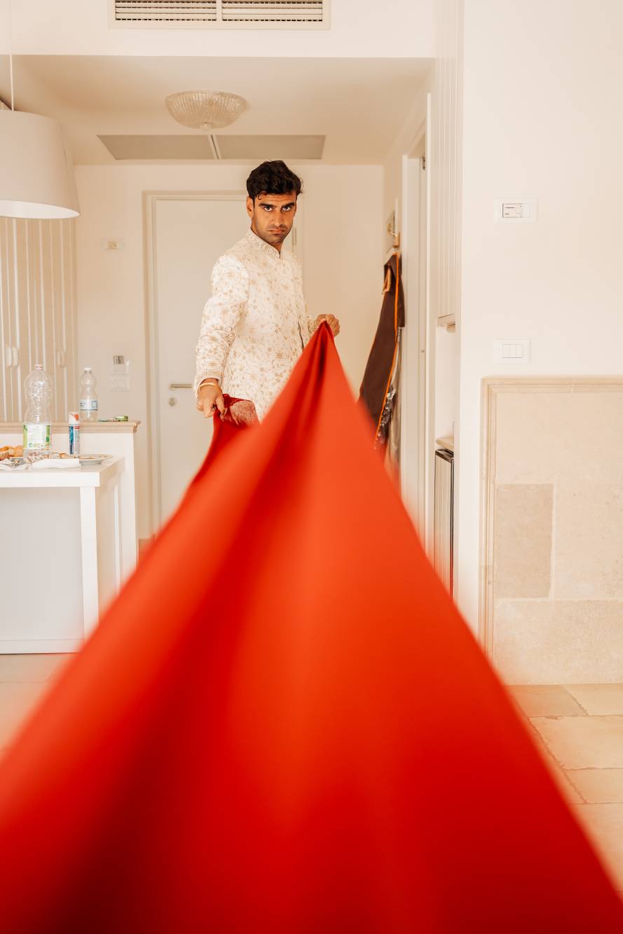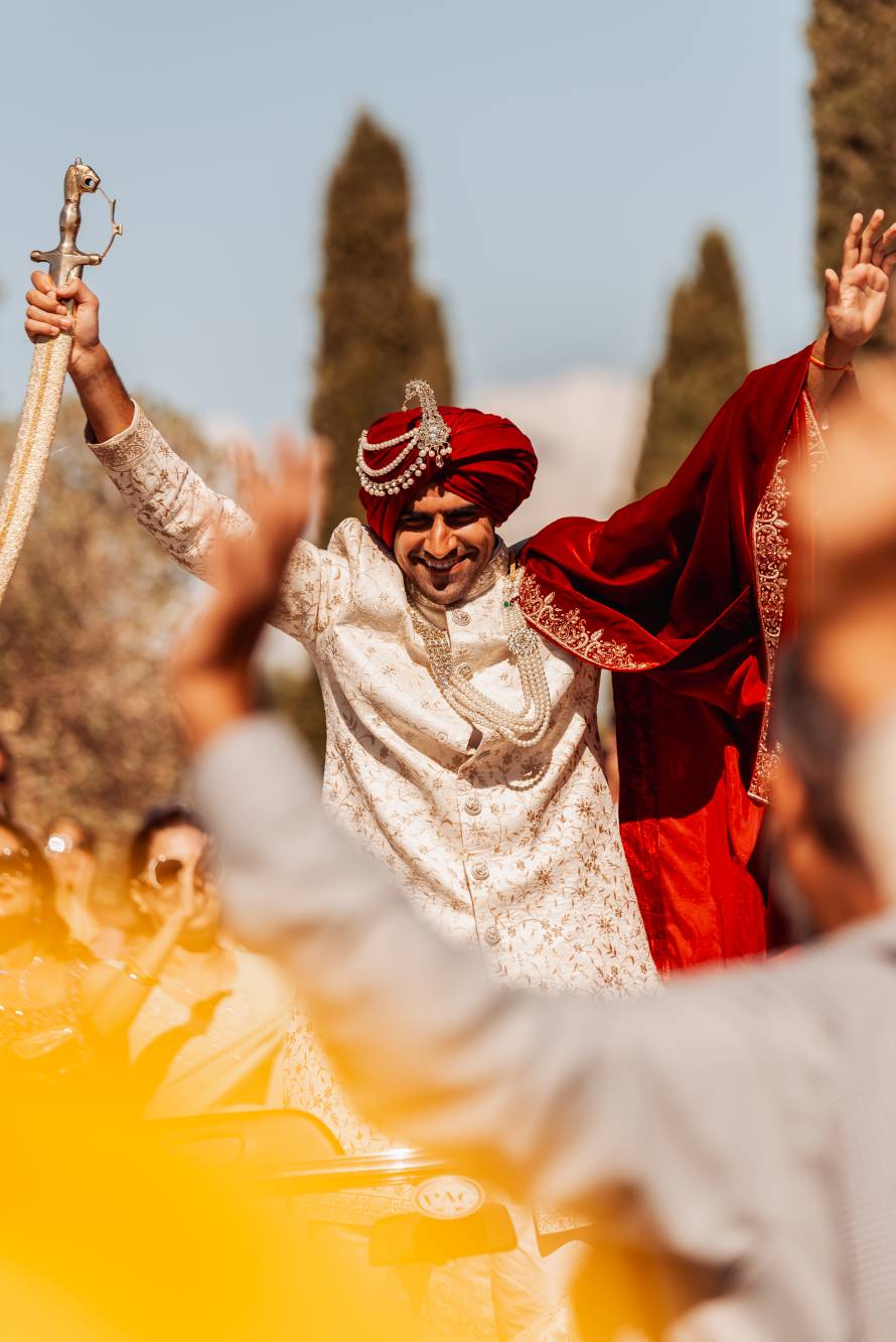 Dopo la cerimonia, abbiamo catturato alcuni scatti mozzafiato intorno all'affascinante Masseria Alchimia, con le sue mura rustiche e i rigogliosi ulivi che creavano la scena perfetta. Mentre la sera si trasformava in notte, i festeggiamenti sono diventati ancora più vivaci, con amici e parenti che si sono uniti per ballare, banchettare e godersi le usanze tradizionali della cultura indiana. L'atmosfera gioiosa era piena di musica, risate e momenti sentiti, che si sono protratti fino a tarda notte sotto le stelle.
