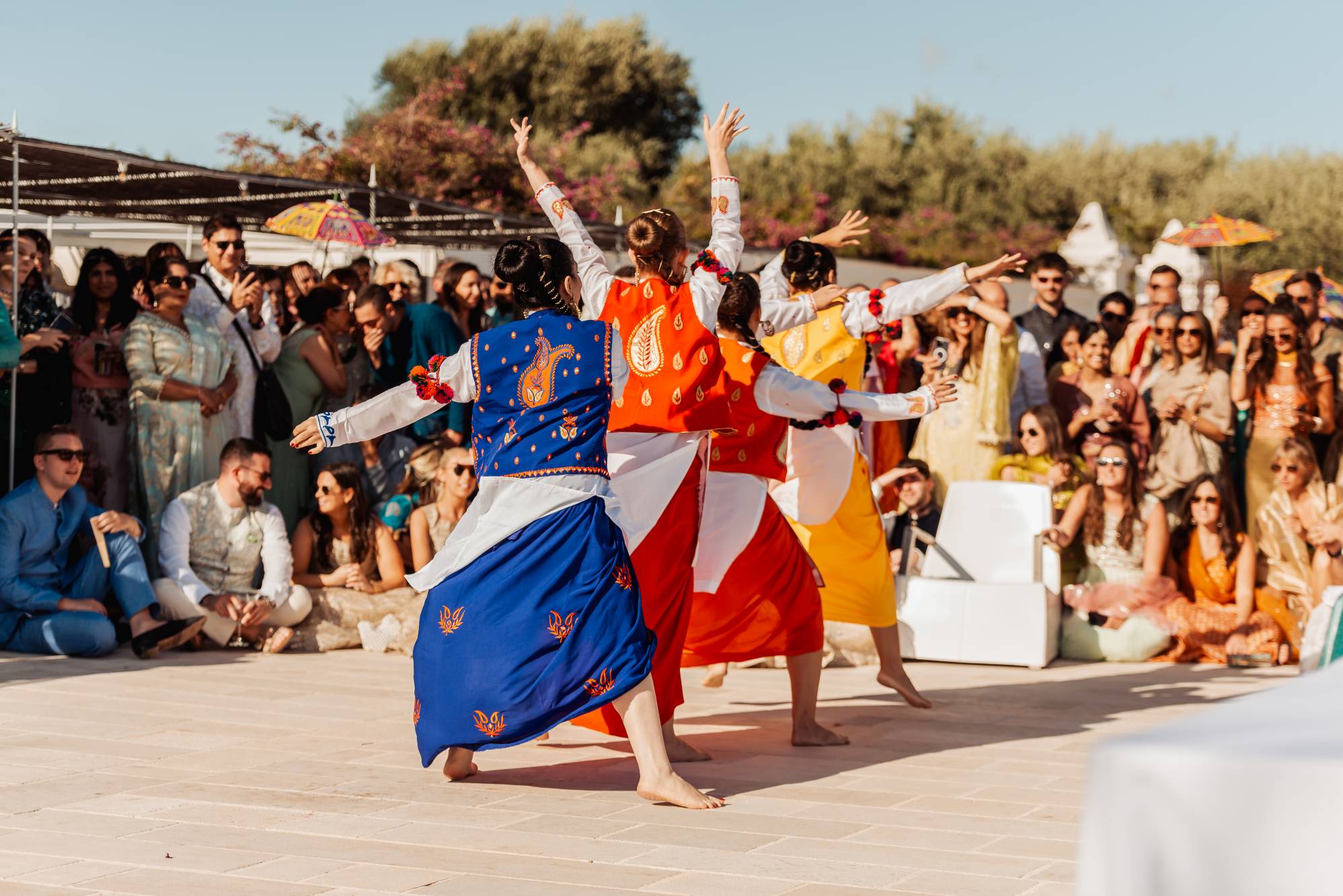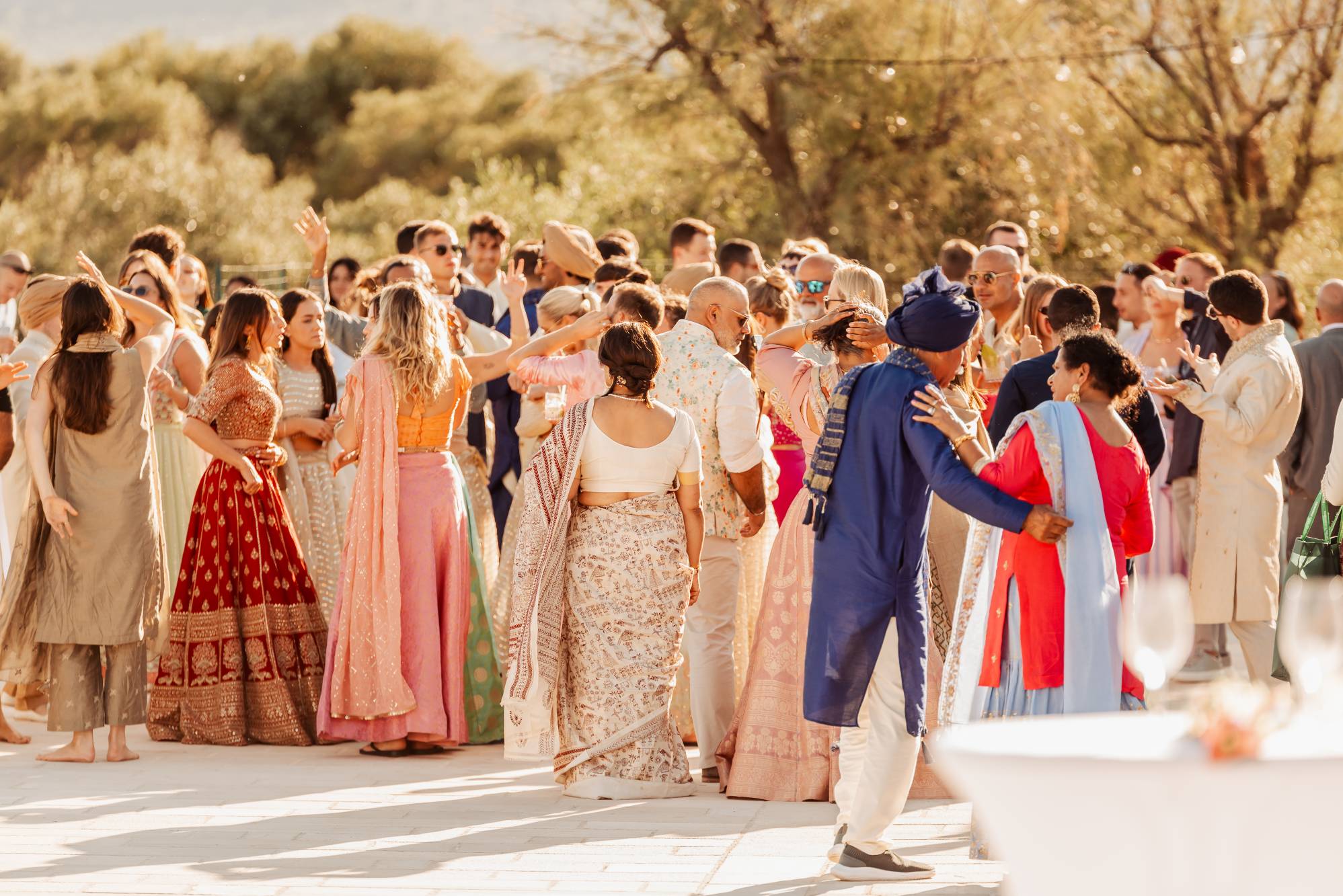 La serata è stata un perfetto mix di risate, balli e legami sentiti mentre gli ospiti celebravano sia l'amore di Sameer che quello di Lucy e la ricchezza del loro comune patrimonio culturale. I tavoli erano adornati con fiori vivaci e musica tradizionale indiana intrecciata con melodie italiane, creando una bellissima colonna sonora per la serata. Dalla colorata cerimonia del mehendi ai profumati e autentici piatti indiani, ogni dettaglio è stato realizzato per onorare le loro tradizioni e al contempo abbracciare la bellezza dell'Italia.