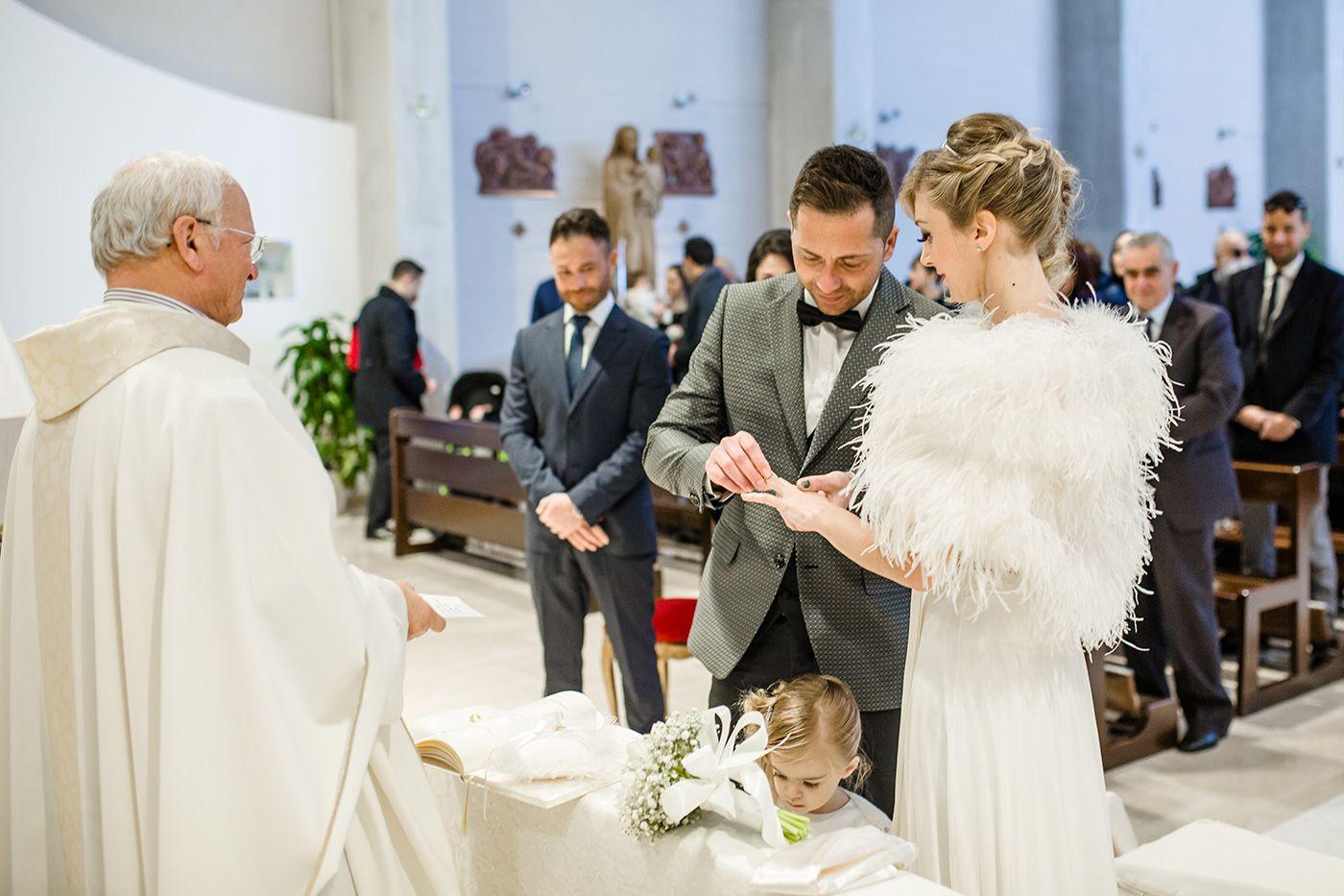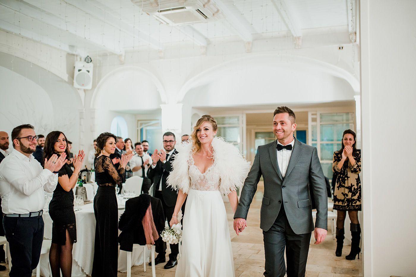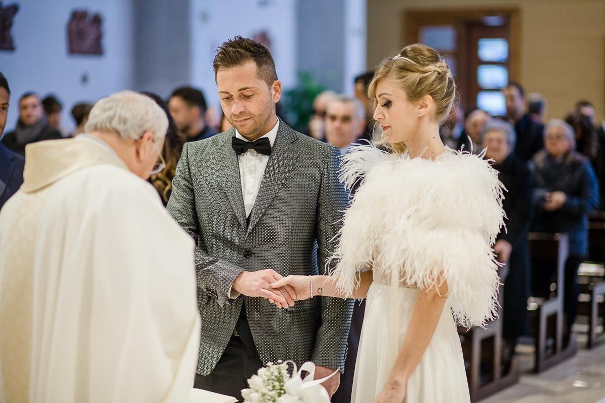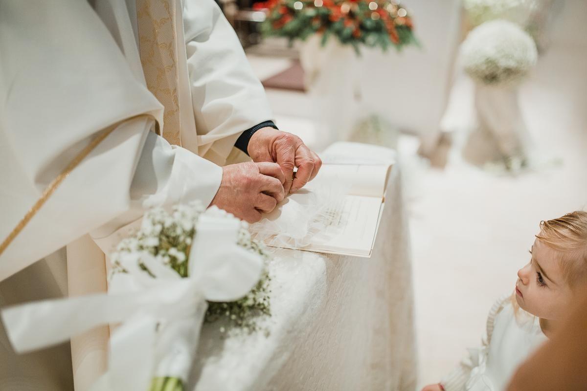 Il matrimonio di Arianna ed Alessandro è stato incredibilmente suggestivo non solo per il periodo in cui hanno deciso di celebrare la cerimonia, ma anche per la meravigliosa location che ha ospitato il rito religioso, la Chiesa di San Luigi Gonzaga. È una delle chiese più grande e luminosi di Ostuni Città Bianca e, per l’occasione, la coppia ha deciso di adornarla con meravigliosi fiori bianchi, intervallati dalle immancabili Stelle di Natale, disposte tutto lungo il corridoio centrale.