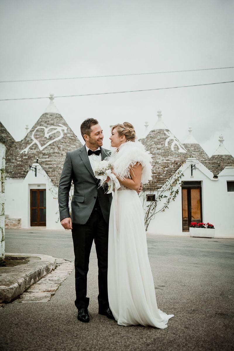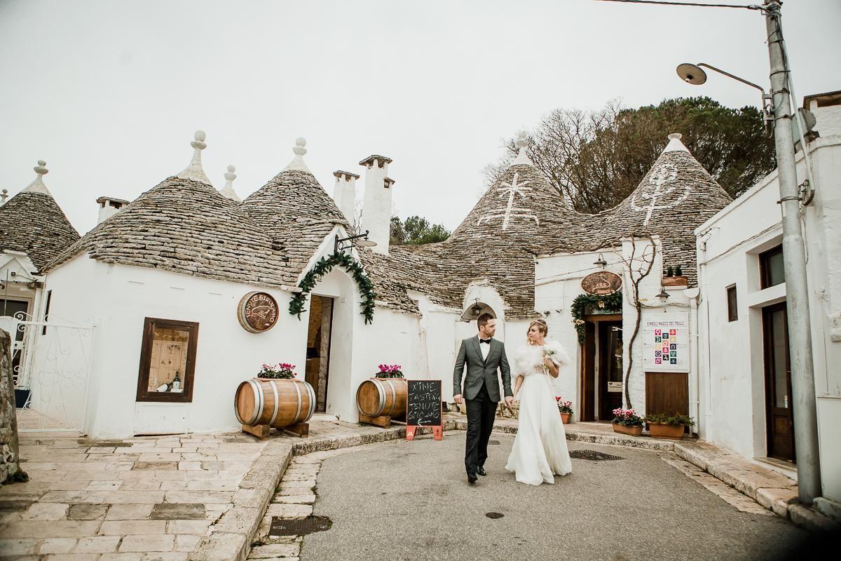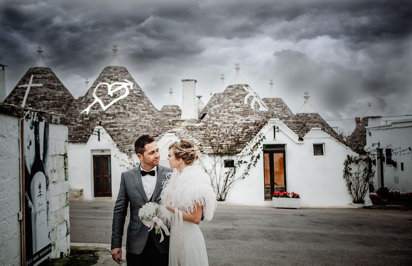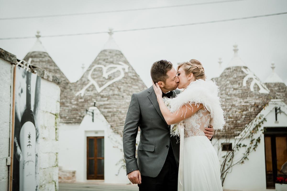 Una volta celebrata la cerimonia e lasciata la chiesa, abbiamo deciso di scattare il servizio fotografico all’aperto, tra i vicoli caratteristici del centro storico di Ostuni, e poi anche nel cuore della piccola città di Alberobello, nota in tutto il mondo per i suoi particolarissimi Trulli. E qui, un po’ per caso e un po’ perché lo abbiamo ricercato, è avvenuta una vera e propria magia.