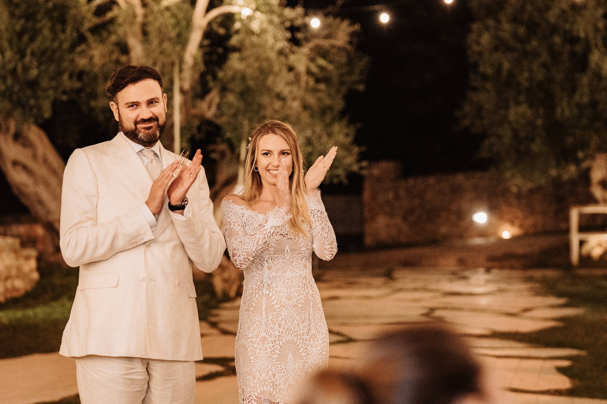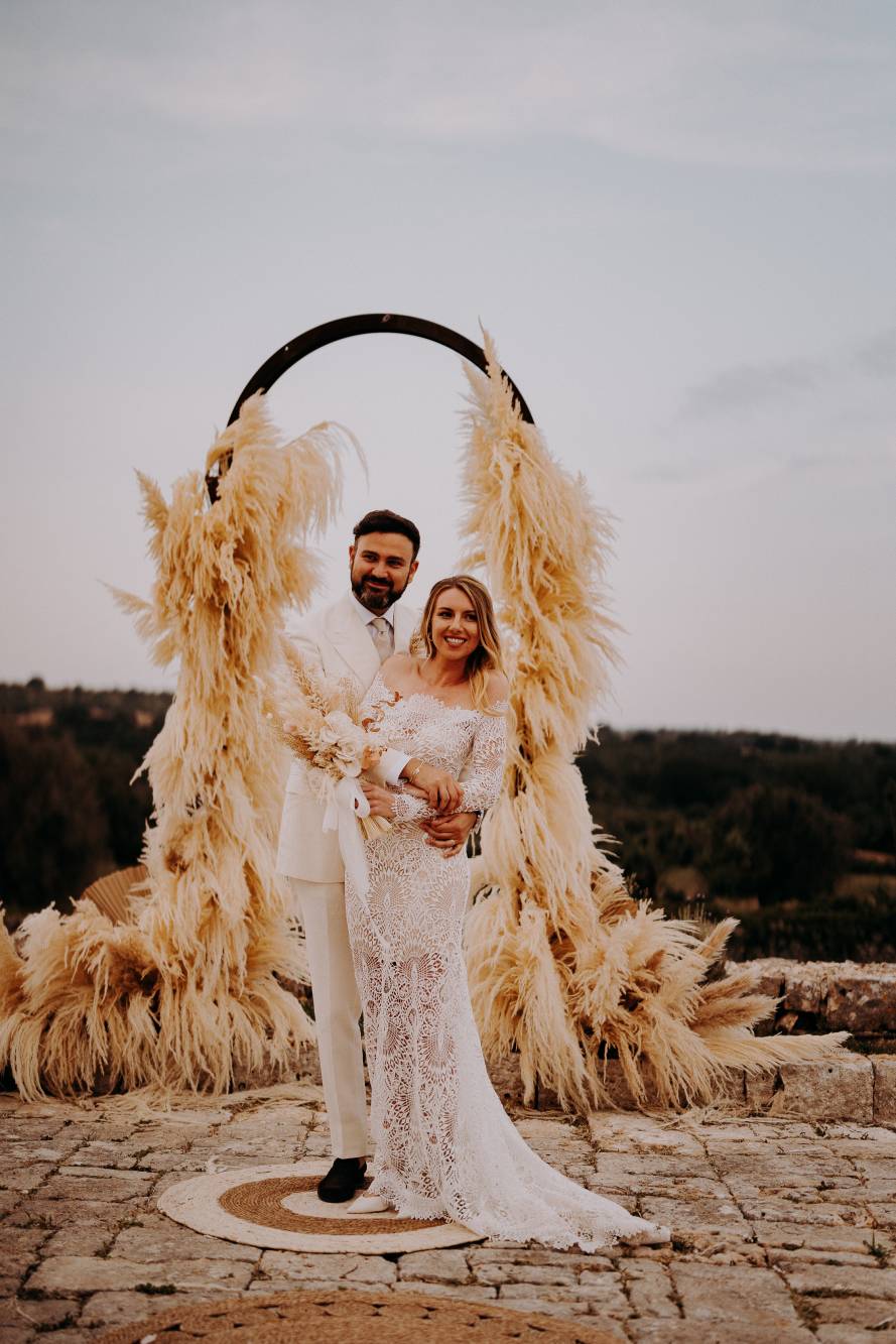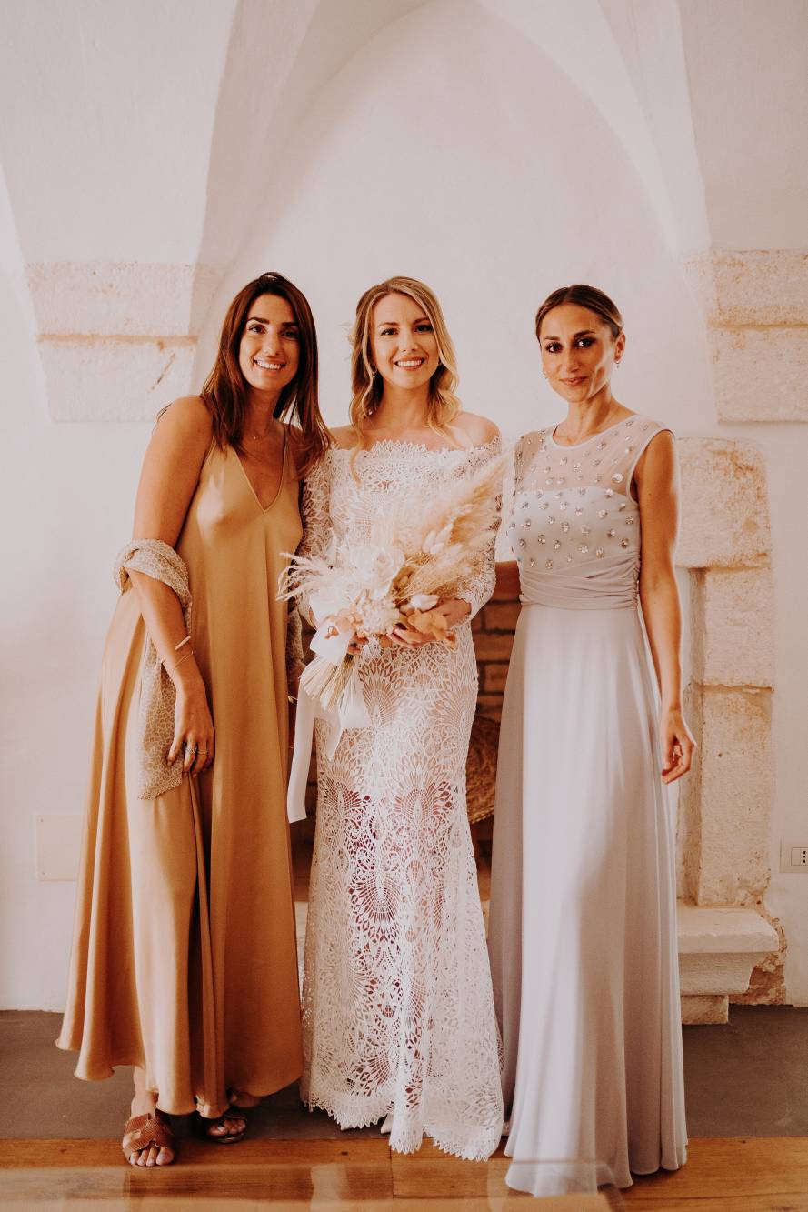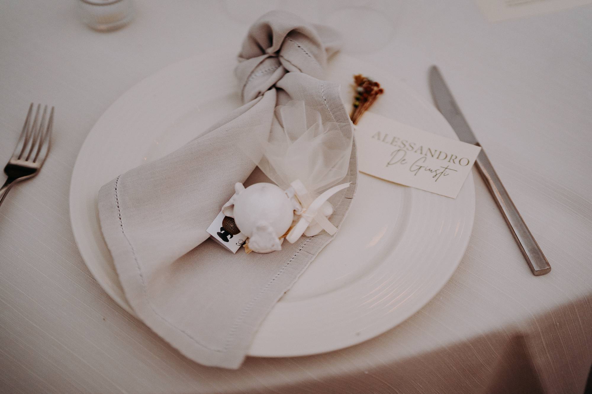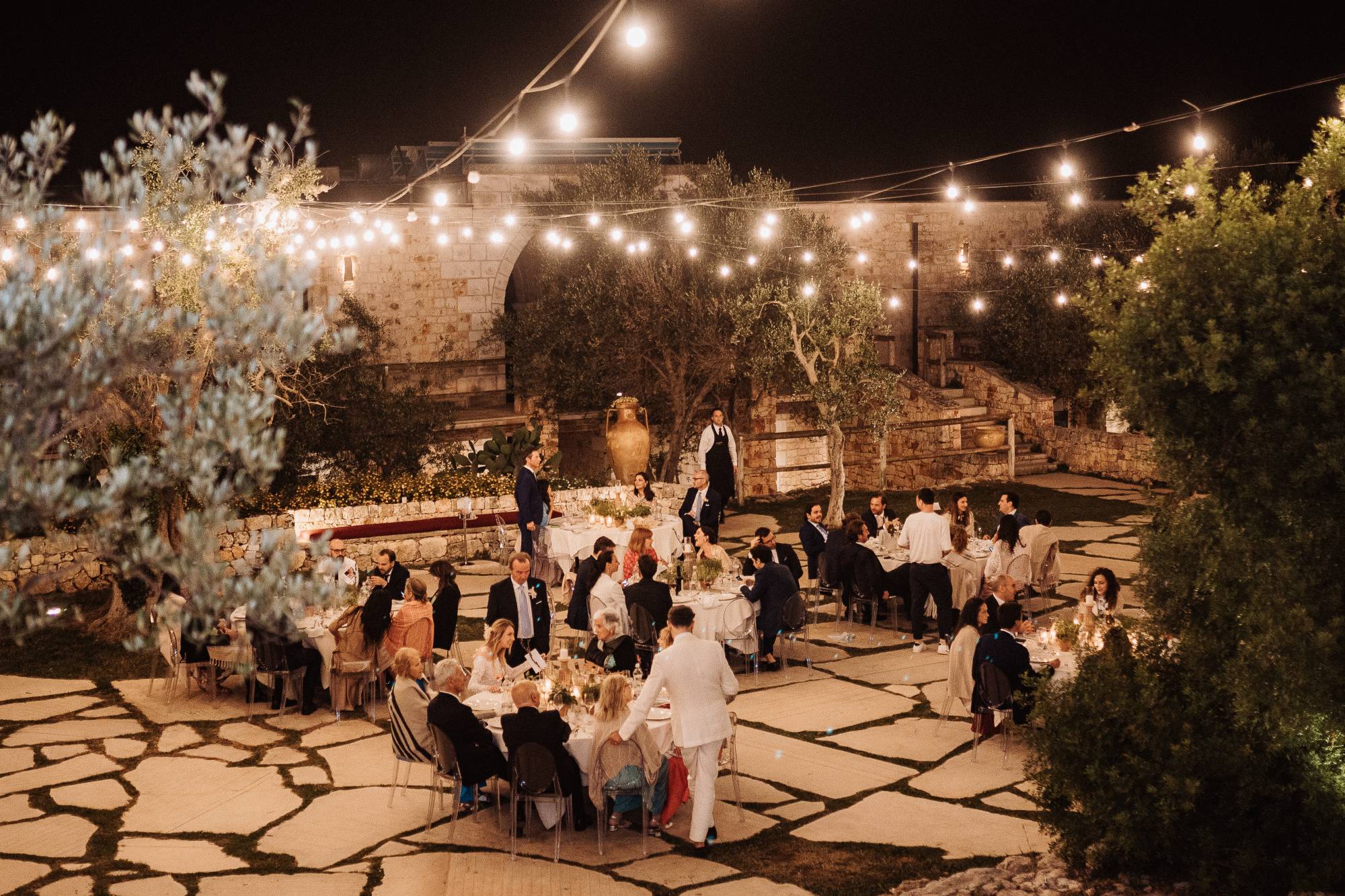 La cerimonia civile si è svolta in un angolo riservato dei rigogliosi giardini della Masseria. Circondati dai loro amici e familiari più cari, Ettore ed Elena si sono scambiati voti pieni di sentimento sotto il caldo sole italiano. L’ambientazione era tanto intima quanto suggestiva, con il leggero fruscio degli ulivi a fare da colonna sonora naturale.