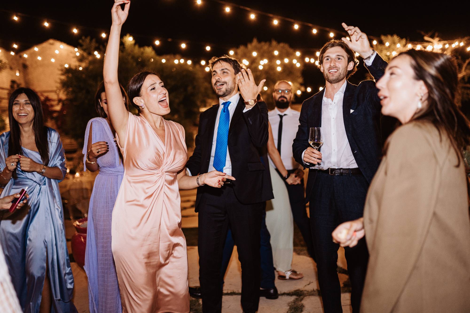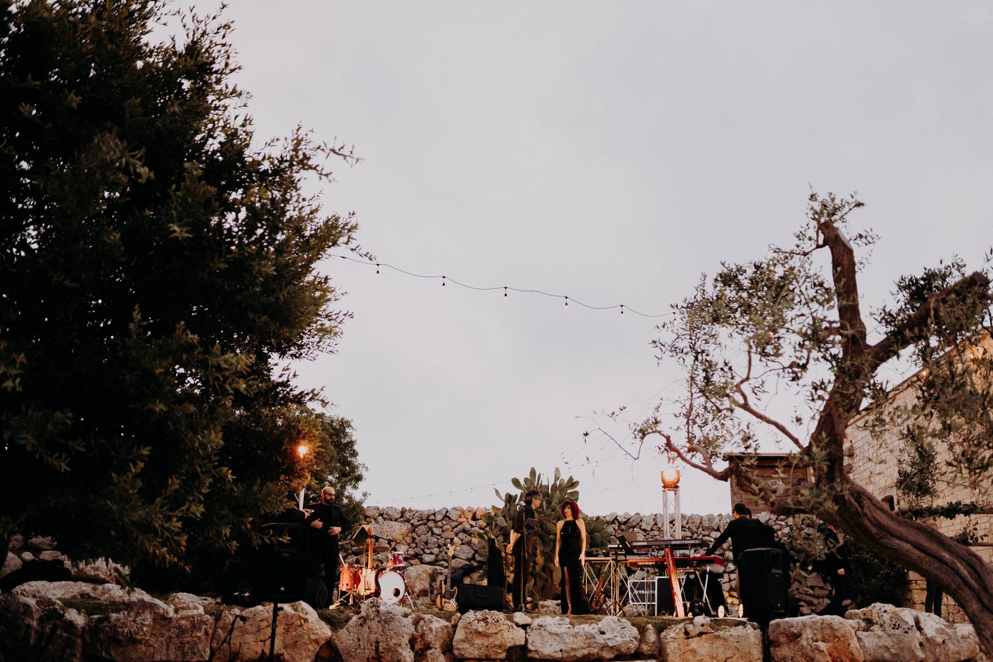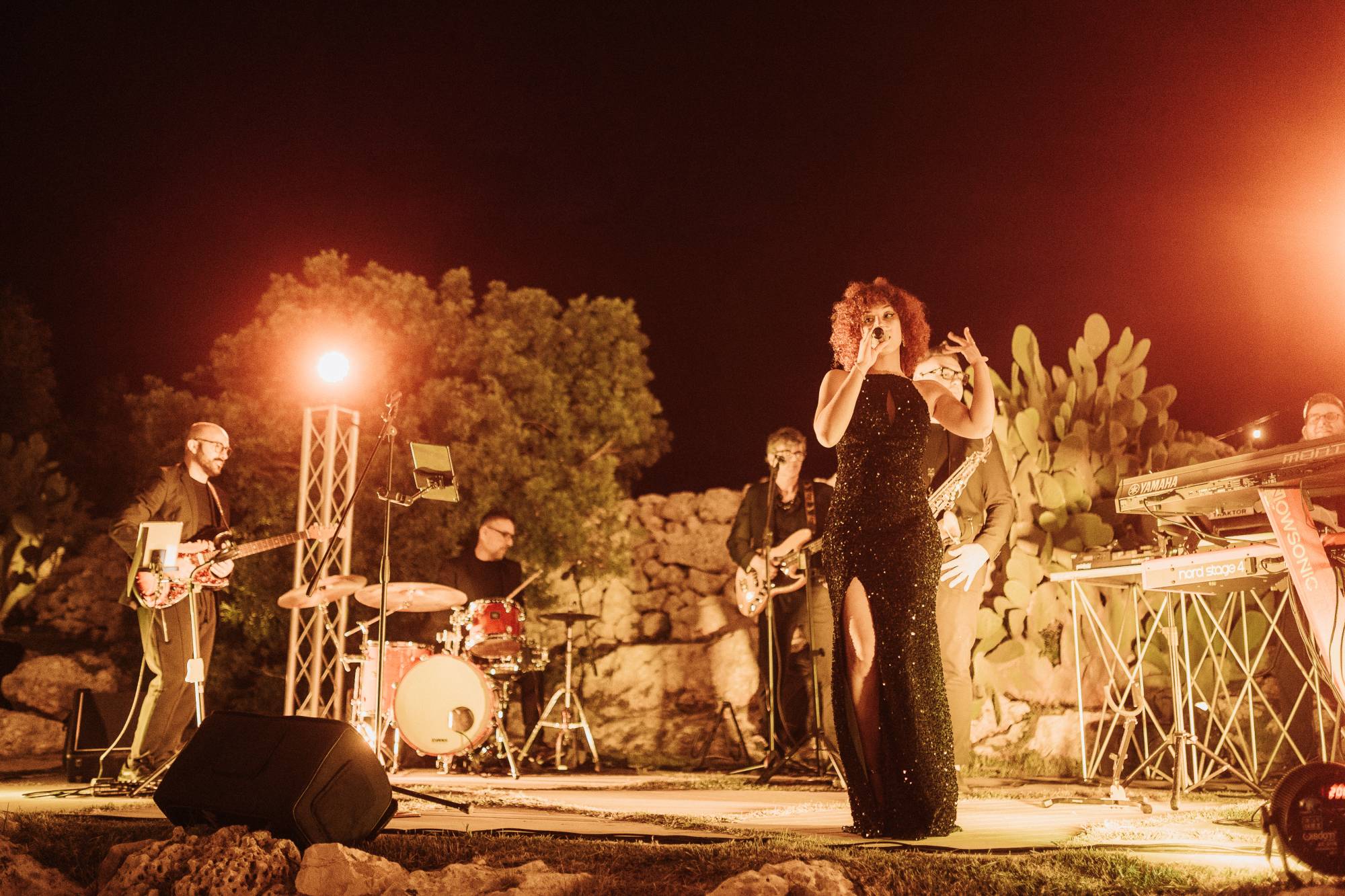 La musica dal vivo ha accompagnato l’intera serata, passando da melodie acustiche delicate durante la cena a ritmi vivaci che hanno fatto ballare tutti. Il primo ballo della coppia sotto le stelle è stato un momento di pura magia, il loro amore brillava mentre si muovevano al ritmo della musica. Con il passare delle ore, l’energia è cresciuta, e la pista da ballo si è animata di risate e movimenti scatenati. I festeggiamenti sono proseguiti fino a tarda notte, con ogni ospite completamente immerso nell’atmosfera gioiosa.