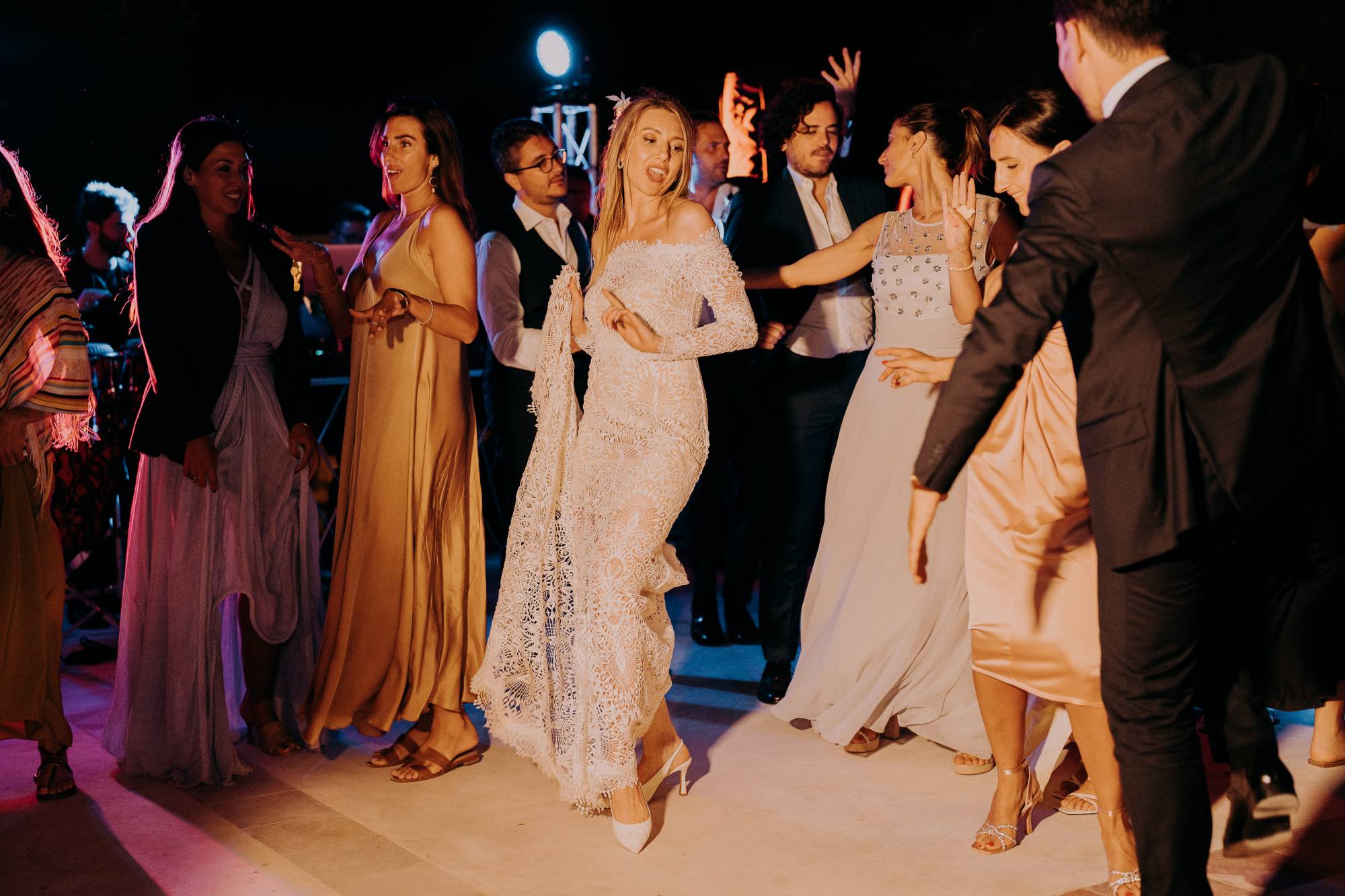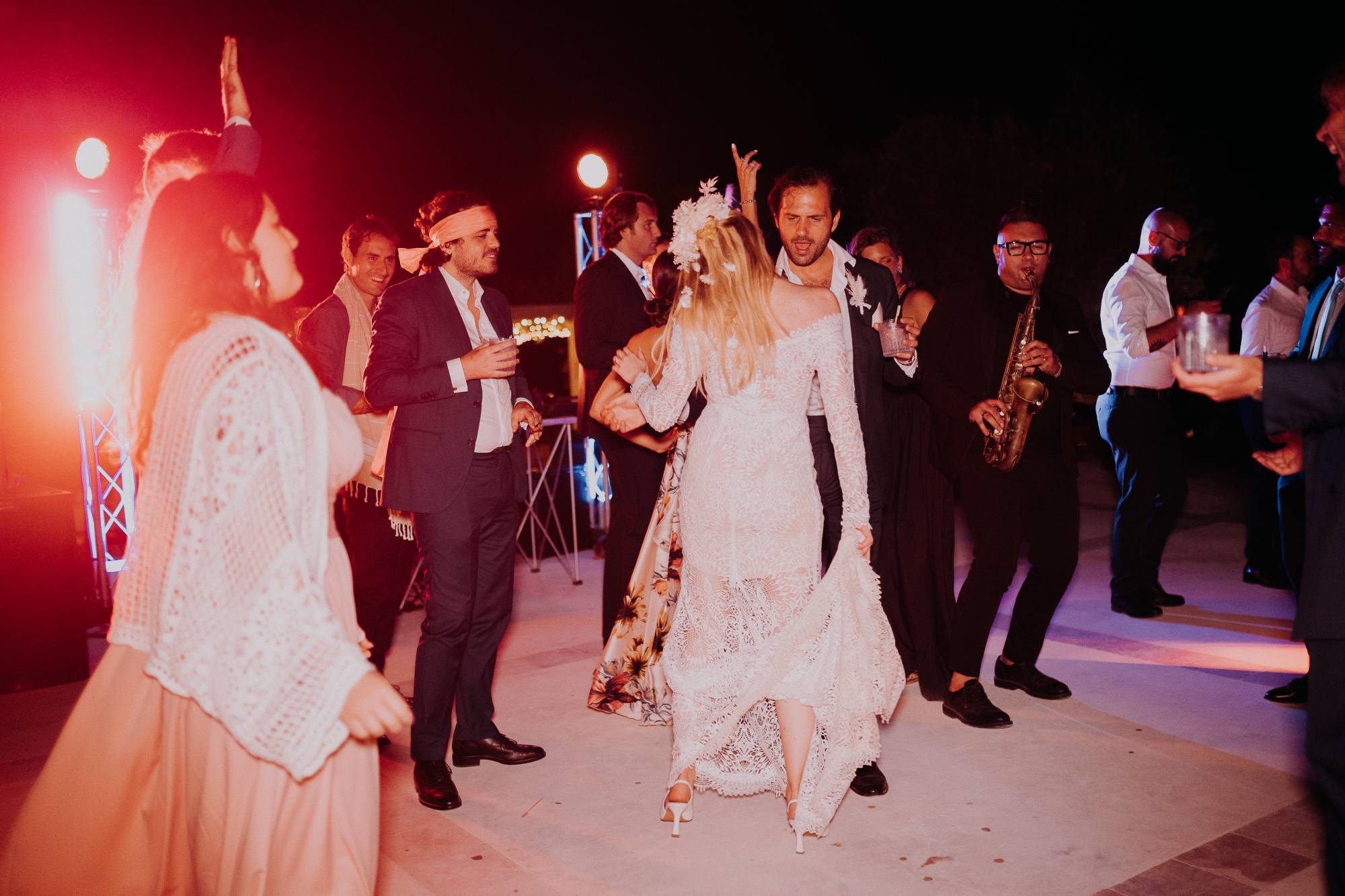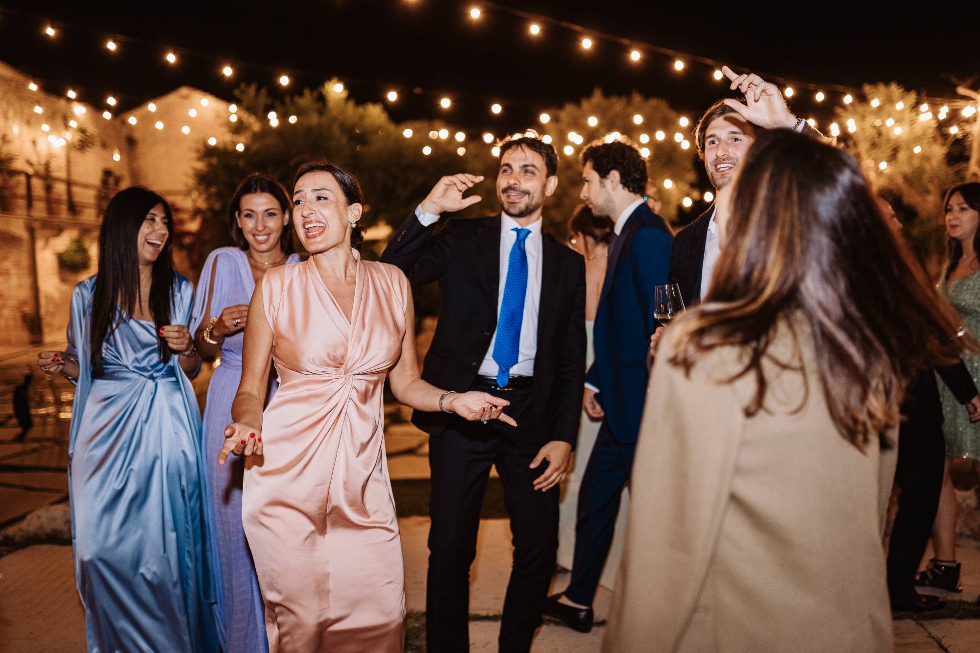 La musica dal vivo ha accompagnato l’intera serata, passando da melodie acustiche delicate durante la cena a ritmi vivaci che hanno fatto ballare tutti. Il primo ballo della coppia sotto le stelle è stato un momento di pura magia, il loro amore brillava mentre si muovevano al ritmo della musica. Con il passare delle ore, l’energia è cresciuta, e la pista da ballo si è animata di risate e movimenti scatenati. I festeggiamenti sono proseguiti fino a tarda notte, con ogni ospite completamente immerso nell’atmosfera gioiosa.
