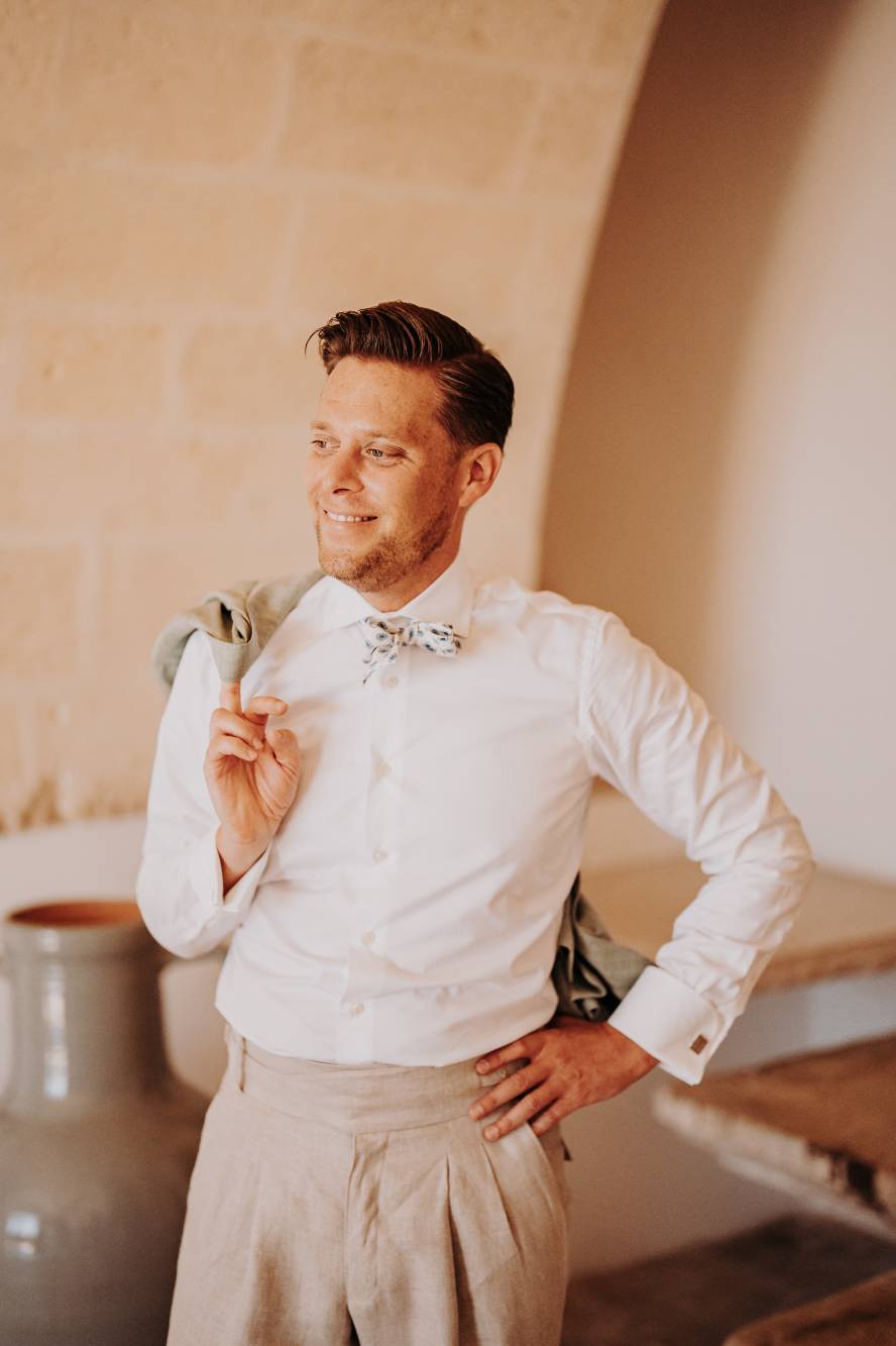 Dopo il rito simbolico, è stato il momento di immortalare ogni dettaglio di questa giornata speciale. ci siamo concessi delle fotografie romantiche tra i vigneti e all’interno della masseria stessa. Ogni angolo della struttura è stato valorizzato, catturando la bellezza dei luoghi dove Maurice e Noortje hanno deciso di celebrare il loro amore. Le foto non sono solo ricordi, ma vere e proprie opere d'arte che raccontano la magia della giornata, creando un legame indissolubile con la Puglia e con quel momento speciale.