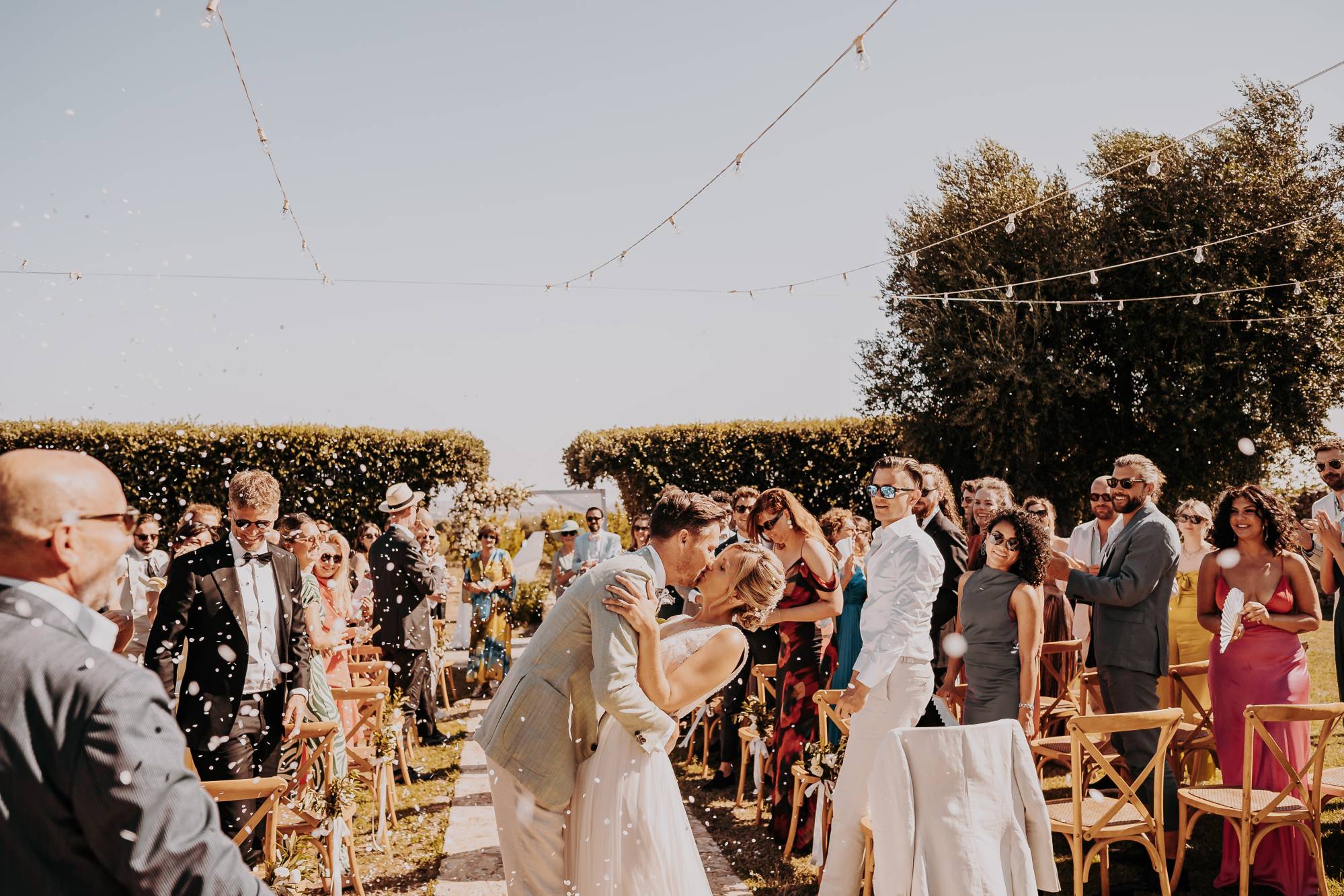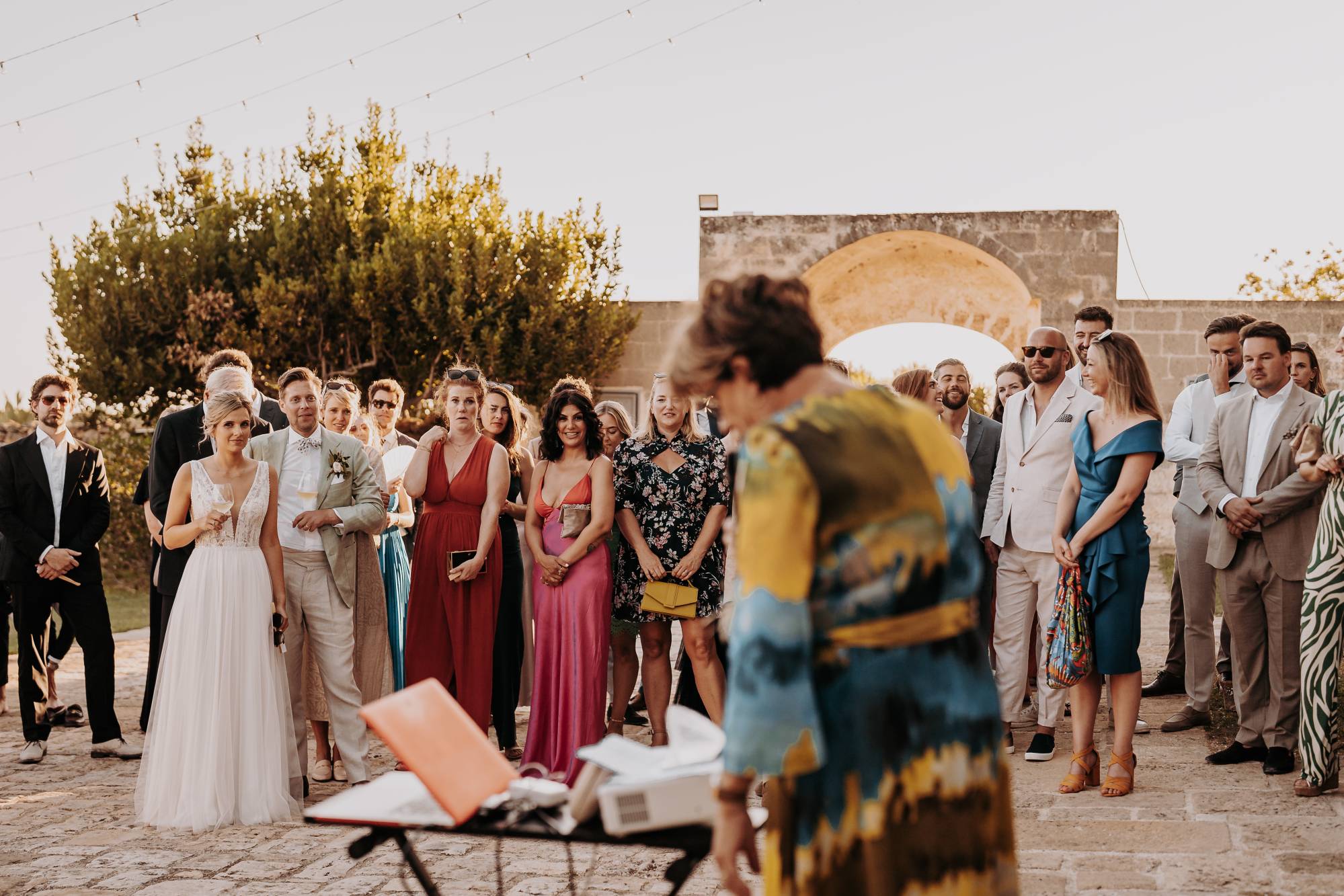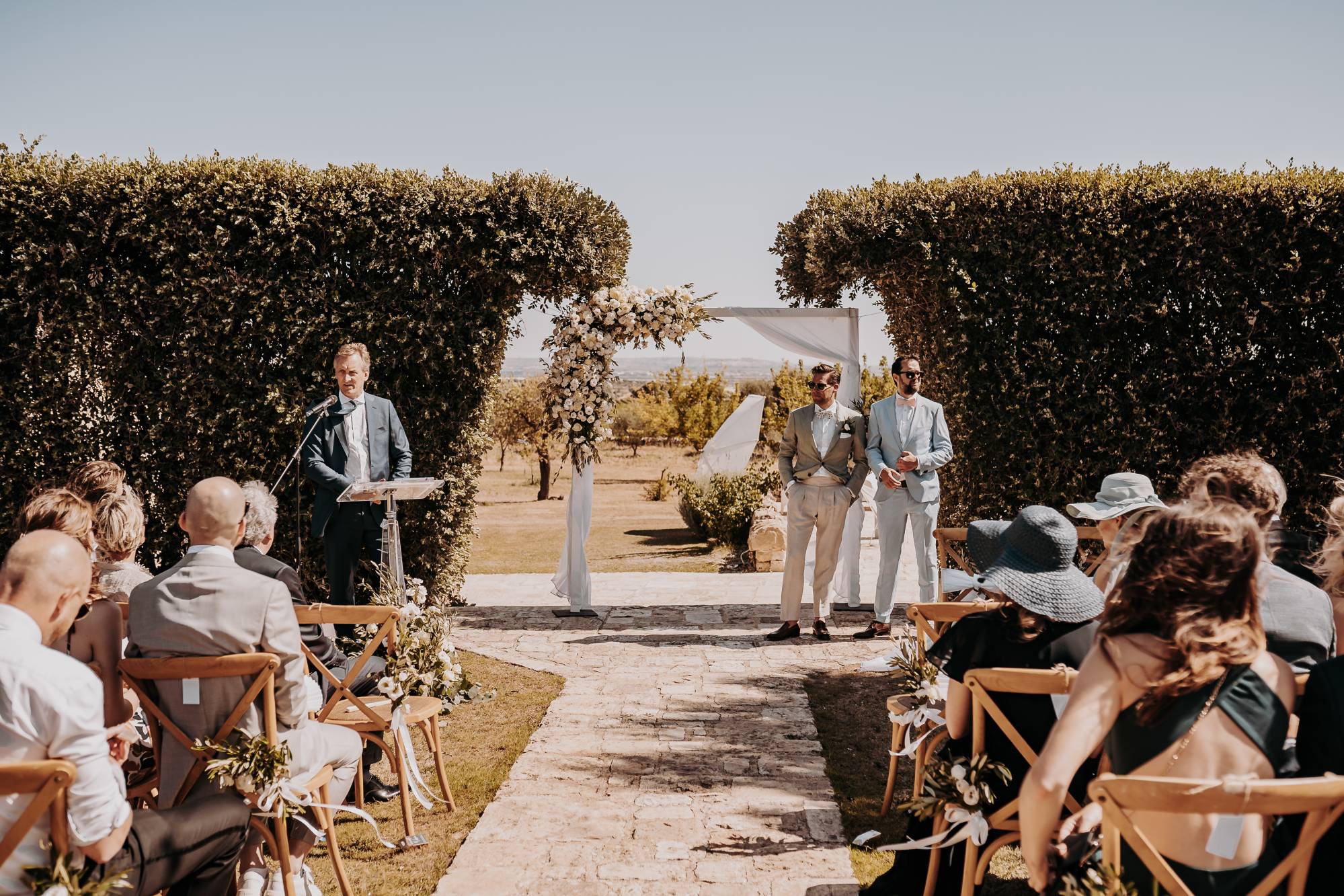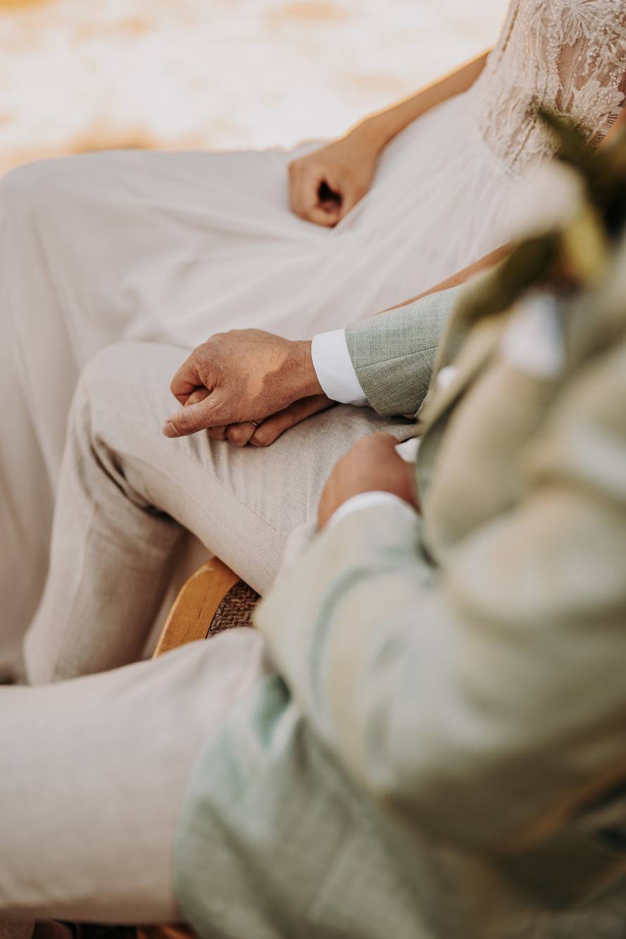 Il giorno del matrimonio, il cielo azzurro e la luce calda del tramonto pugliese hanno fatto da cornice a un rito simbolico che ha reso questo momento davvero speciale. Maurice e Noortje hanno scambiato le loro promesse d’amore all’aperto, circondati dal verde dei vigneti e dagli ulivi secolari della masseria. Un'atmosfera unica che ha emozionato tutti i presenti, con la natura che ha fatto da scenografia alla cerimonia, facendo sentire ogni ospite parte di qualcosa di speciale. Il rito, simbolico ma ricco di significato, ha coinvolto ogni invitato, facendo percepire la magia del momento.