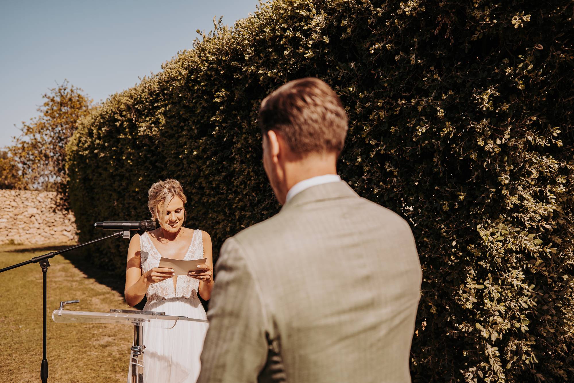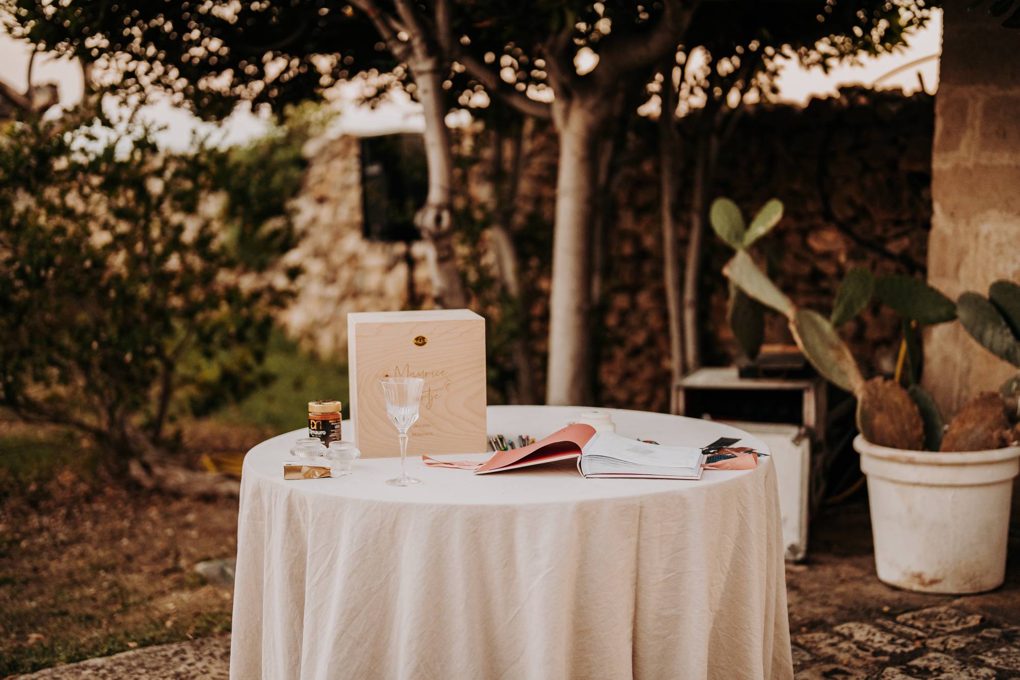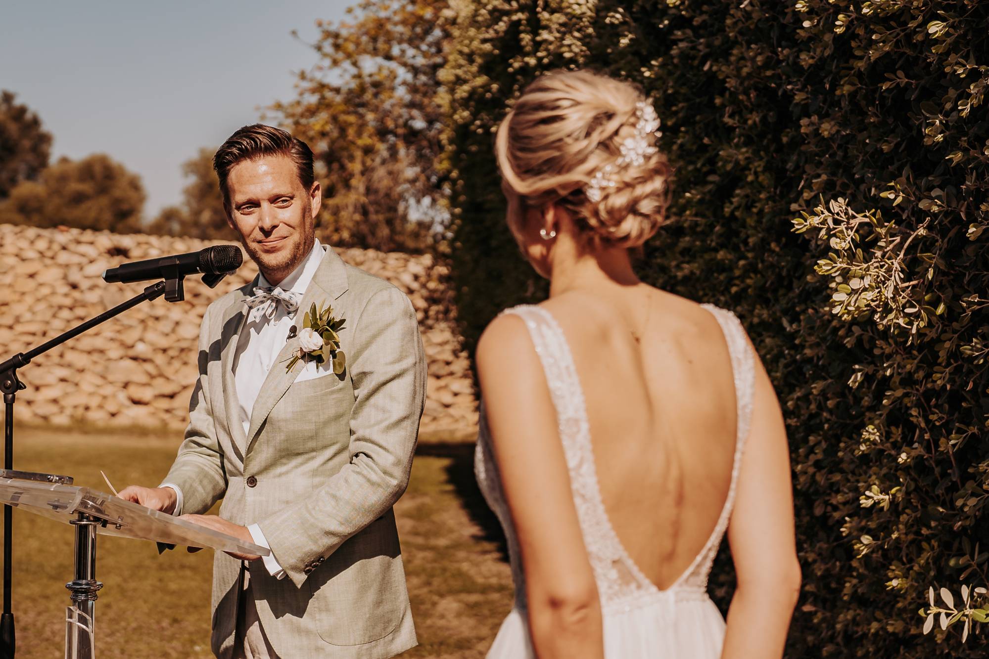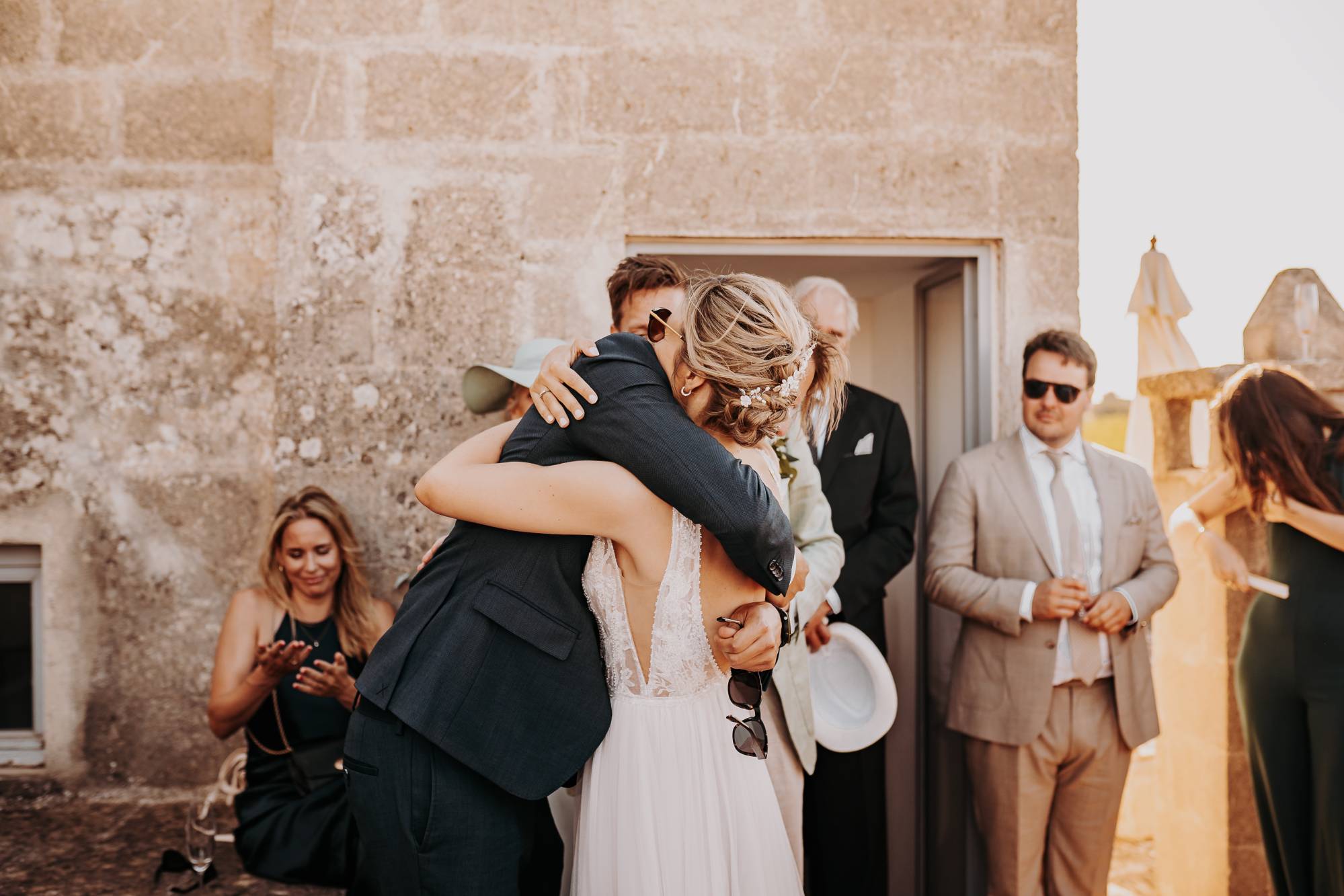 Il giorno del matrimonio, il cielo azzurro e la luce calda del tramonto pugliese hanno fatto da cornice a un rito simbolico che ha reso questo momento davvero speciale. Maurice e Noortje hanno scambiato le loro promesse d’amore all’aperto, circondati dal verde dei vigneti e dagli ulivi secolari della masseria. Un'atmosfera unica che ha emozionato tutti i presenti, con la natura che ha fatto da scenografia alla cerimonia, facendo sentire ogni ospite parte di qualcosa di speciale. Il rito, simbolico ma ricco di significato, ha coinvolto ogni invitato, facendo percepire la magia del momento.