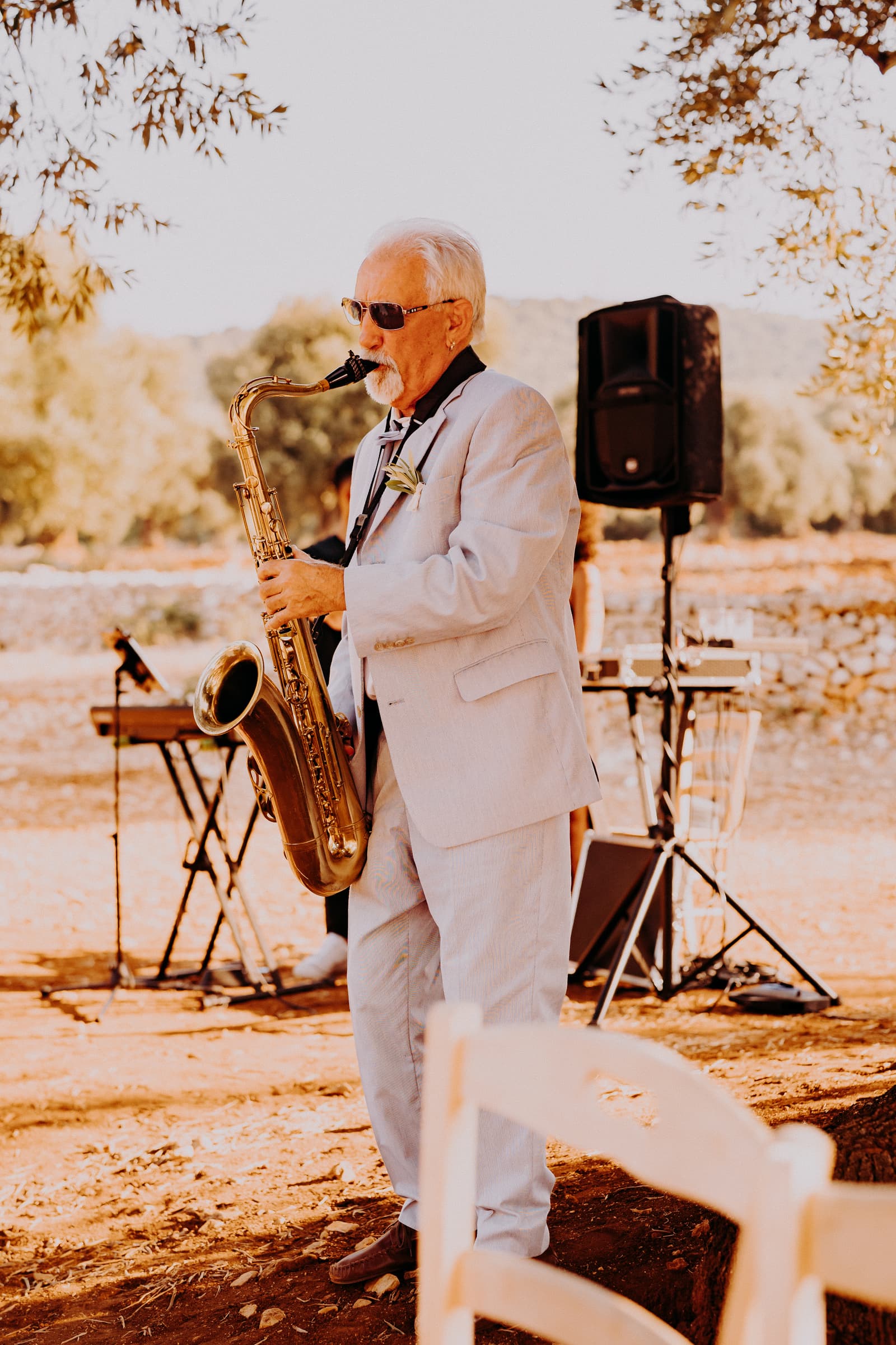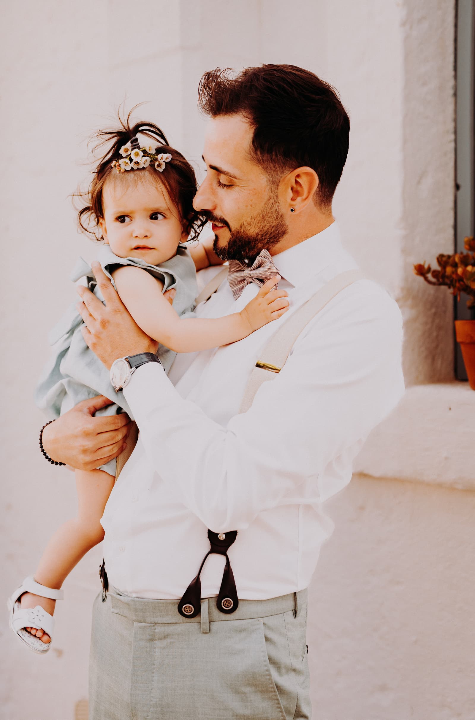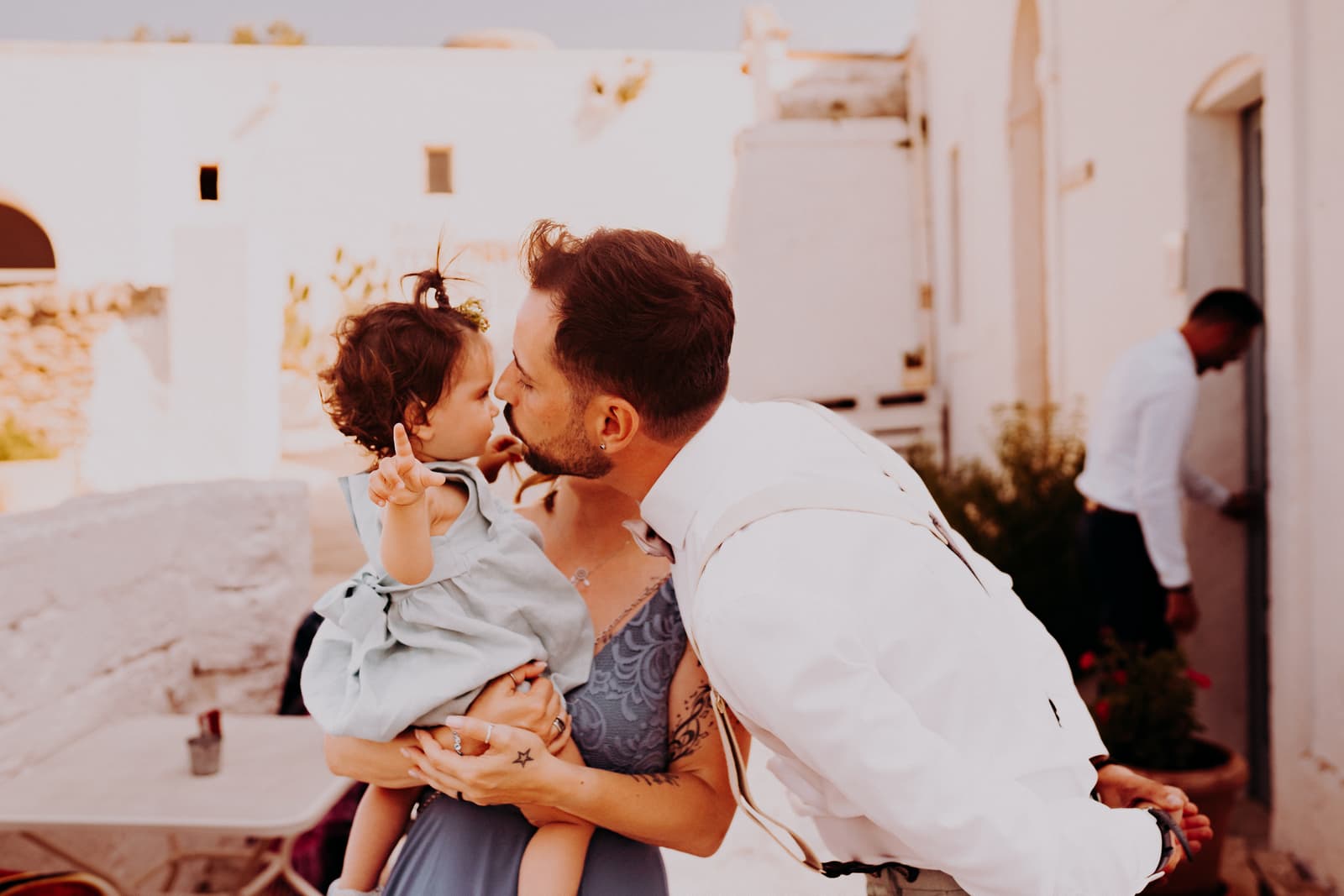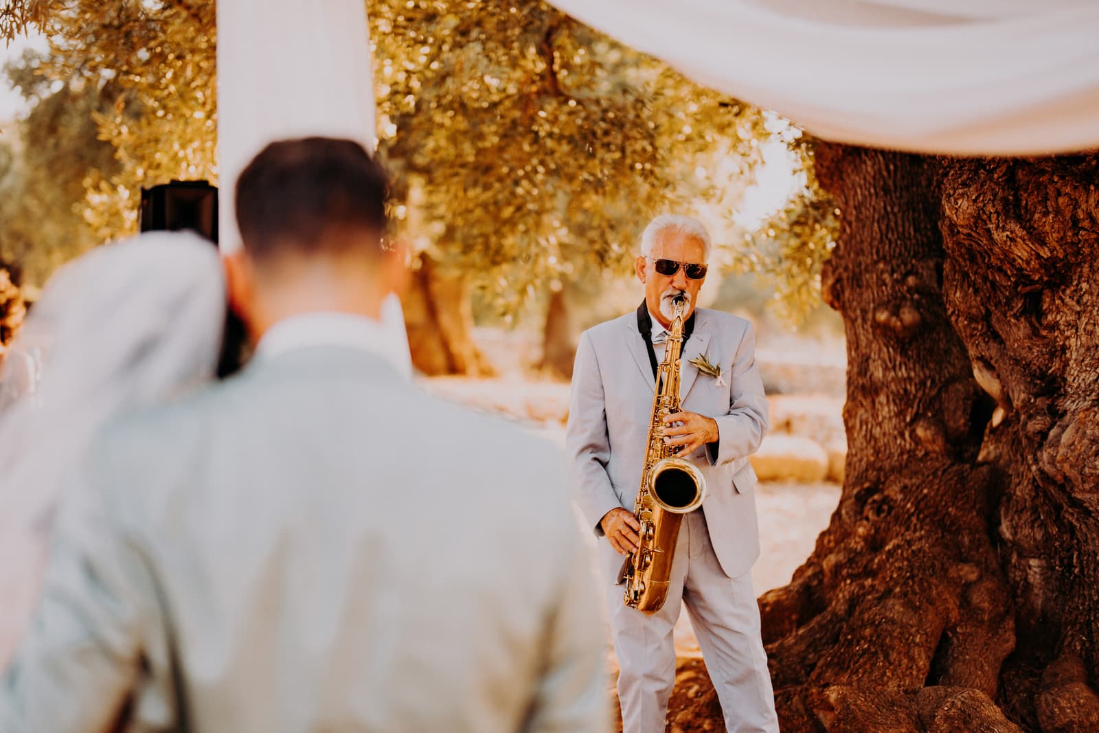 Luglio, una giornata calda e serena, ha accolto Fabbiene e Gianpaolo per il loro rito simbolico. Il matrimonio si è svolto all’aperto, tra gli ulivi della masseria, con il sole che tramontava lentamente all’orizzonte, dipingendo il cielo di sfumature dorate e arancioni. Una scenografia naturale pazzesca che ha reso l’atmosfera ancora più magica. Il rito è stato davvero emozionante, con molti momenti di commozione. Non sono mancate le lacrime, soprattutto quando si è unita alla scena la loro piccola bambina, una presenza dolcissima che ha reso tutto ancora più speciale.