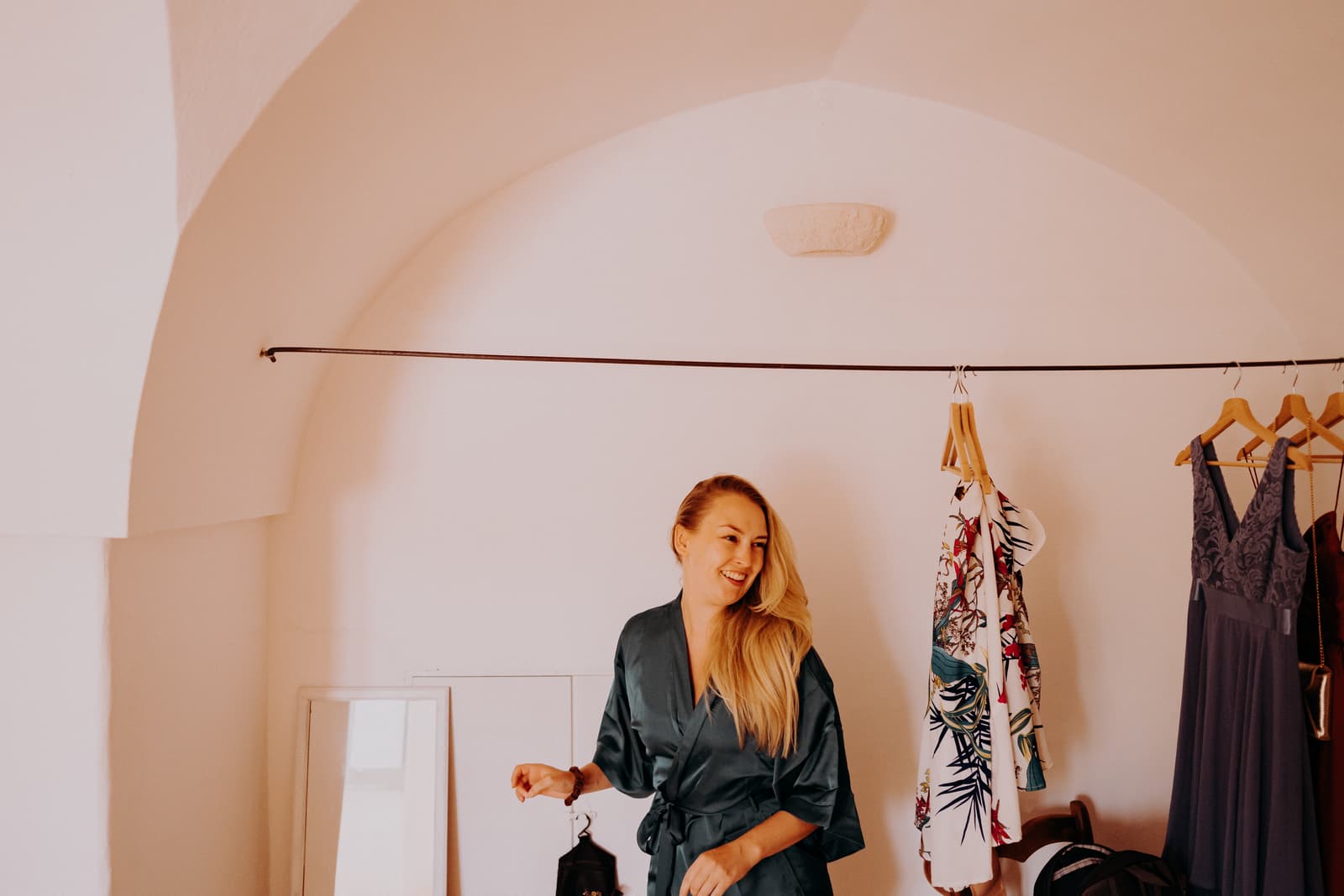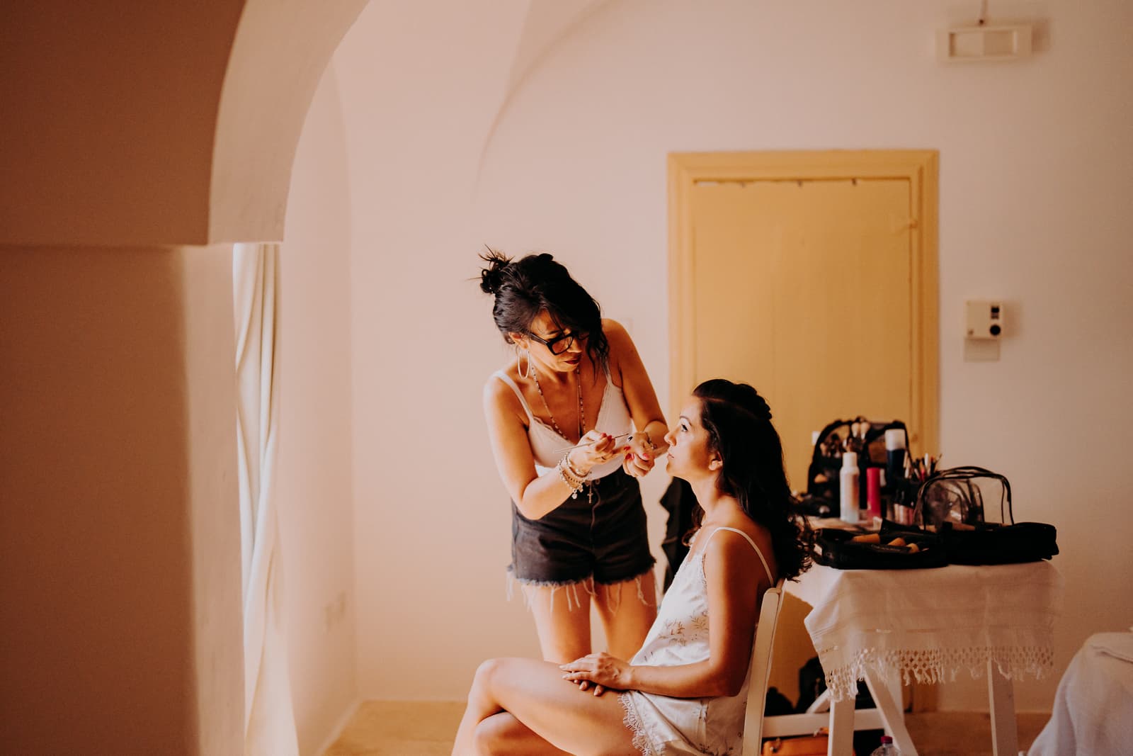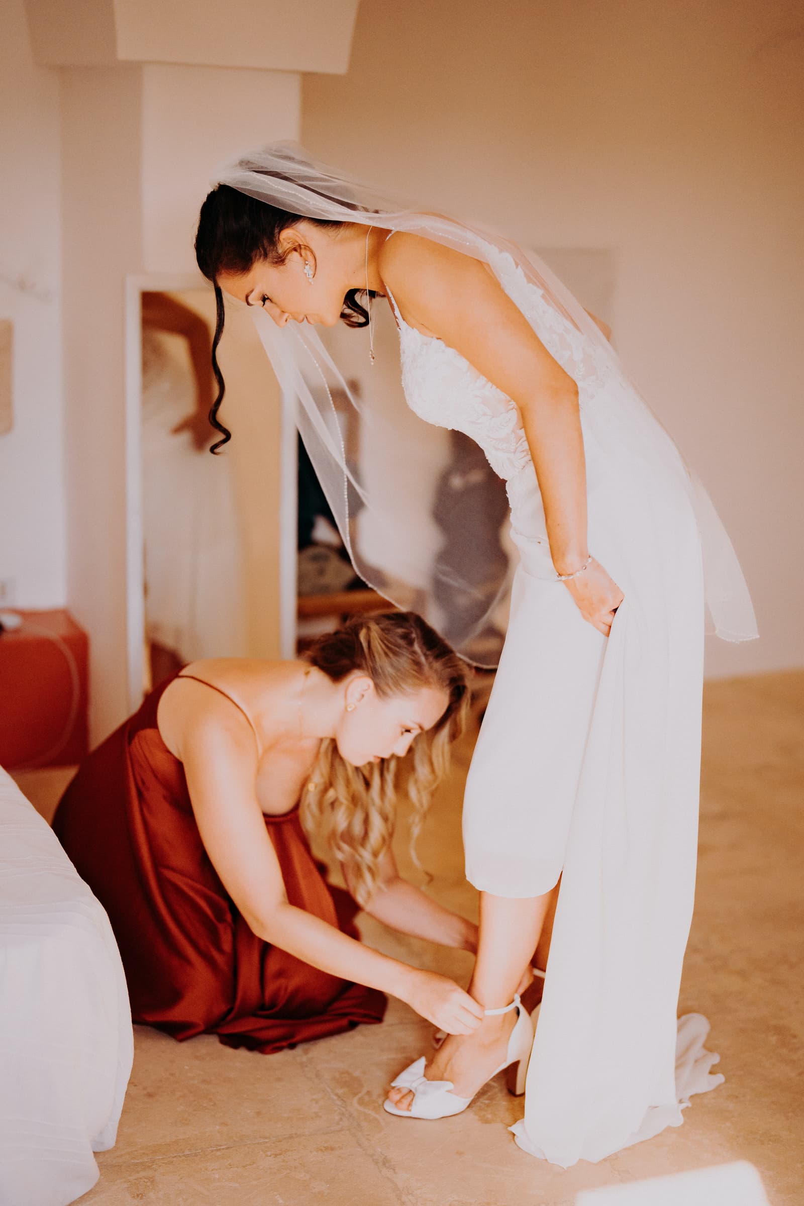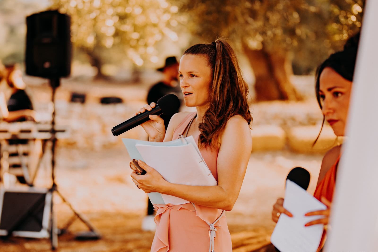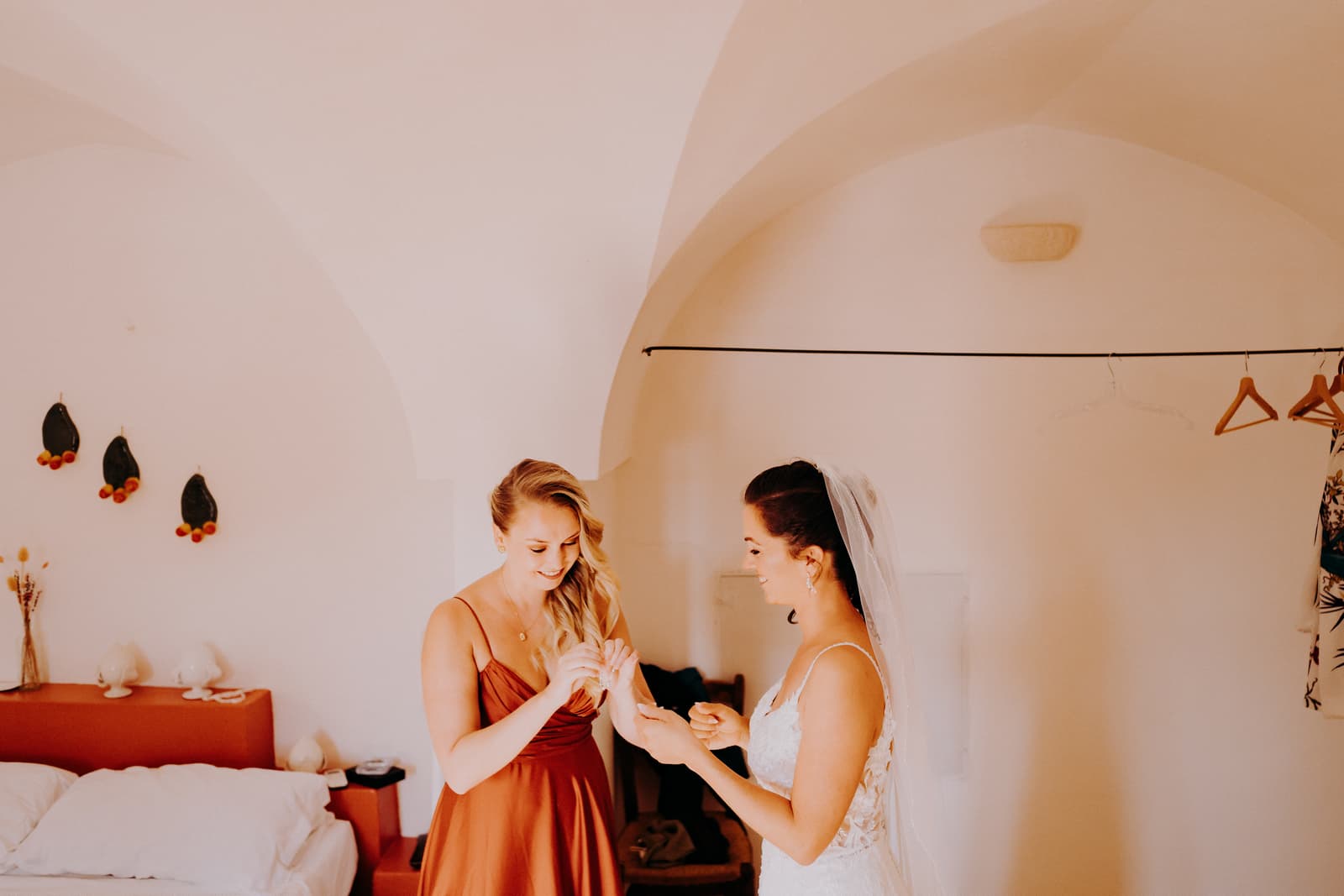 Luglio, una giornata calda e serena, ha accolto Fabbiene e Gianpaolo per il loro rito simbolico. Il matrimonio si è svolto all’aperto, tra gli ulivi della masseria, con il sole che tramontava lentamente all’orizzonte, dipingendo il cielo di sfumature dorate e arancioni. Una scenografia naturale pazzesca che ha reso l’atmosfera ancora più magica. Il rito è stato davvero emozionante, con molti momenti di commozione. Non sono mancate le lacrime, soprattutto quando si è unita alla scena la loro piccola bambina, una presenza dolcissima che ha reso tutto ancora più speciale.
