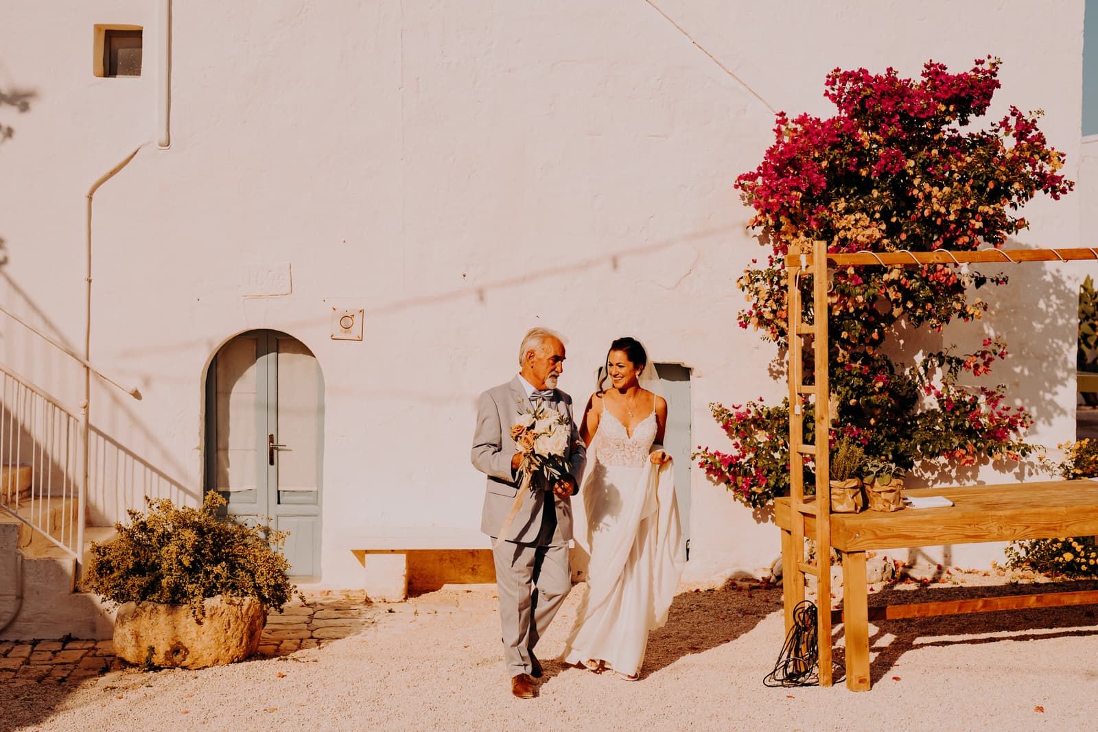 Questa masseria, situata tra gli ulivi secolari, offre uno scenario perfetto per ogni tipo di celebrazione, e nel loro caso, è stata la cornice ideale per il loro grande giorno.