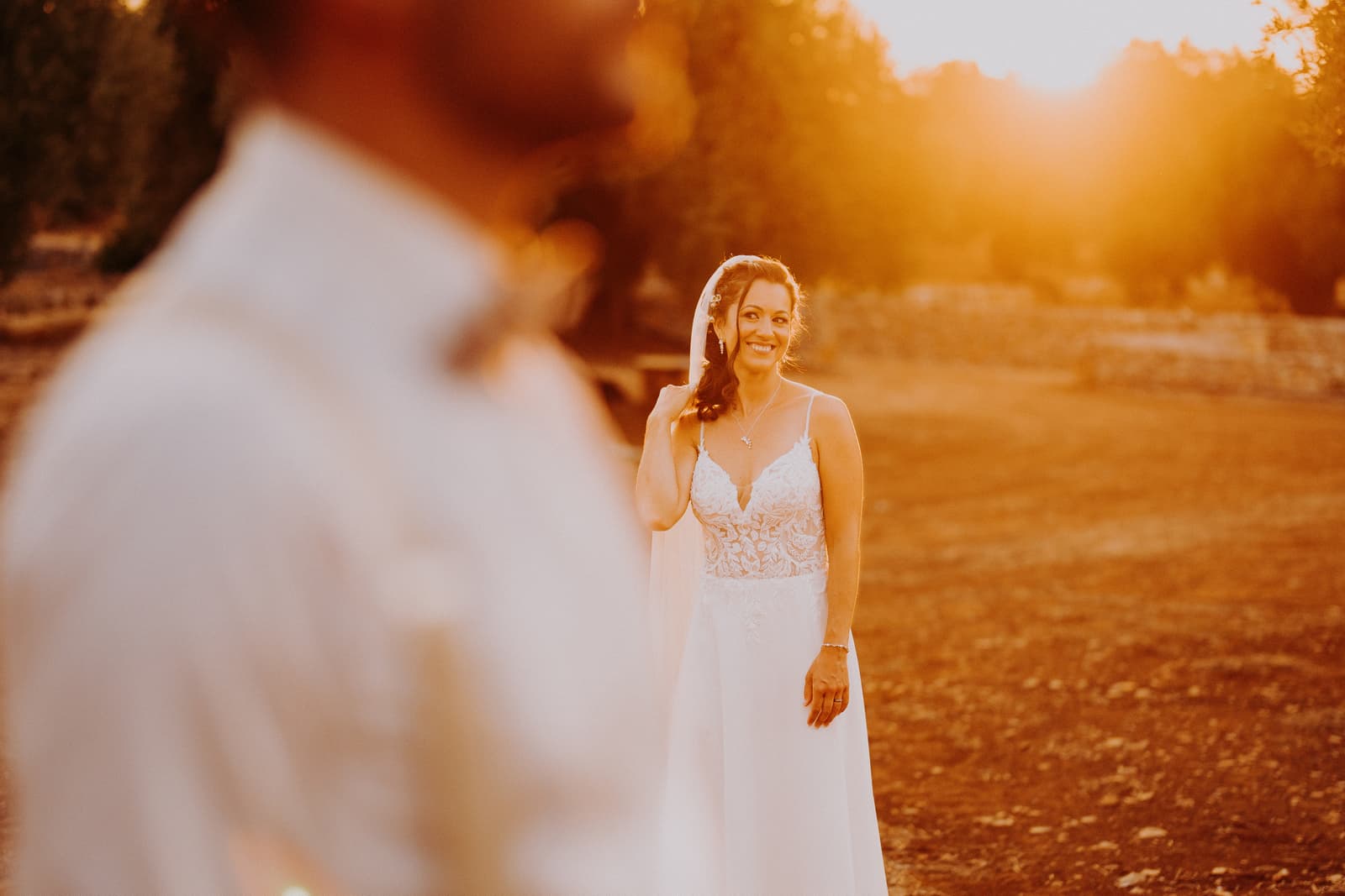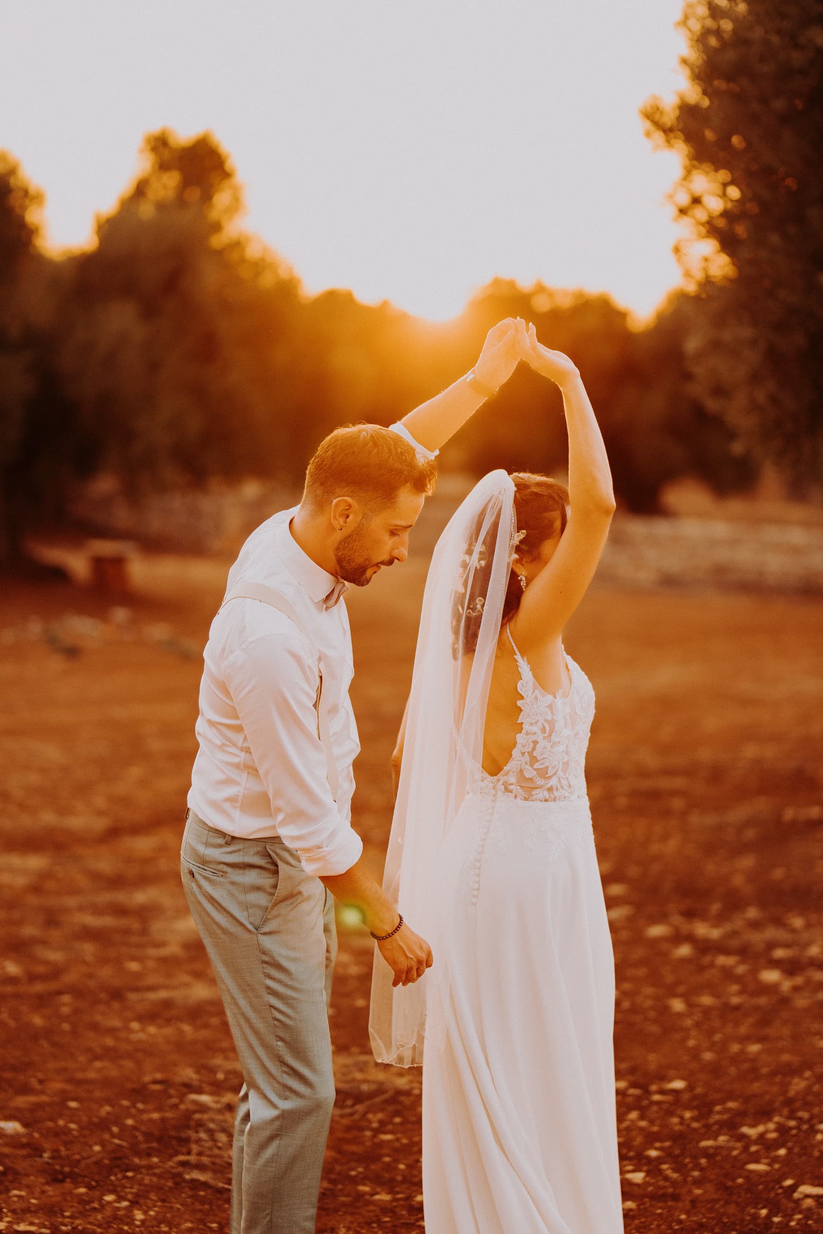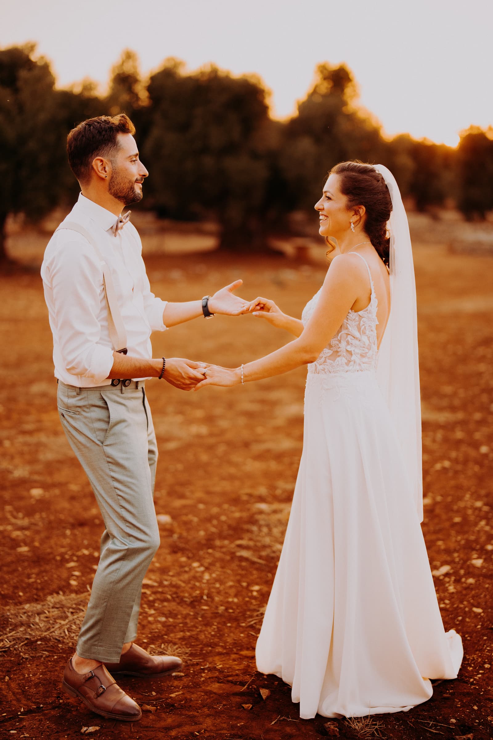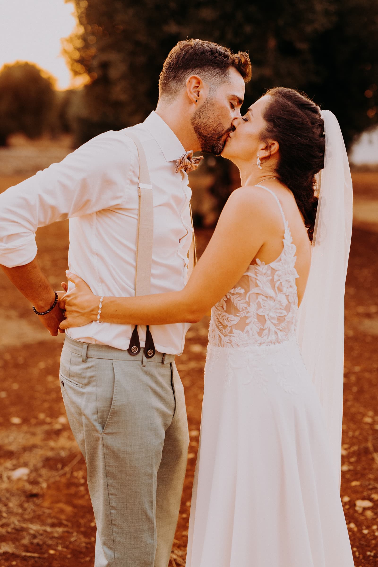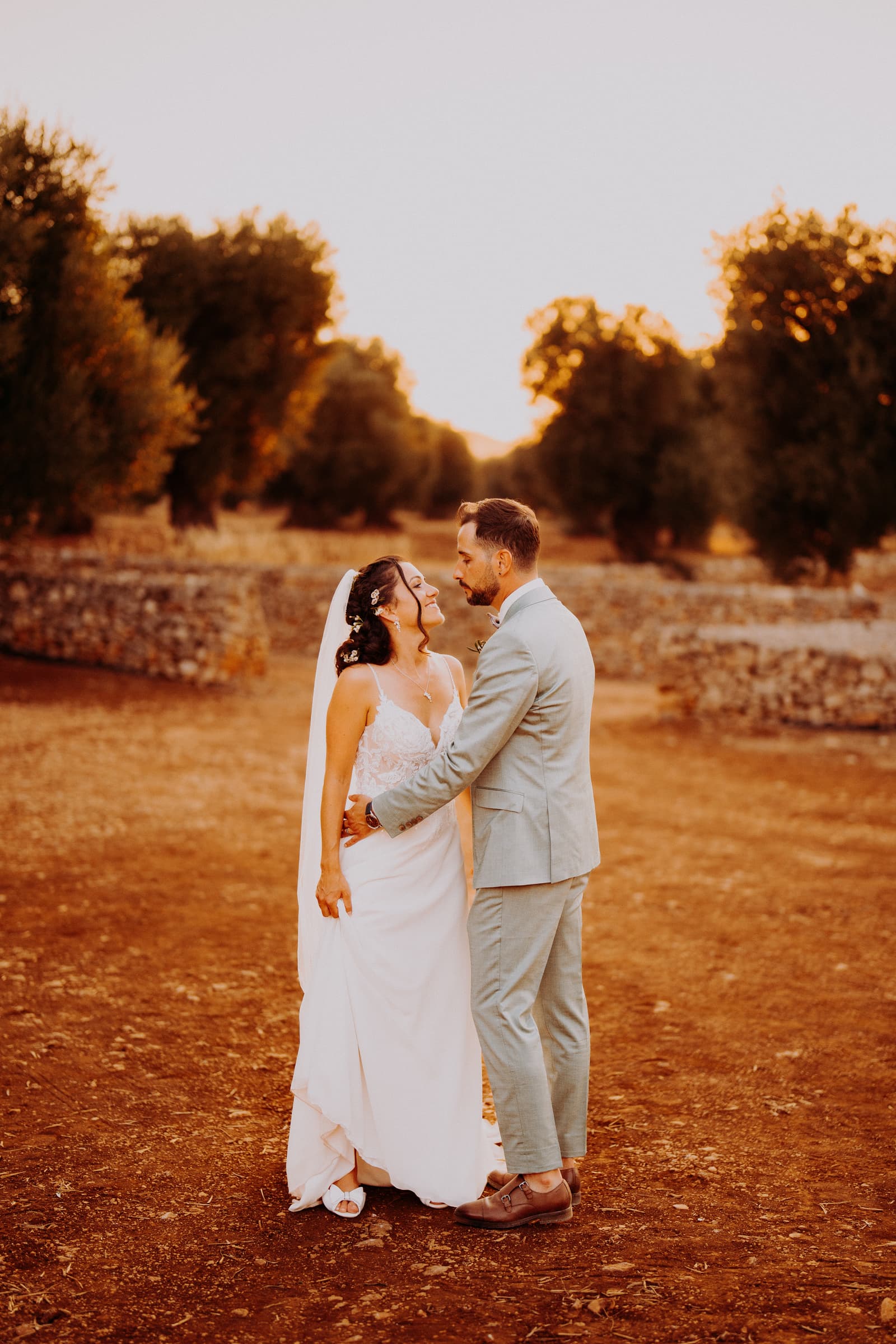Dopo la cerimonia, abbiamo avuto il piacere di scattare alcune foto incredibili. La luce del tramonto ha creato una scenografia unica, perfetta per immortalare momenti che resteranno per sempre nel cuore di Fabbiene e Gianpaolo. Ogni angolo della masseria è stato sfruttato per creare scatti che, senza dubbio, saranno indimenticabili, con il calore del tramonto che ha dato a ogni fotografia un tocco speciale.